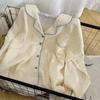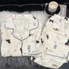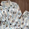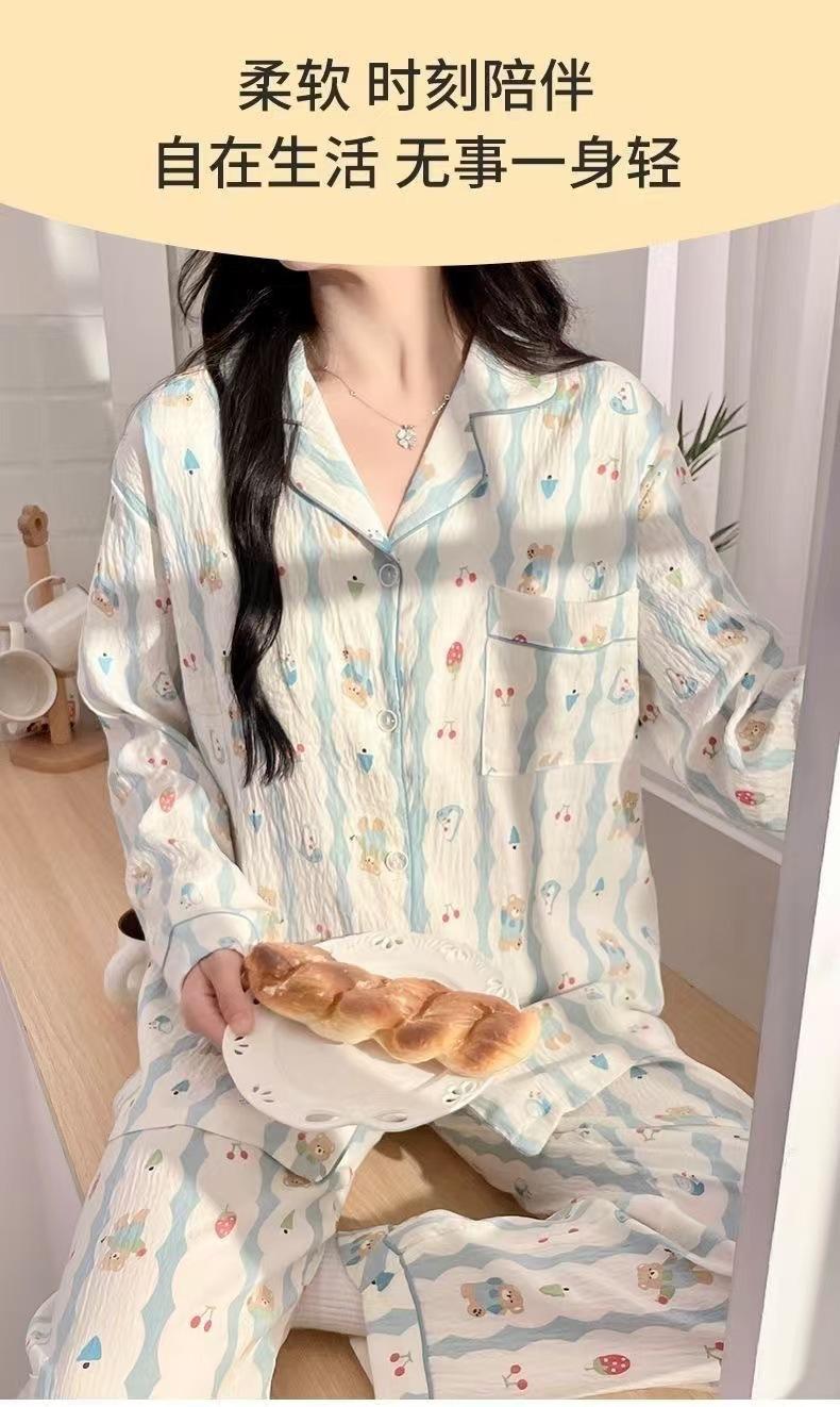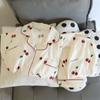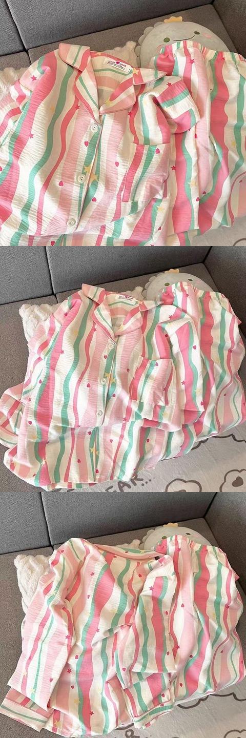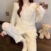 Pijama de oso a rayas de dopamina para niñas, de algodón con nubes, pantalones de manga larga para primavera y otoño, ropa fina de verano para el hogar
