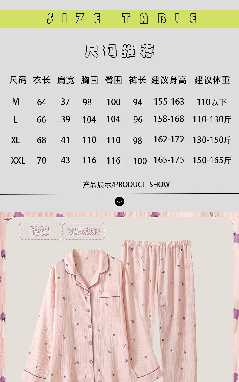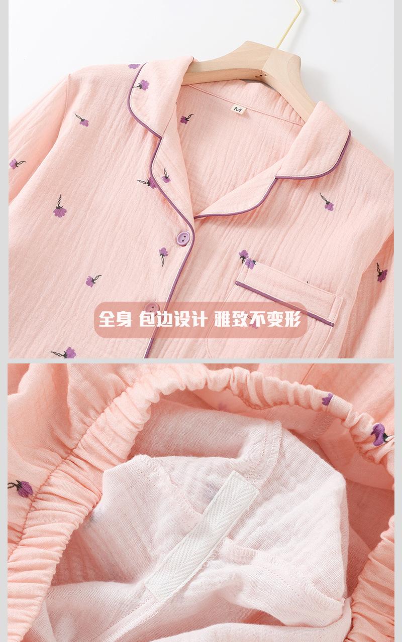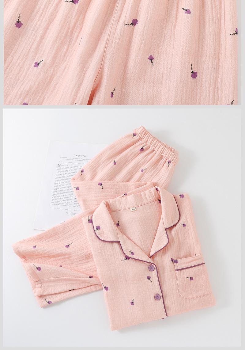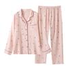 Pijamas dulces de algodón puro para mujer, primavera y otoño, de gasa de doble capa, pantalones de manga larga con solapa, nuevo atuendo, ropa para el hogar, traje