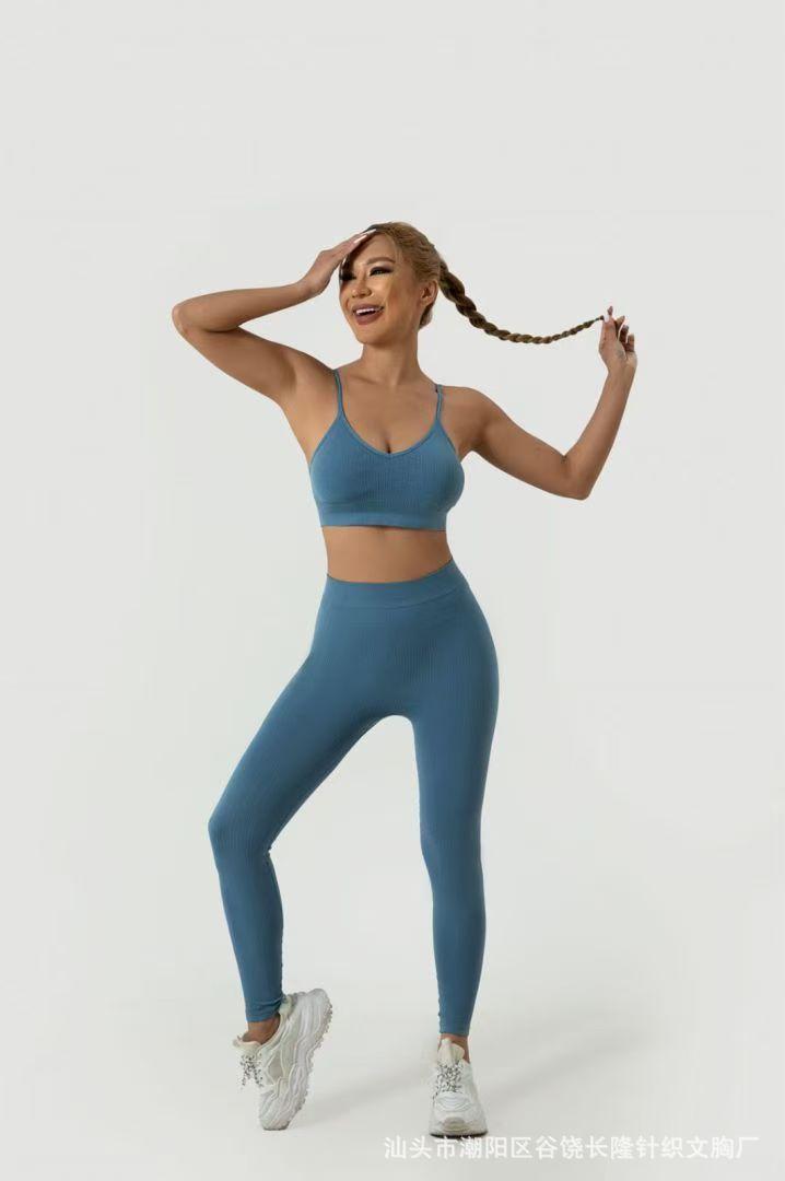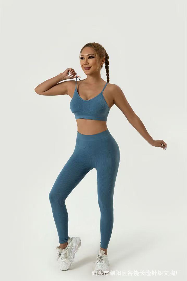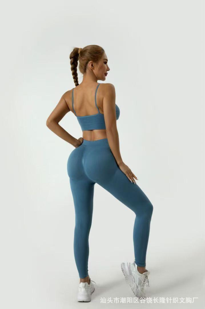 Conjunto de sujetador deportivo con espalda descubierta, push-up, pantalones de tubo, dos piezas, para fitness, yoga, exportación europea y americana