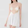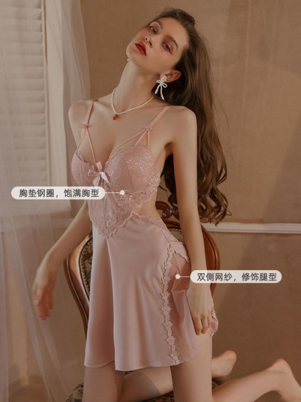 Pijama Sexy Acolchado para Mujer con Almohadillas en el Pecho Push-up Tentación Seda de Hielo Camisón con Tirantes Encaje Hermosa Espalda Camisón de Alta Gama