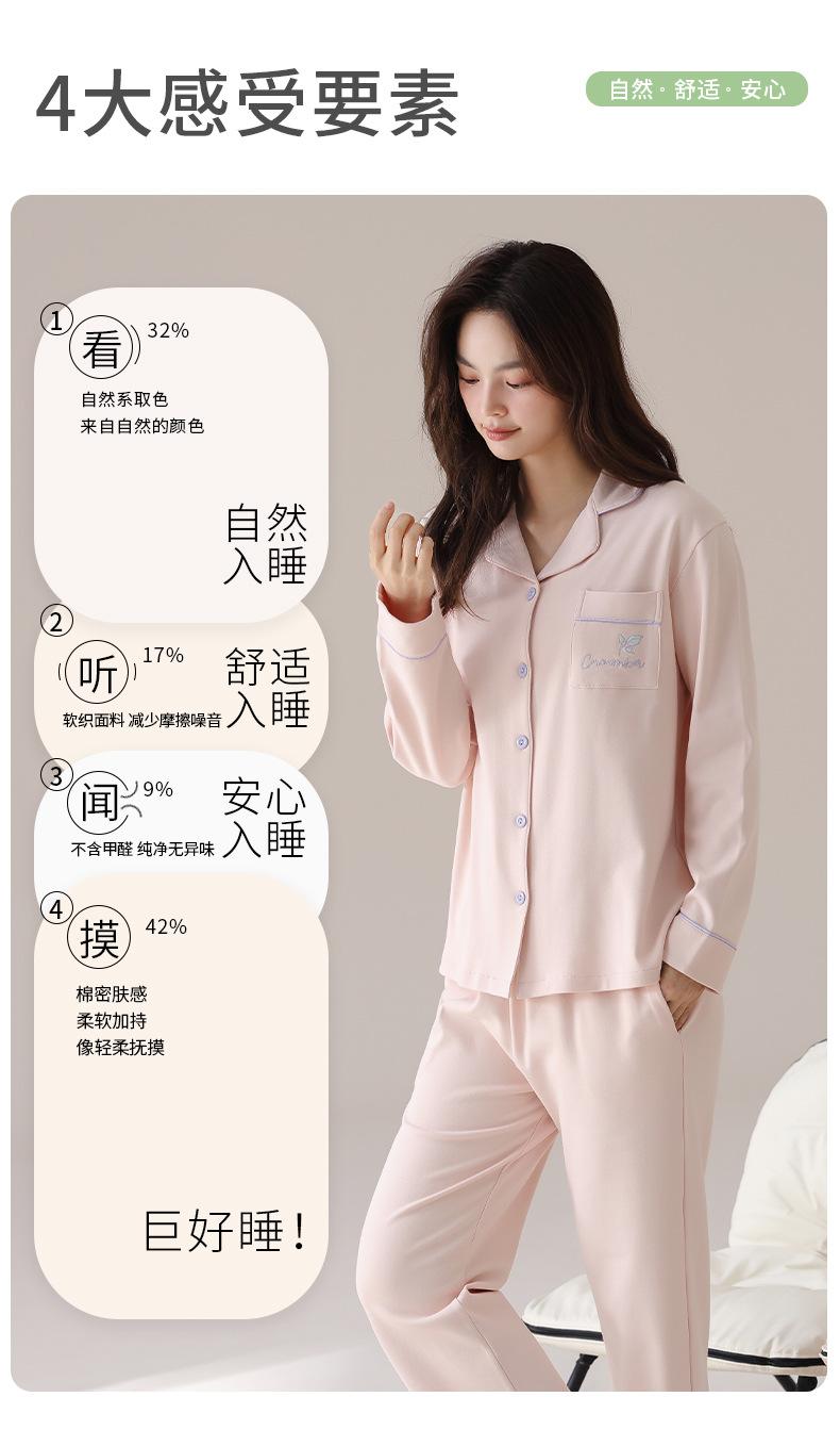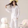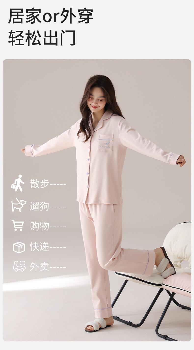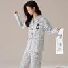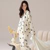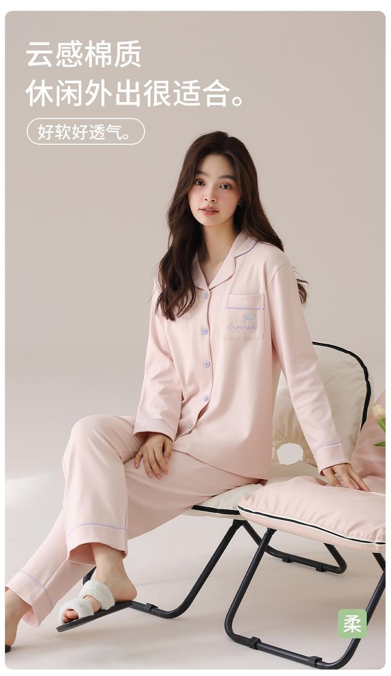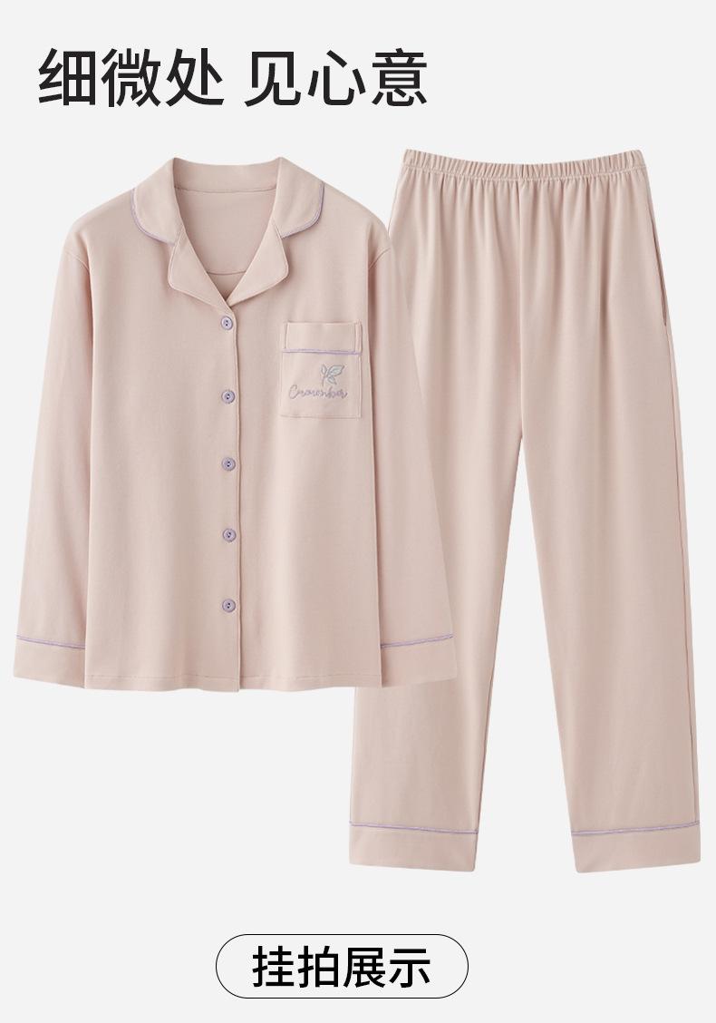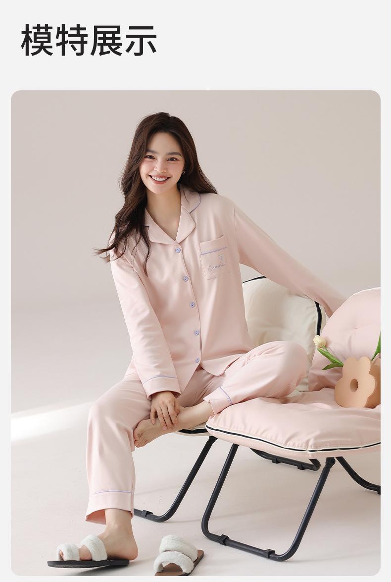 Pijamas de manga larga de otoño para mujer, de algodón puro, holgados y cómodos, para primavera y otoño, con solapa, para el hogar