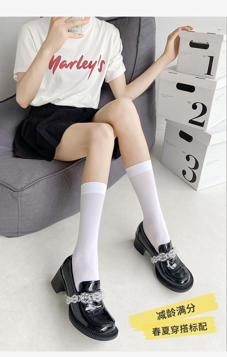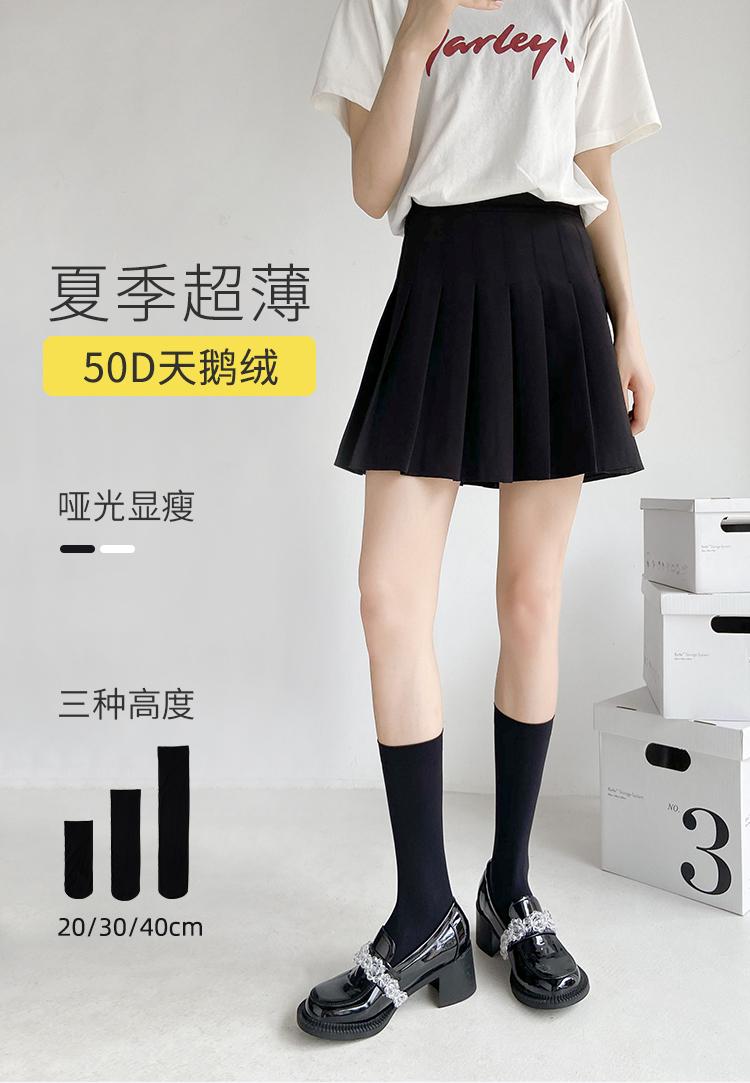 Medias negras finas de verano para mujer, calcetines JK, medias hasta la rodilla, medias opacas de verano para mujer, medias de media longitud