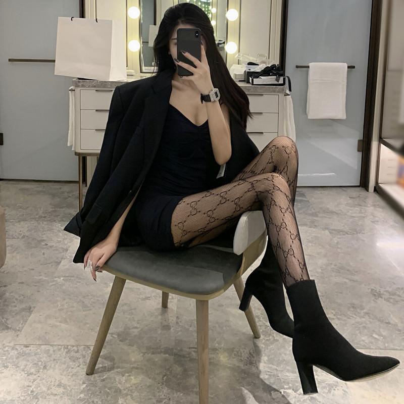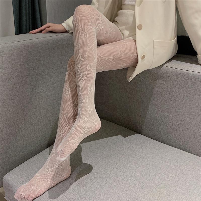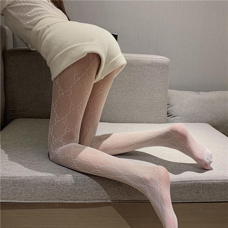 Medias de Seda con Letra Doble G para Mujer 2021 Explosiones Primavera y Otoño Rojo de Internet Ins Medias de Red Pantalones Negros Rejilla Calados Medias de Fondo