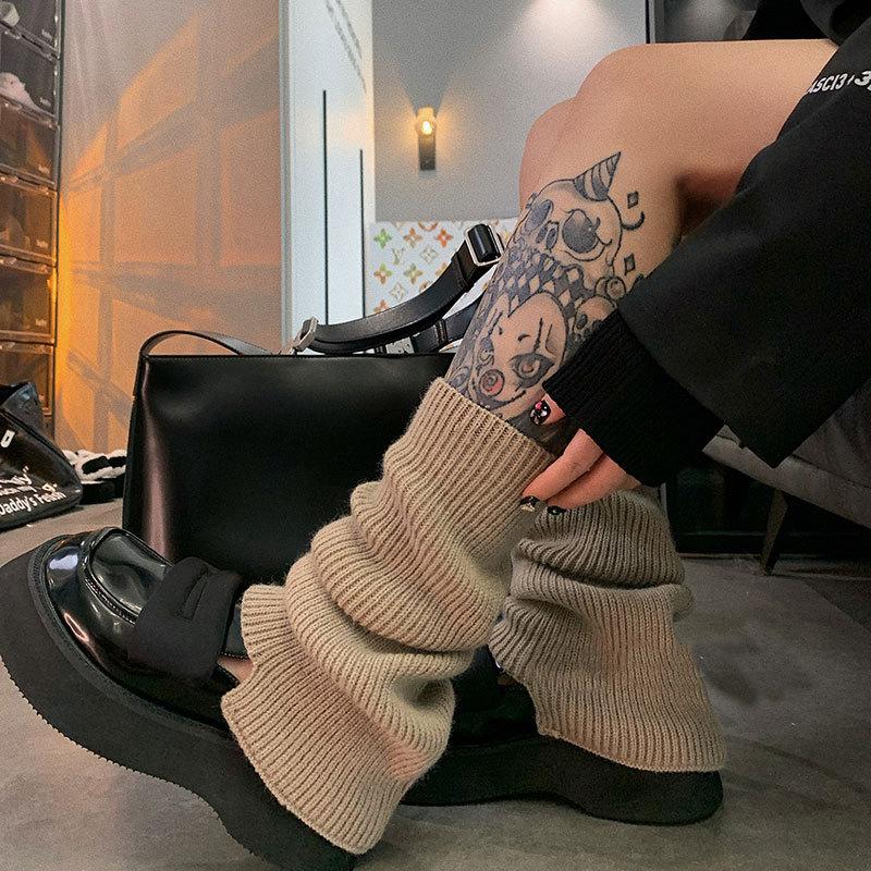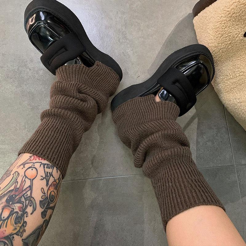 Calcetines Apilados Estilo Nuevo Spice Girl Irregular Estilo Perezoso Calcetines de Punto Adelgazantes Media Caña Estilo Coreano Acampanado Otoño e Invierno Manga para Pierna