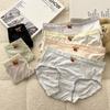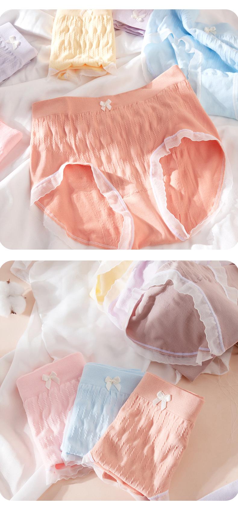 Ropa interior de talla grande para mujer, cintura media-alta, sin costuras, japonesa, con encaje dulce, transpirable, para gorditas, de algodón, con entrepierna.