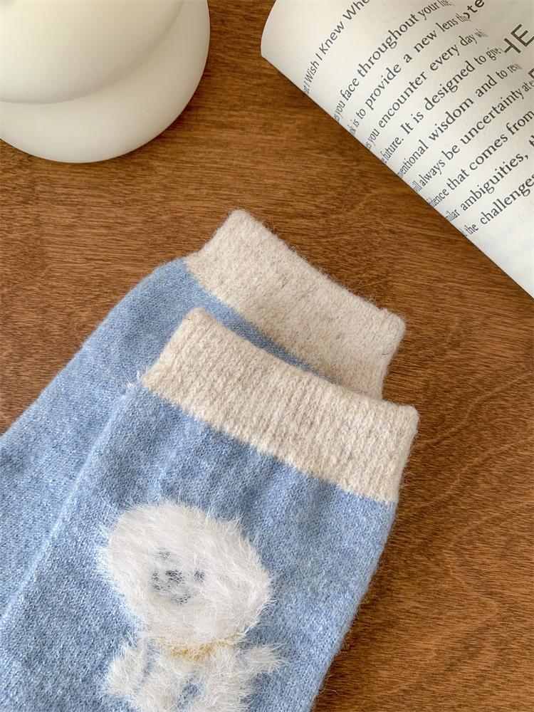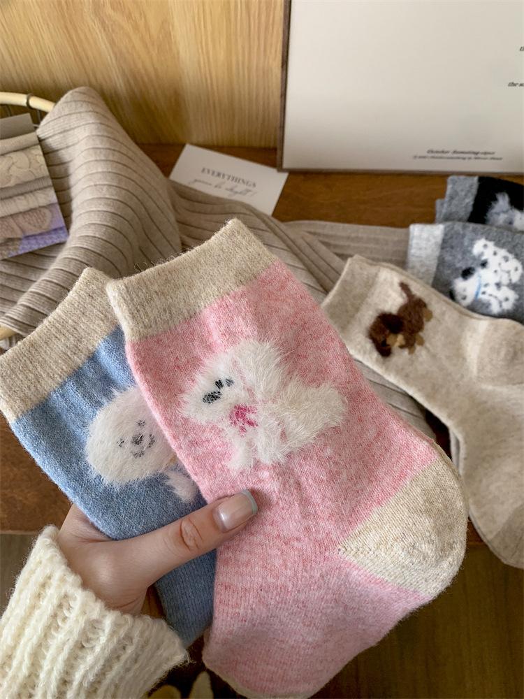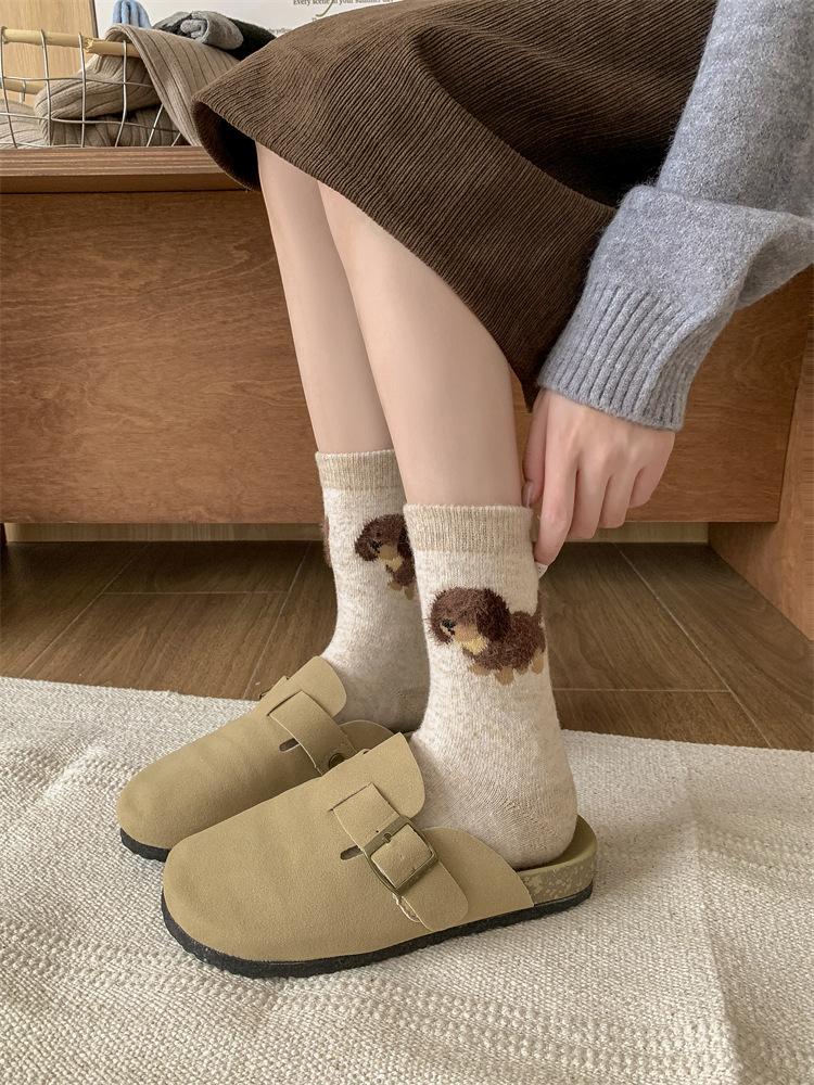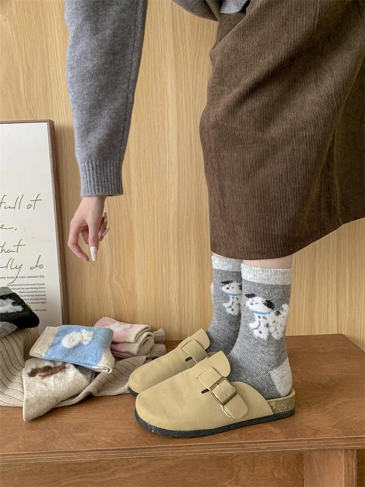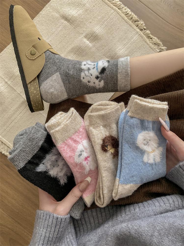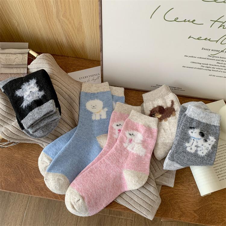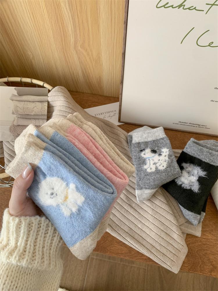 Calcetines gruesos y cálidos de invierno para mujer, de lana, con bonitos dibujos de cachorros, estilo coreano, para dormir en casa.