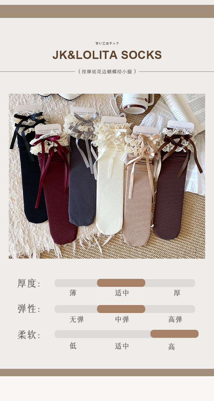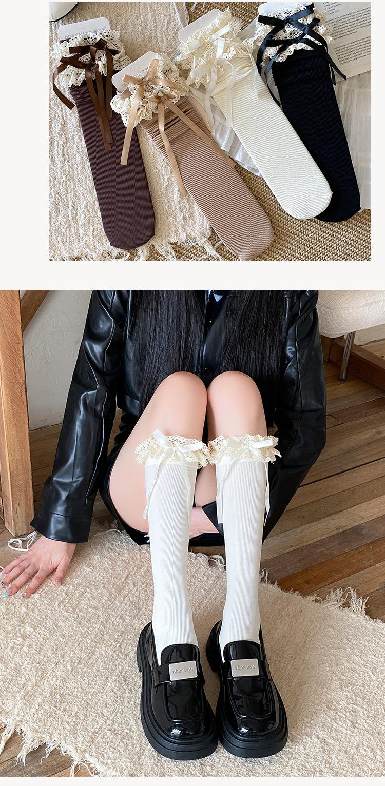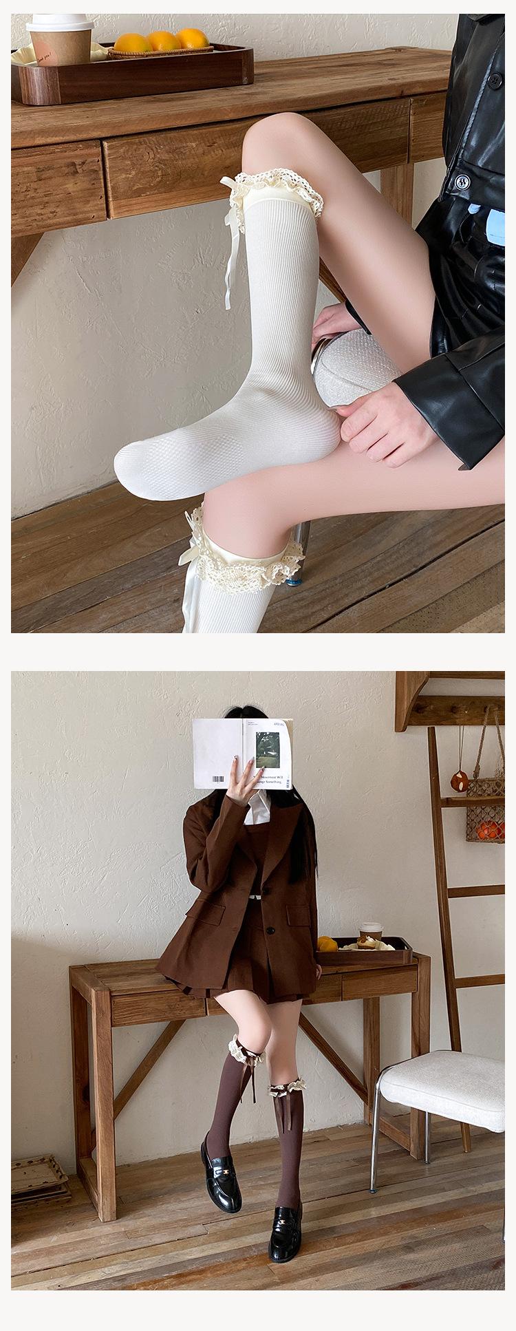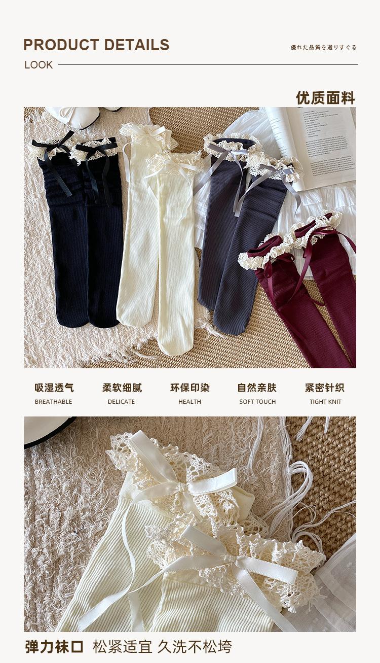 Calcetines Lolita de Encaje hasta la Pantorrilla Lazo Presión JK Caña Larga Estilo Universitario Combinables Botas Adelgazantes Estilo Ballet hasta la Rodilla