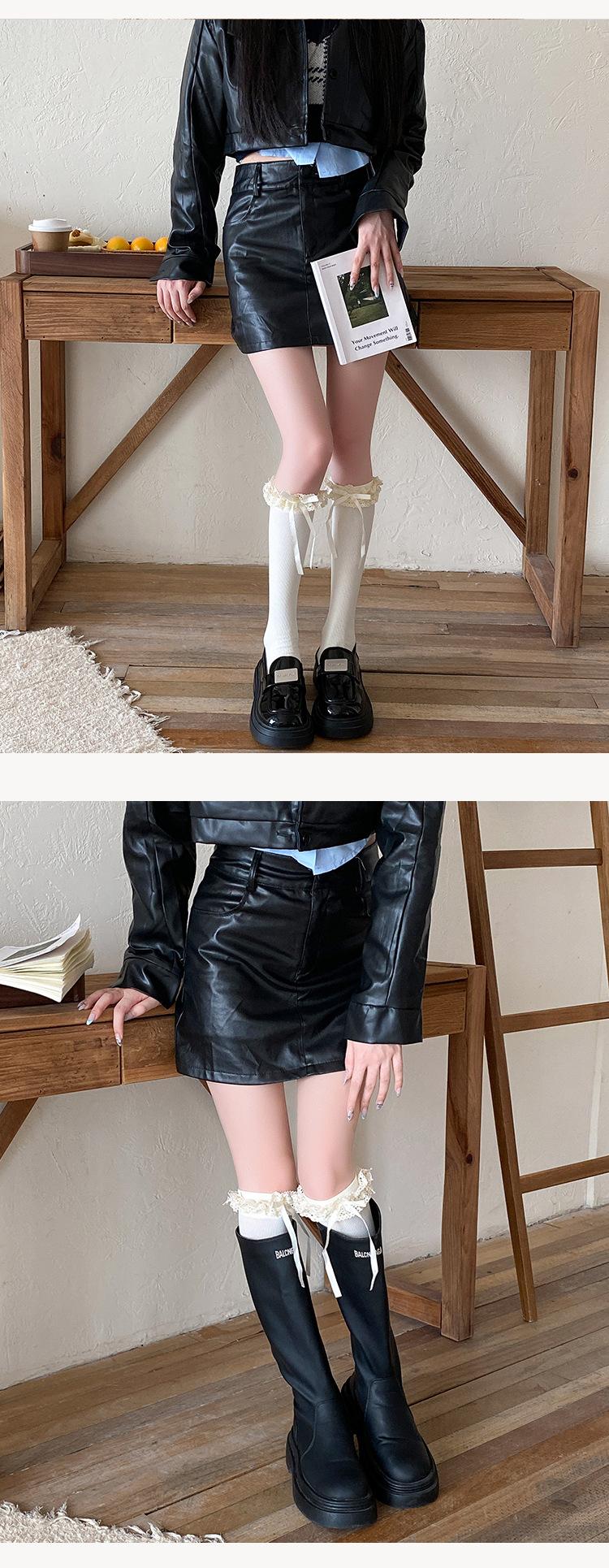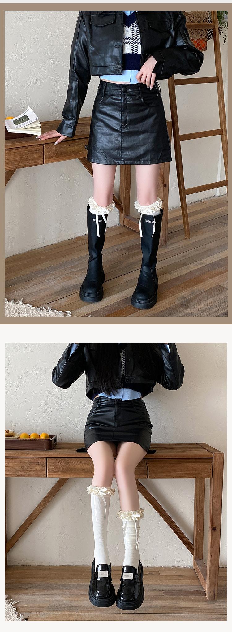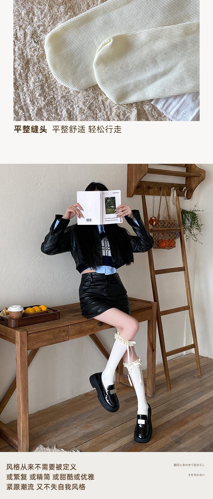 Calcetines Lolita de Encaje hasta la Pantorrilla Lazo Presión JK Caña Larga Estilo Universitario Combinables Botas Adelgazantes Estilo Ballet hasta la Rodilla