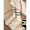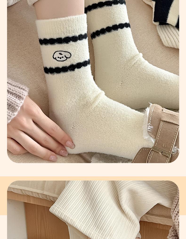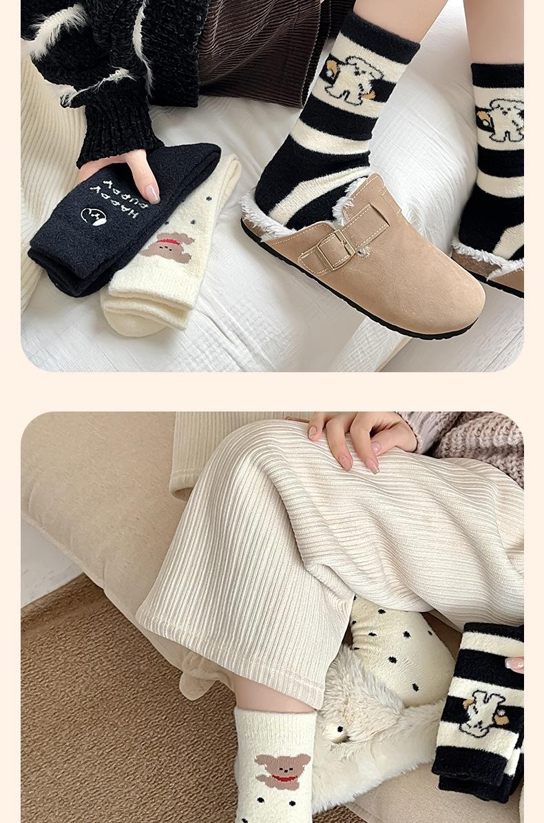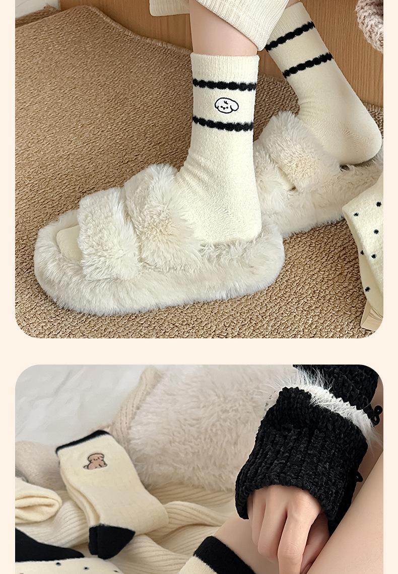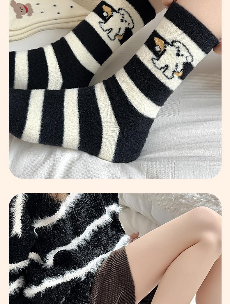 Calcetines de Terciopelo Coral para Mujer Otoño e Invierno con Forro Polar Espesor Cálido Animal de Dibujos Animados Invierno Hogar Calcetines de Luna Calcetín de Media Caña