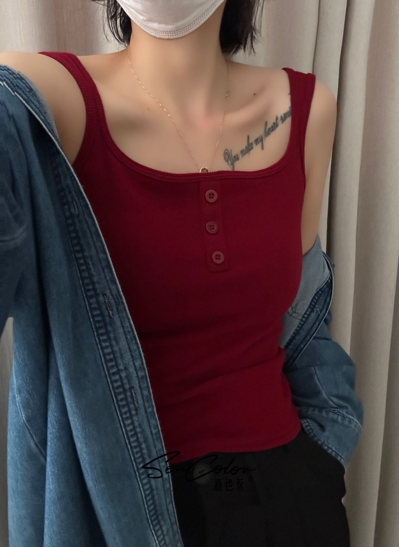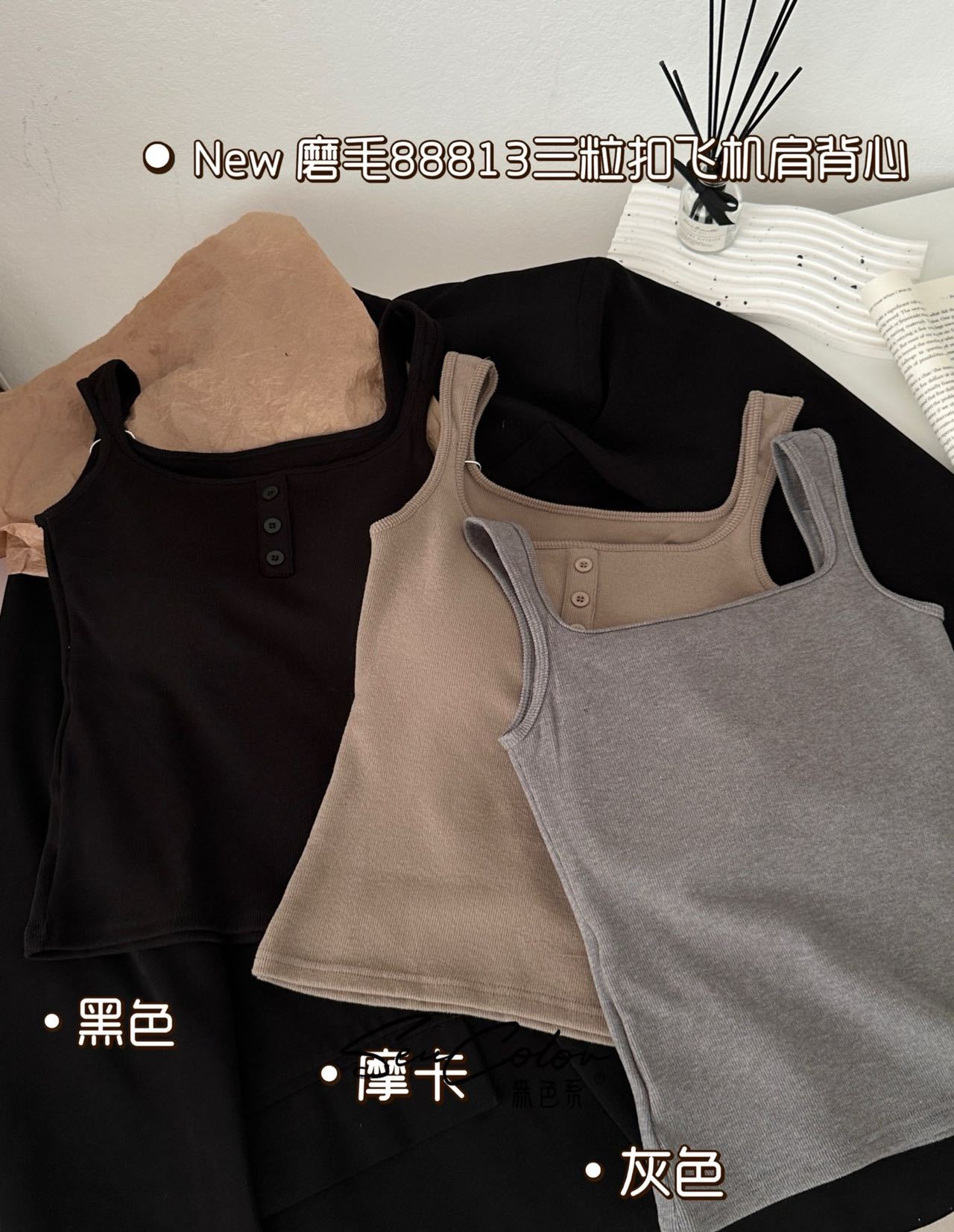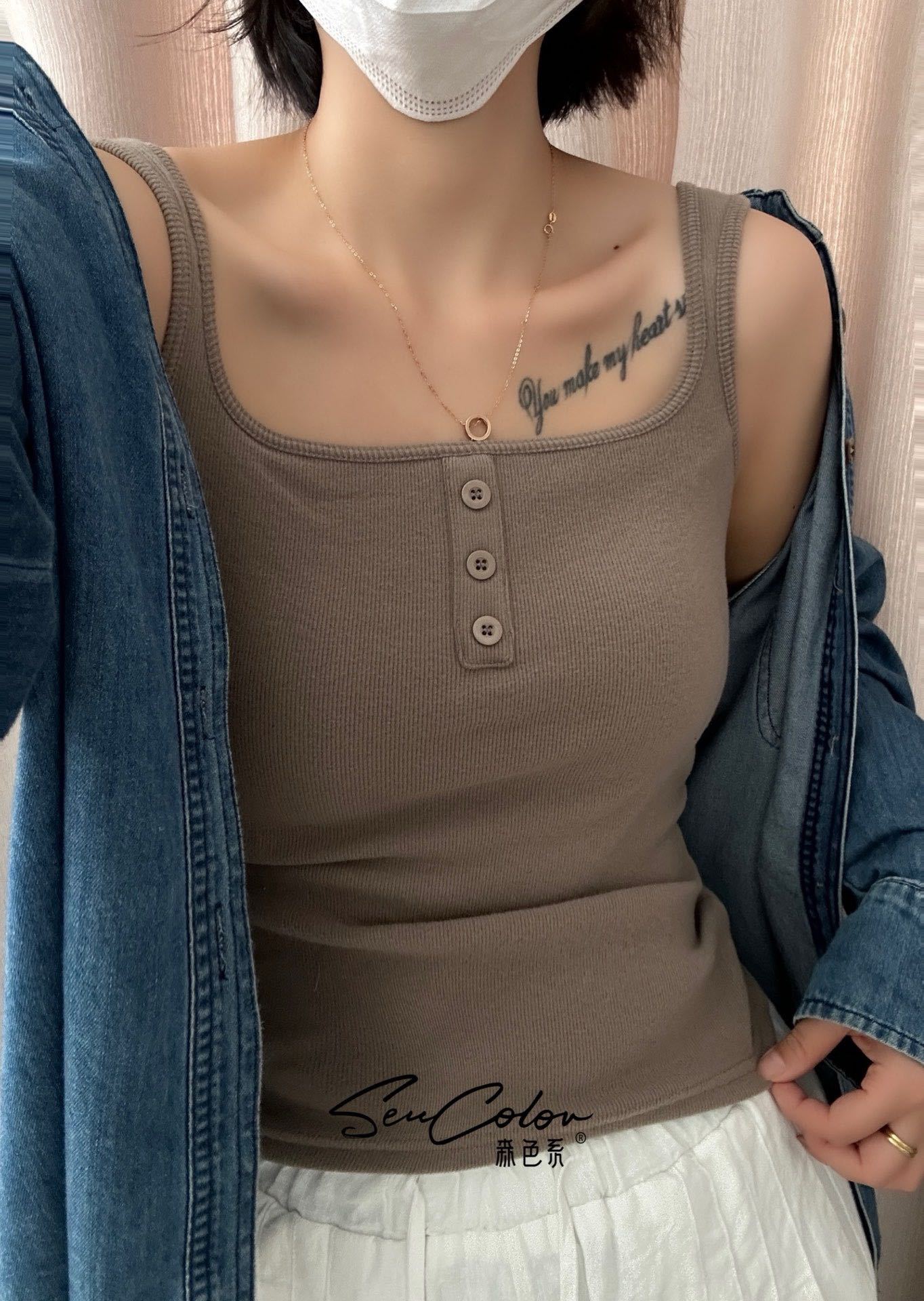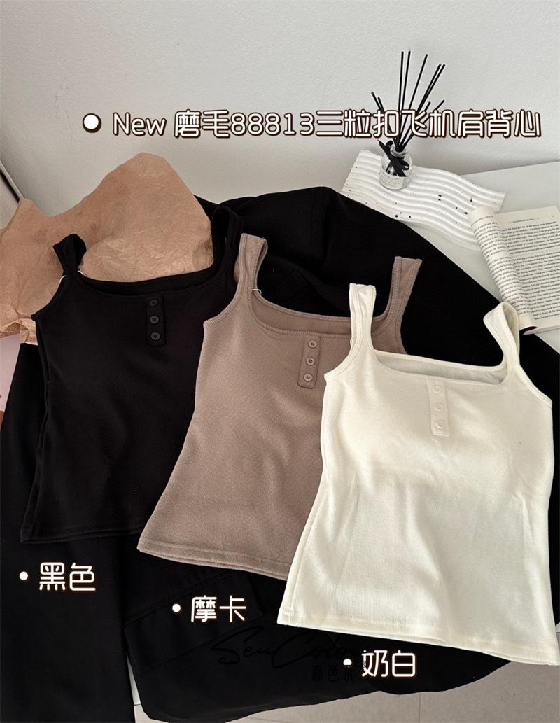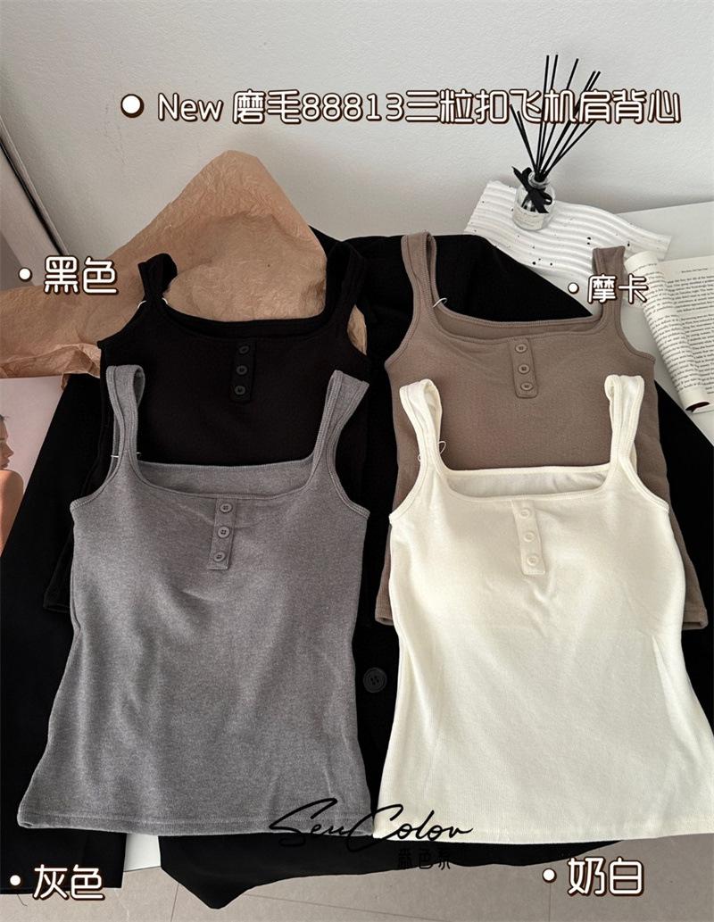 Chaleco Cálido de Lijado para Otoño e Invierno para Mujer con Almohadilla para el Pecho, Cuello Cuadrado, Tres Botones, Hombro de Avión, Ajustado, Adelgazante, Versátil