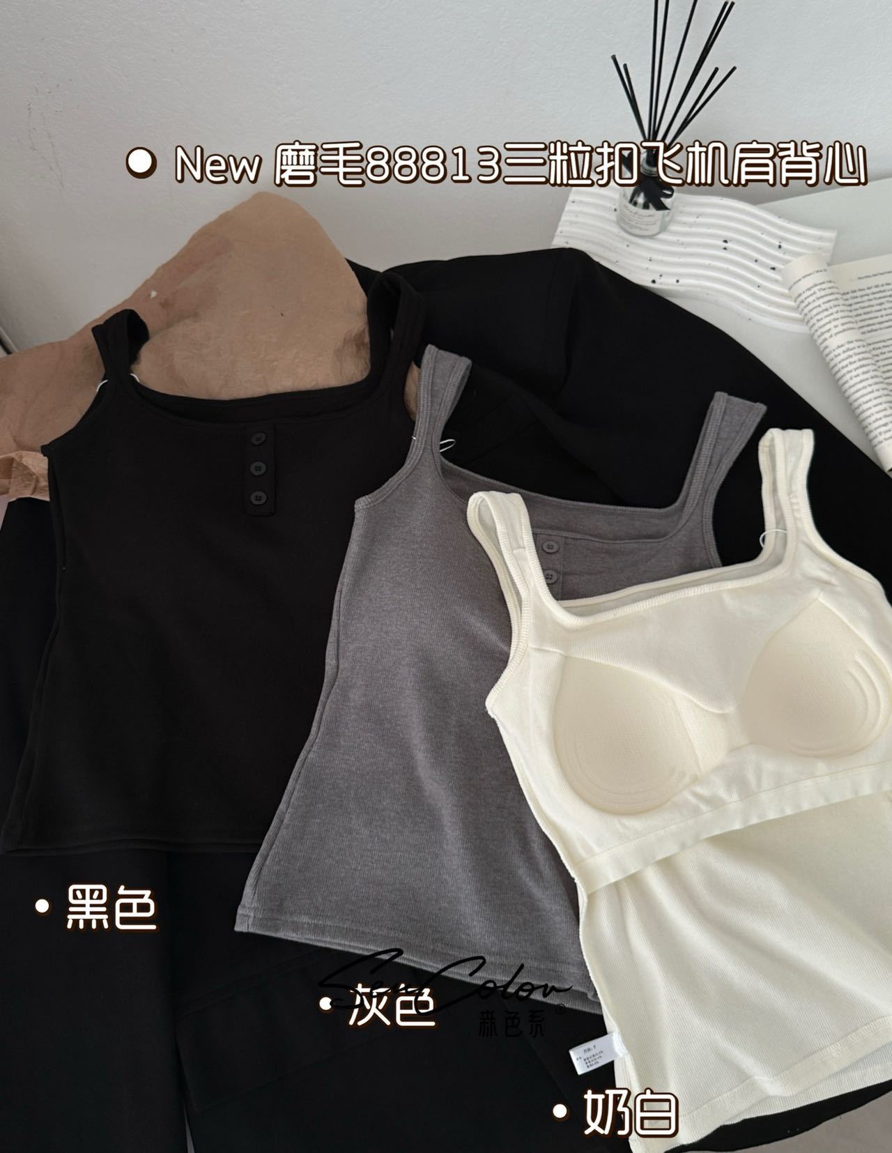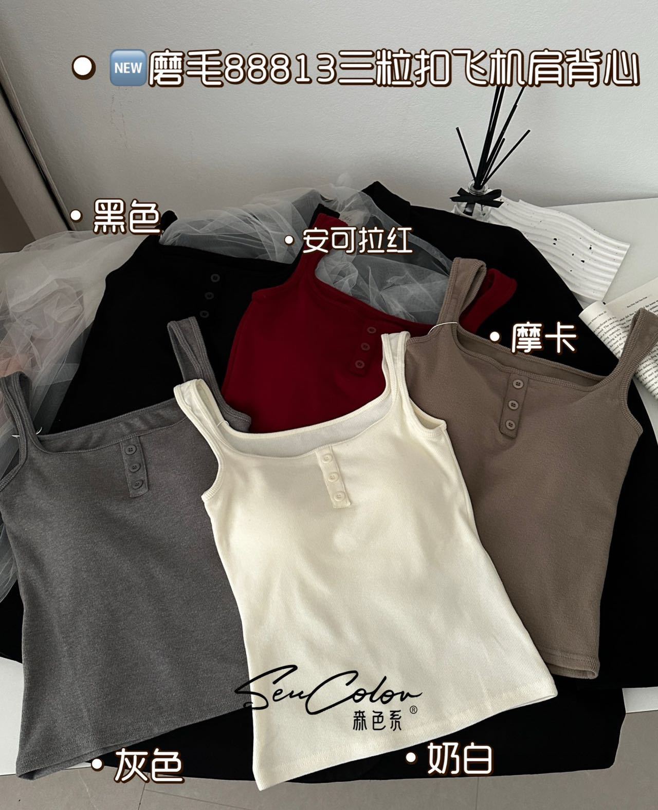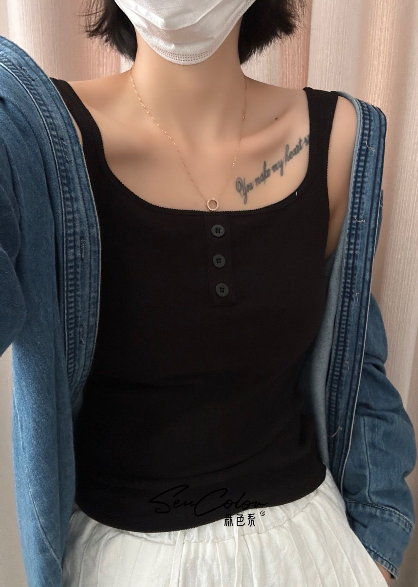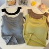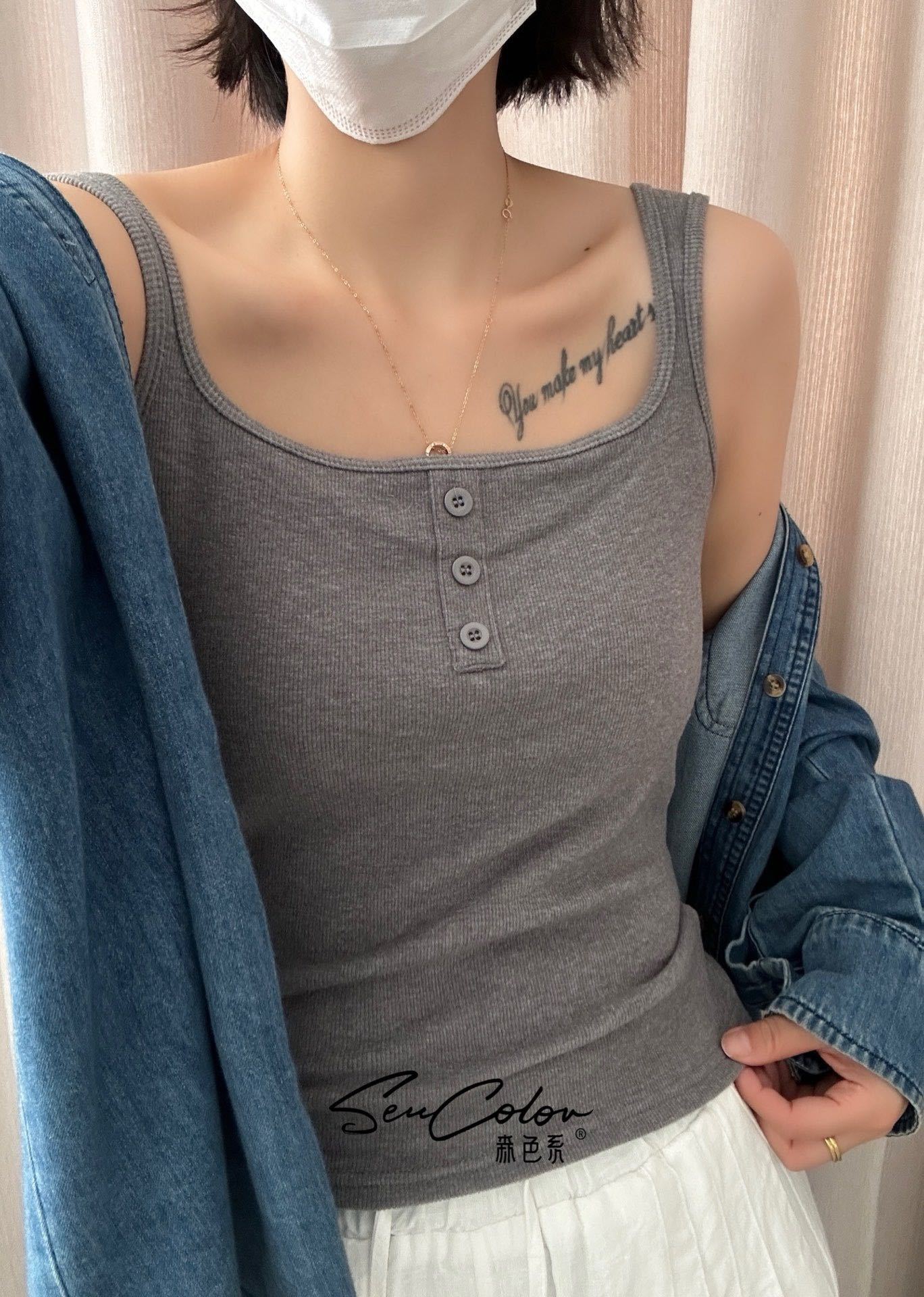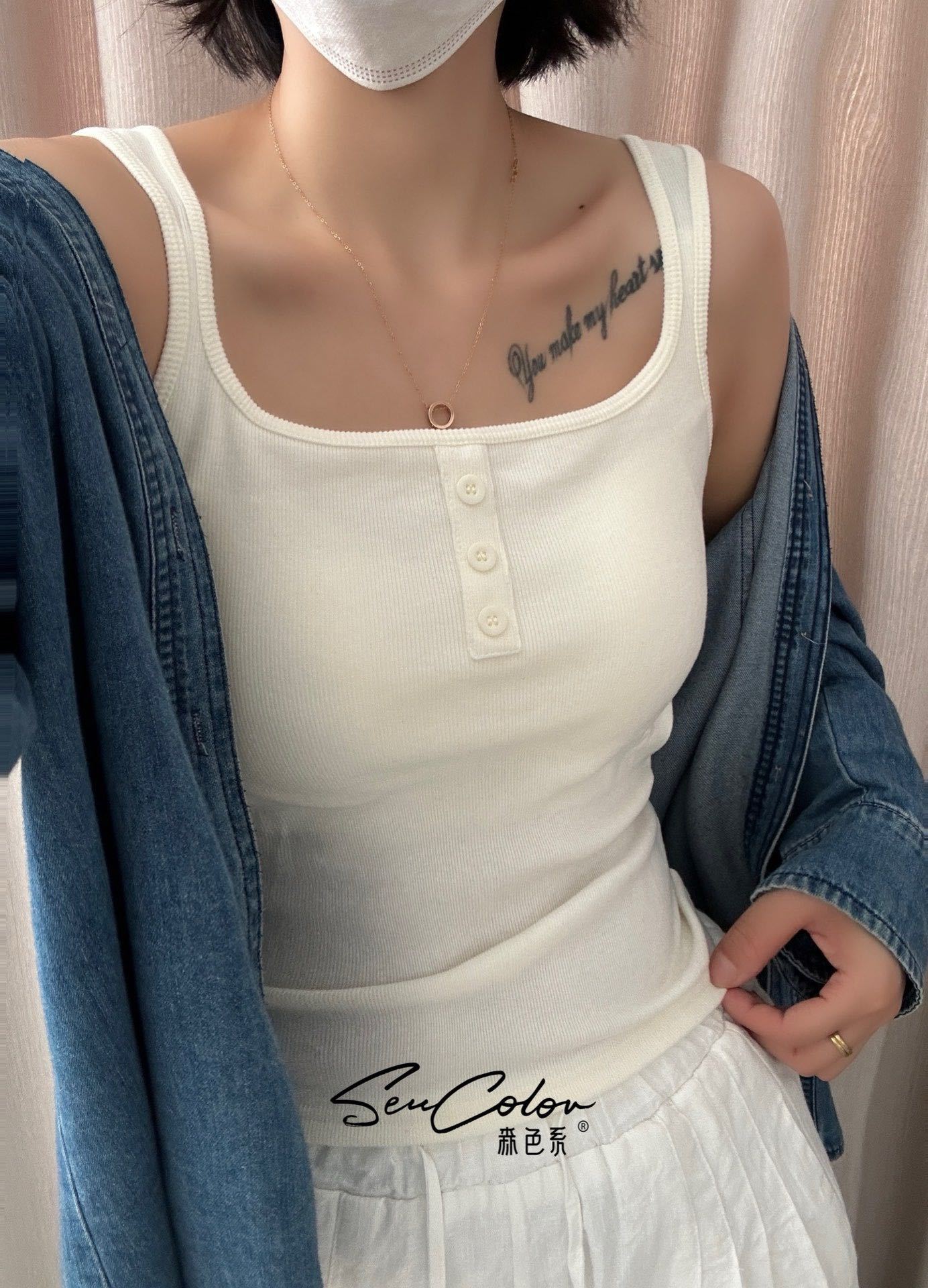 Chaleco Cálido de Lijado para Otoño e Invierno para Mujer con Almohadilla para el Pecho, Cuello Cuadrado, Tres Botones, Hombro de Avión, Ajustado, Adelgazante, Versátil