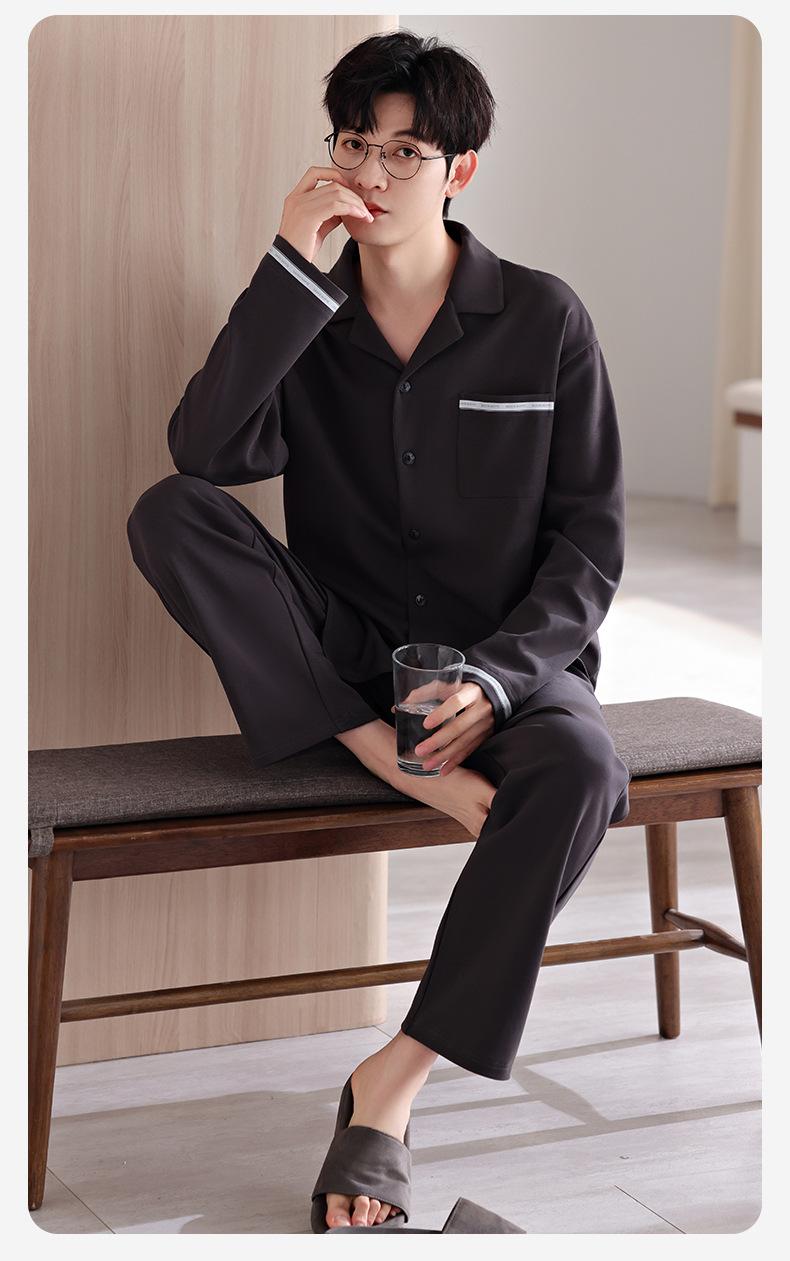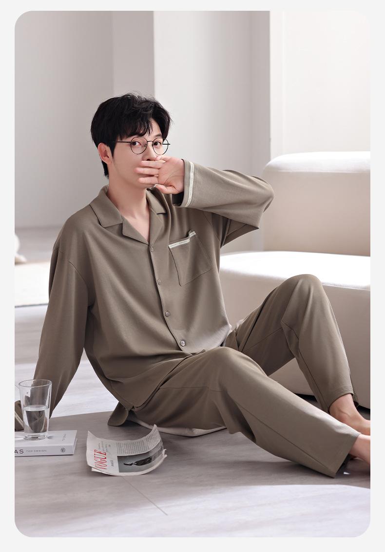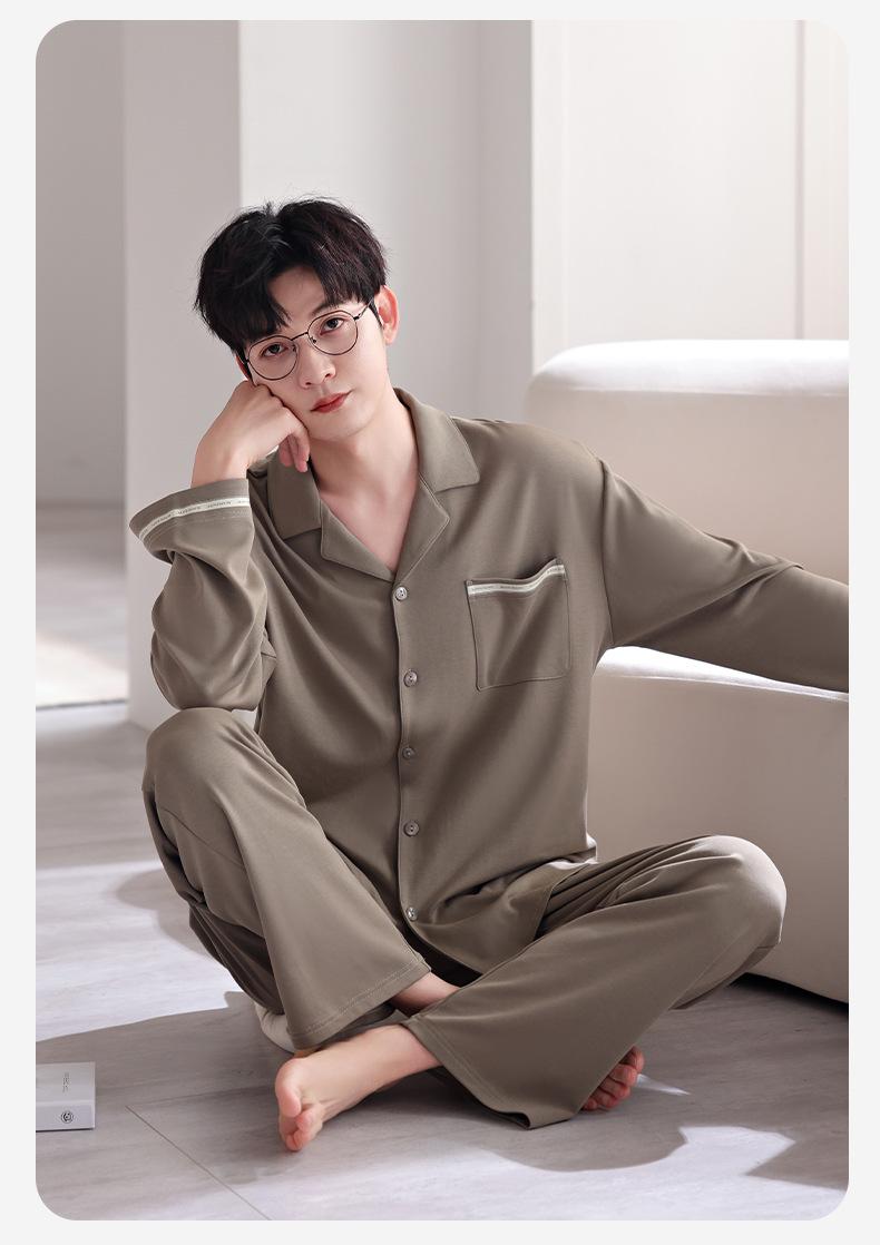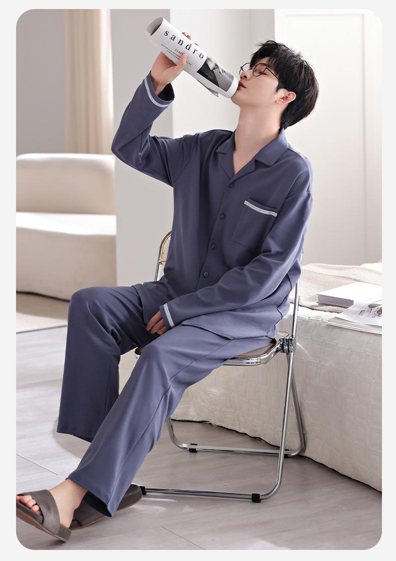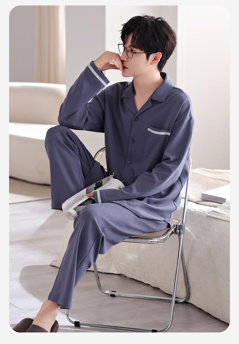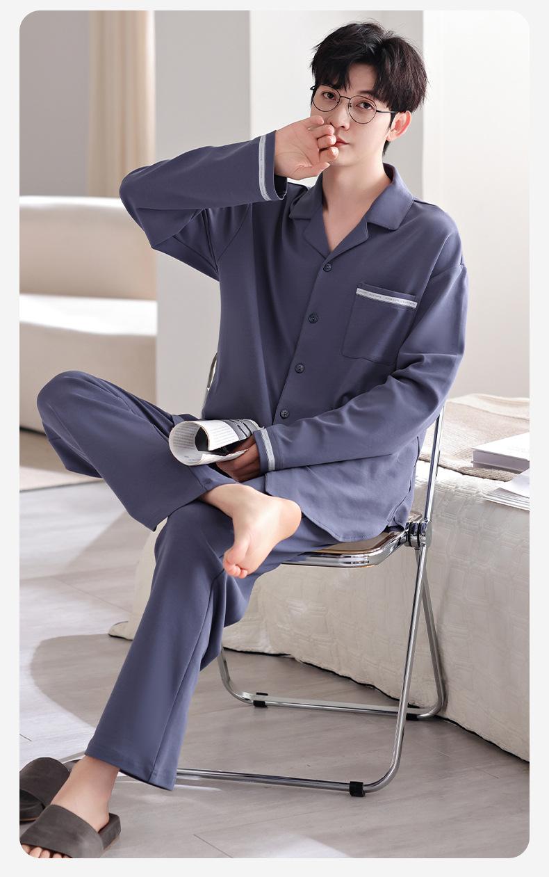 Pijamas de hombre de algodón puro primavera y otoño de manga larga 2024 Nuevo juvenil de talla grande ropa exterior simple ropa de casa traje