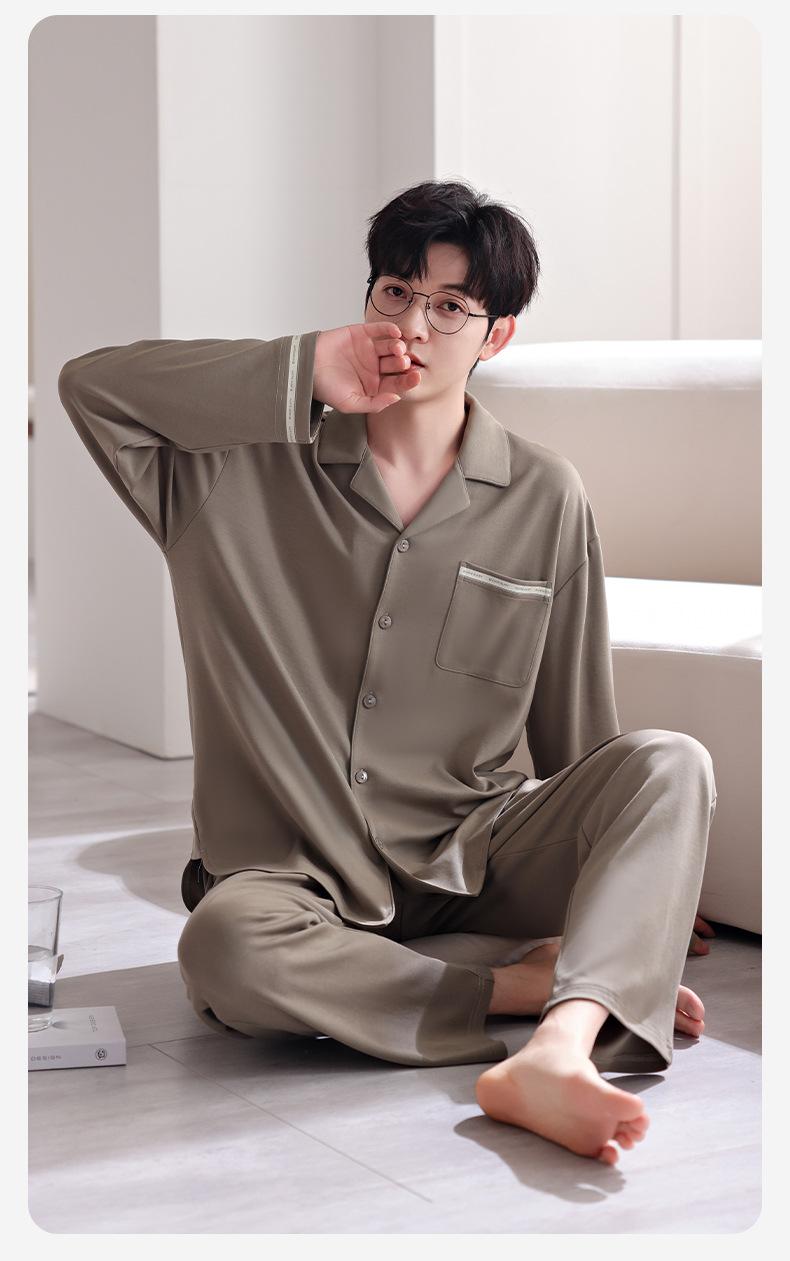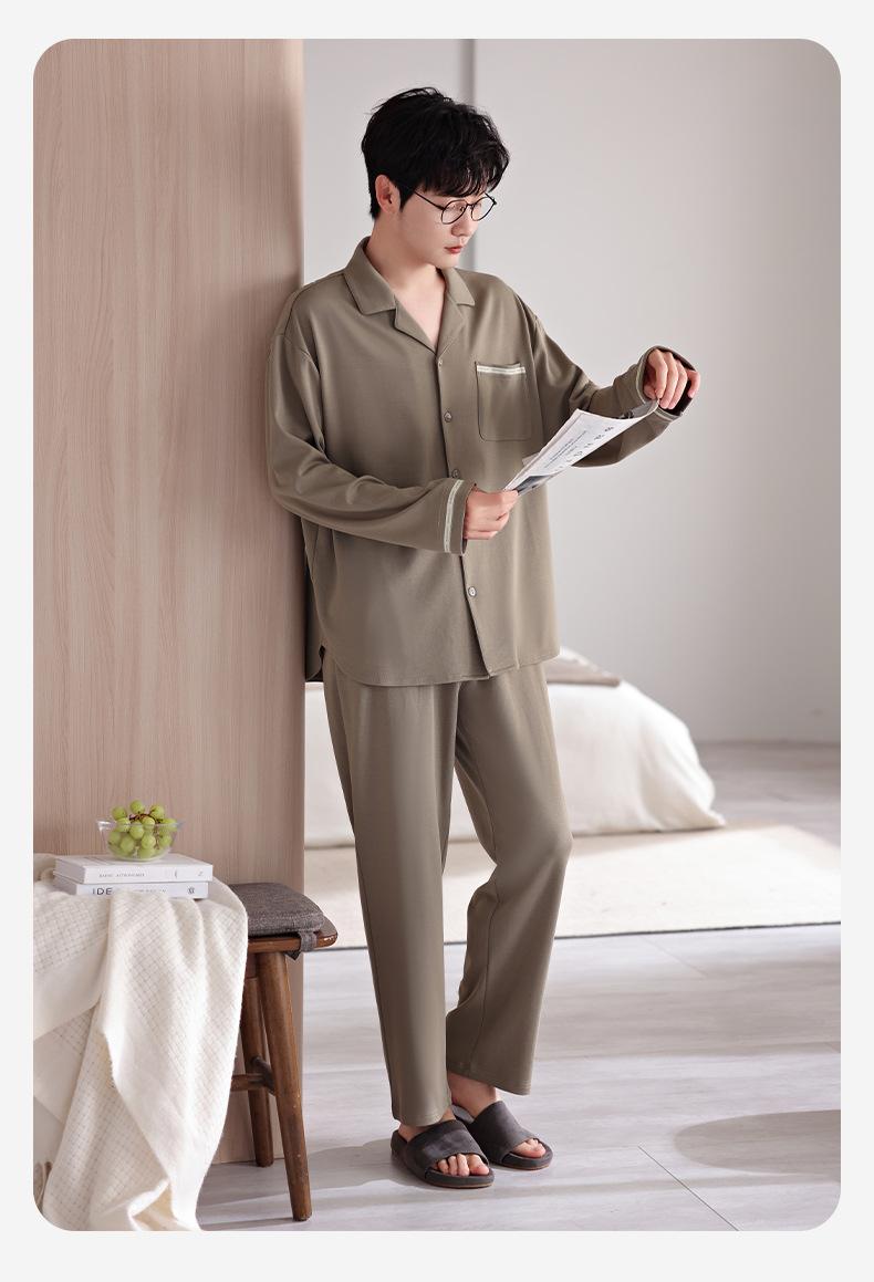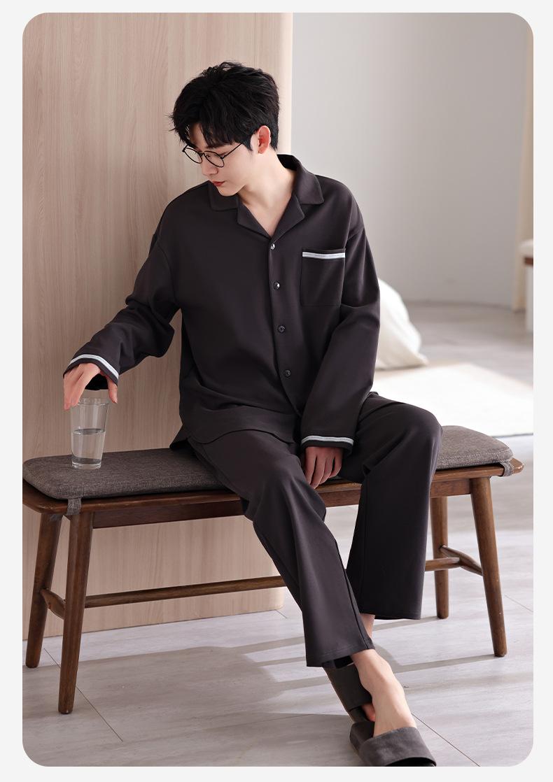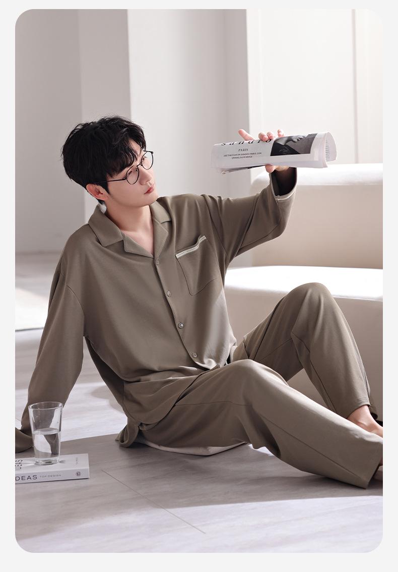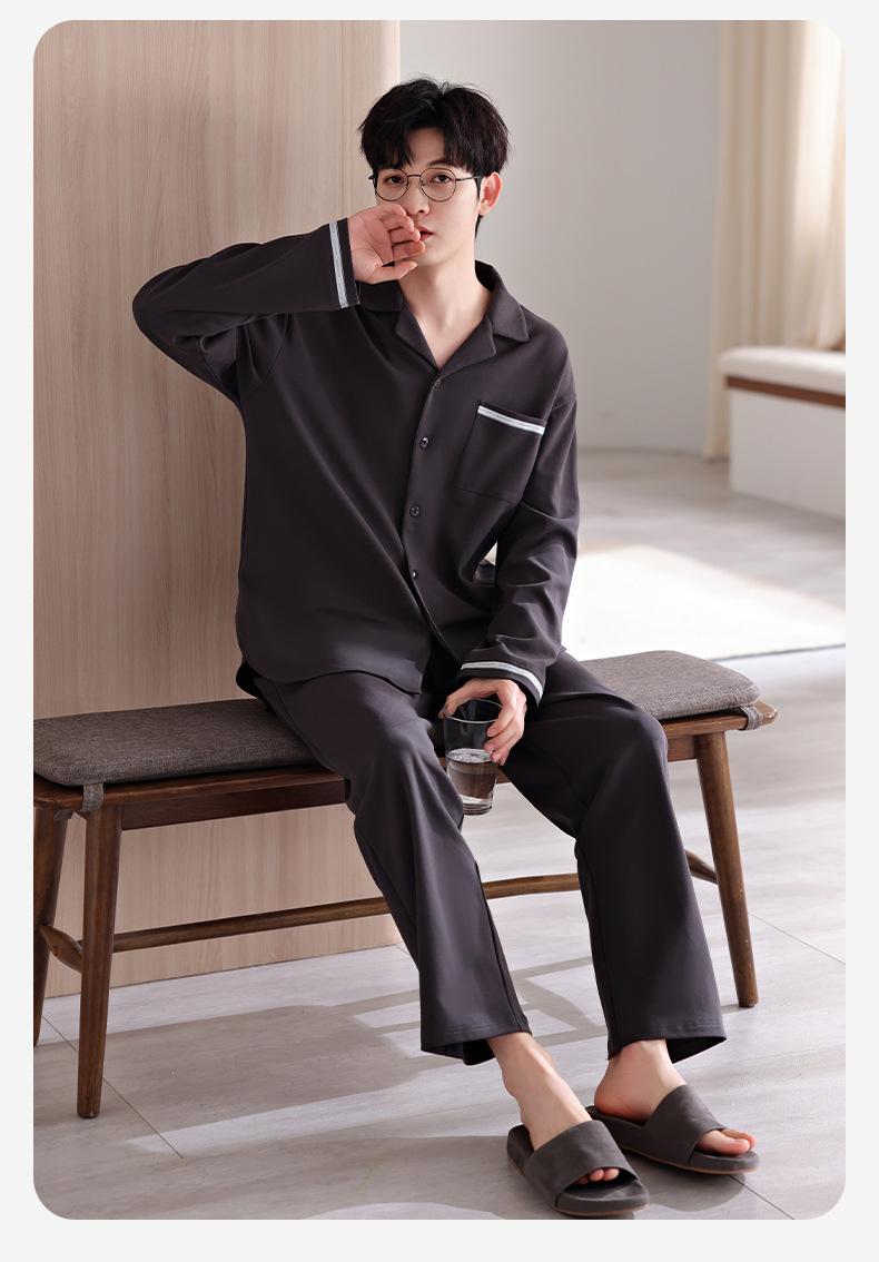 Pijamas de hombre de algodón puro primavera y otoño de manga larga 2024 Nuevo juvenil de talla grande ropa exterior simple ropa de casa traje