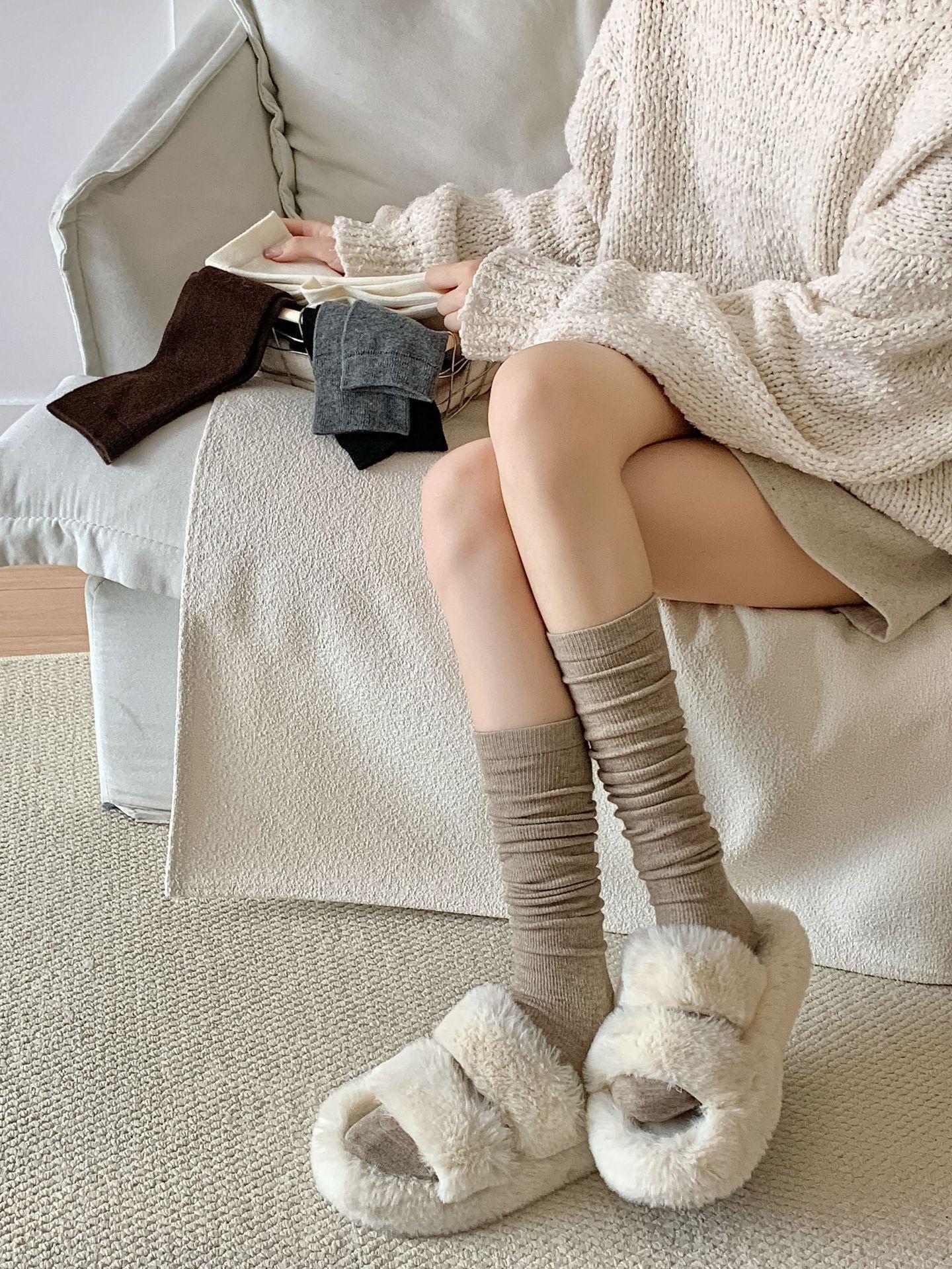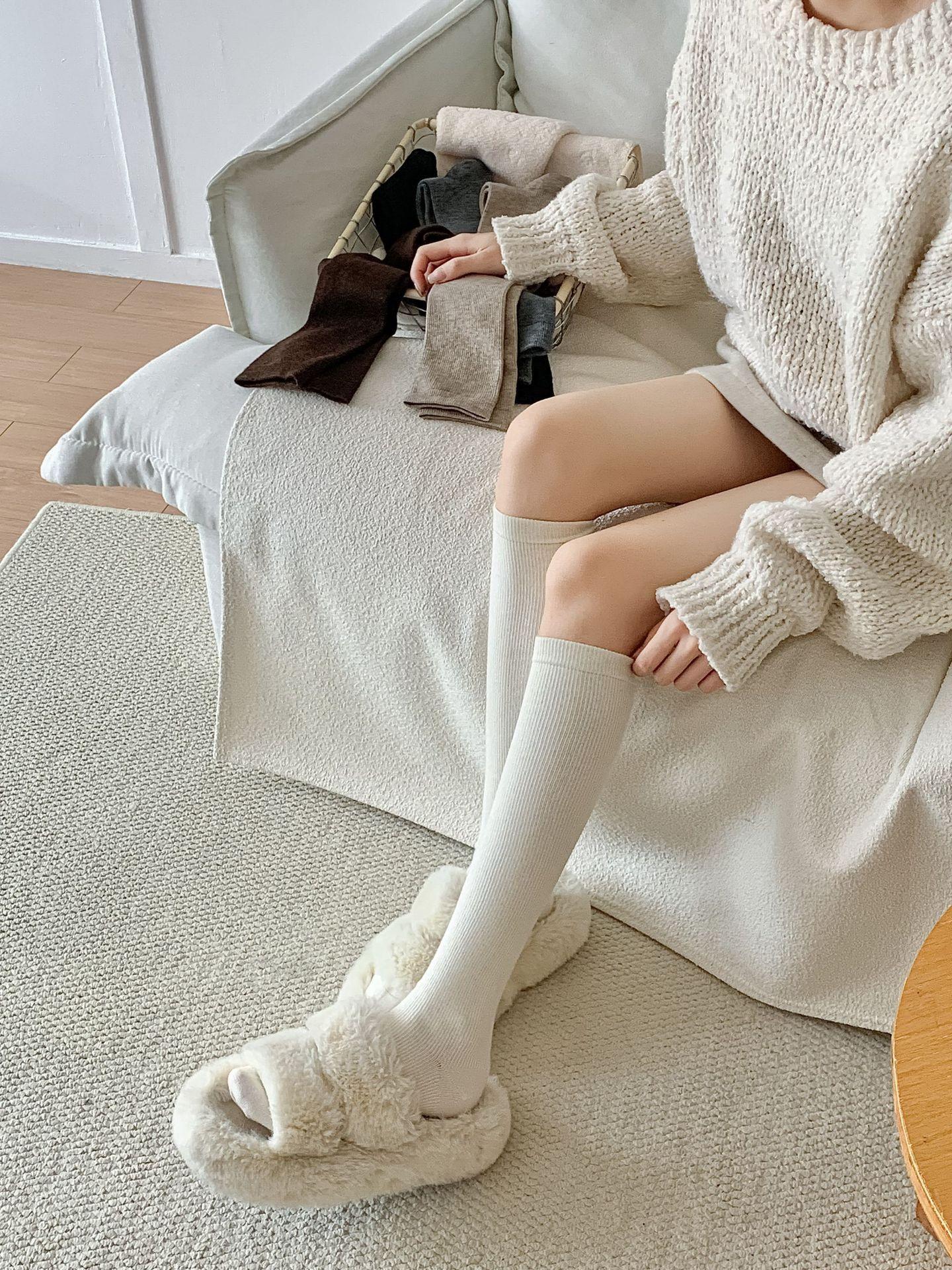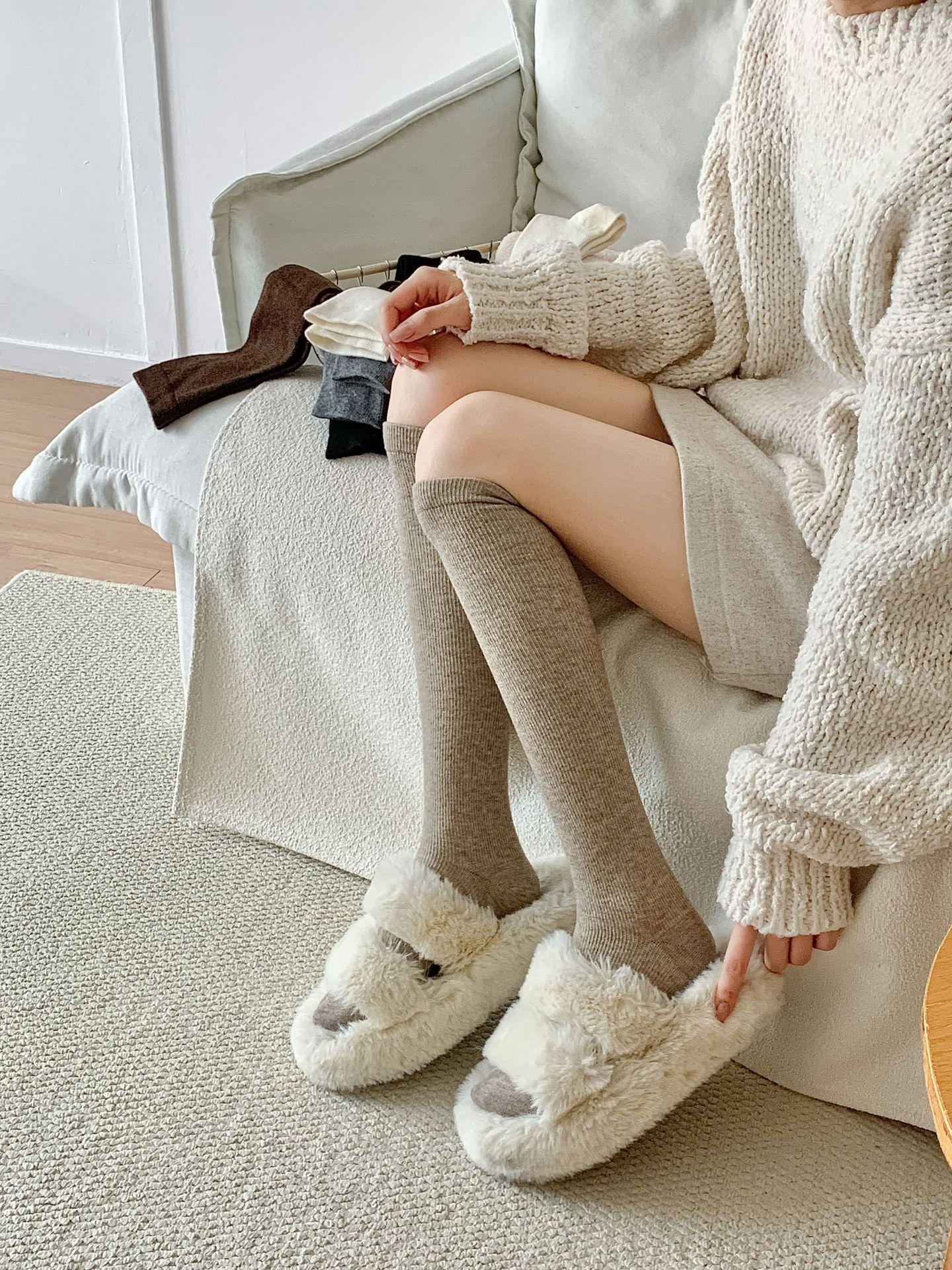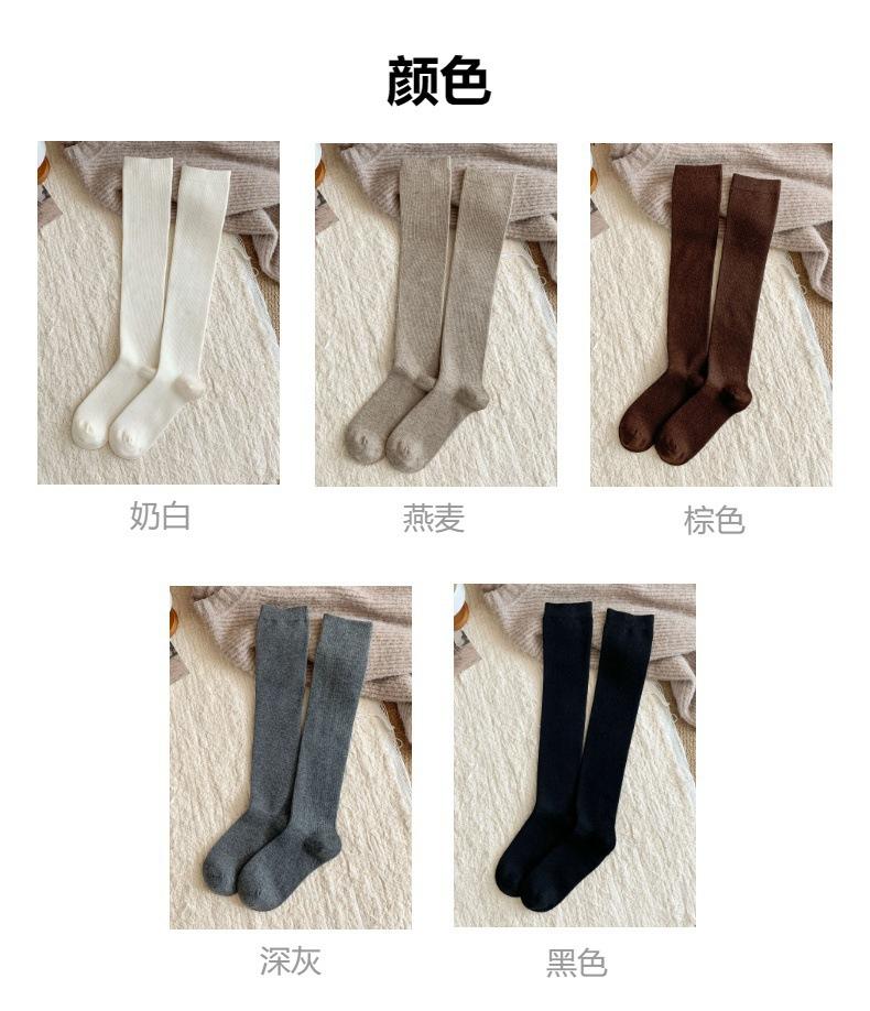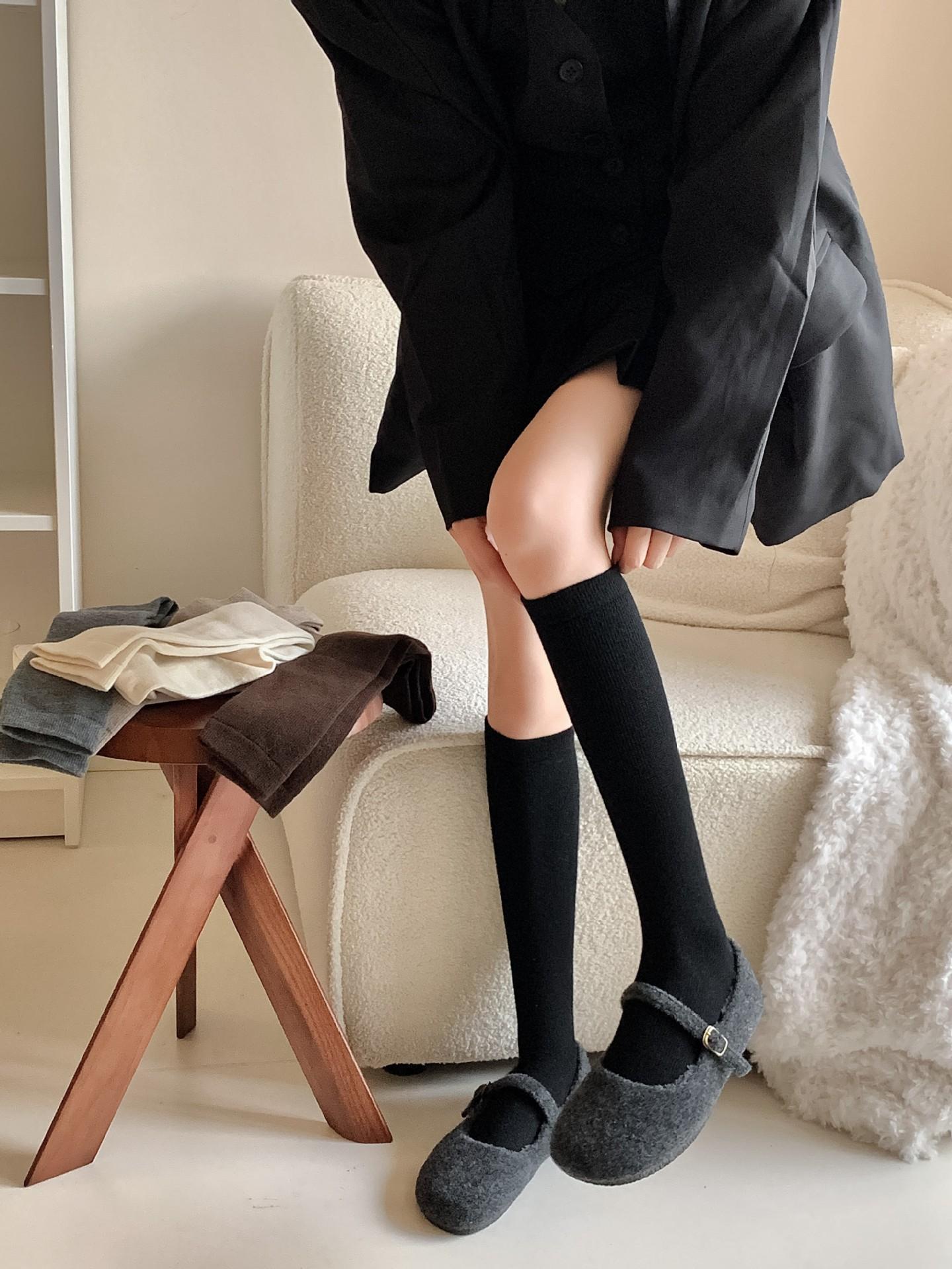 Calcetines Bajos de Lana Presión Clásico Color Sólido Combinable Casual Otoño e Invierno Gruesos Cálidos Largos Estilo Universitario Hasta la Rodilla Calcetines de Mujer