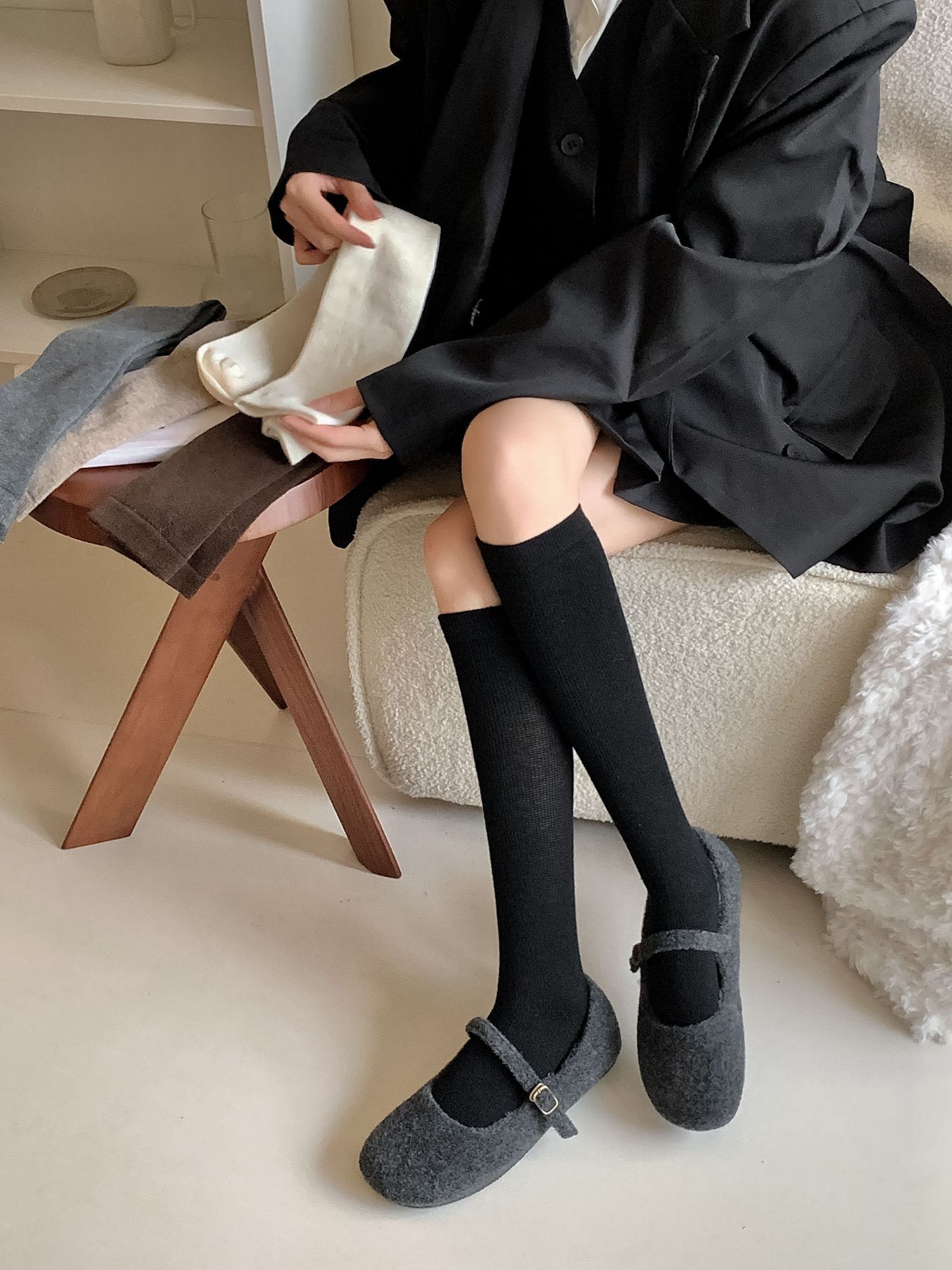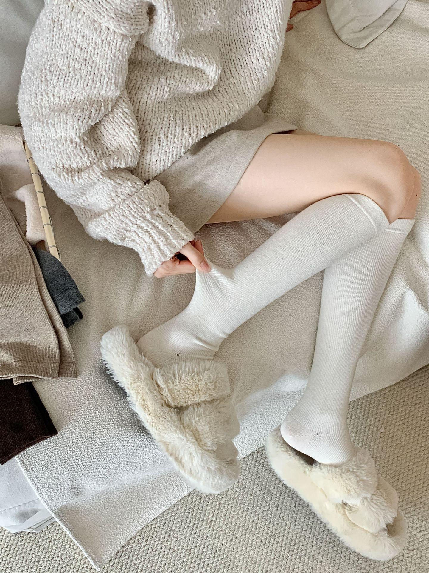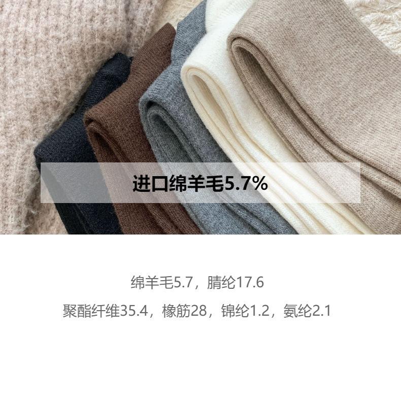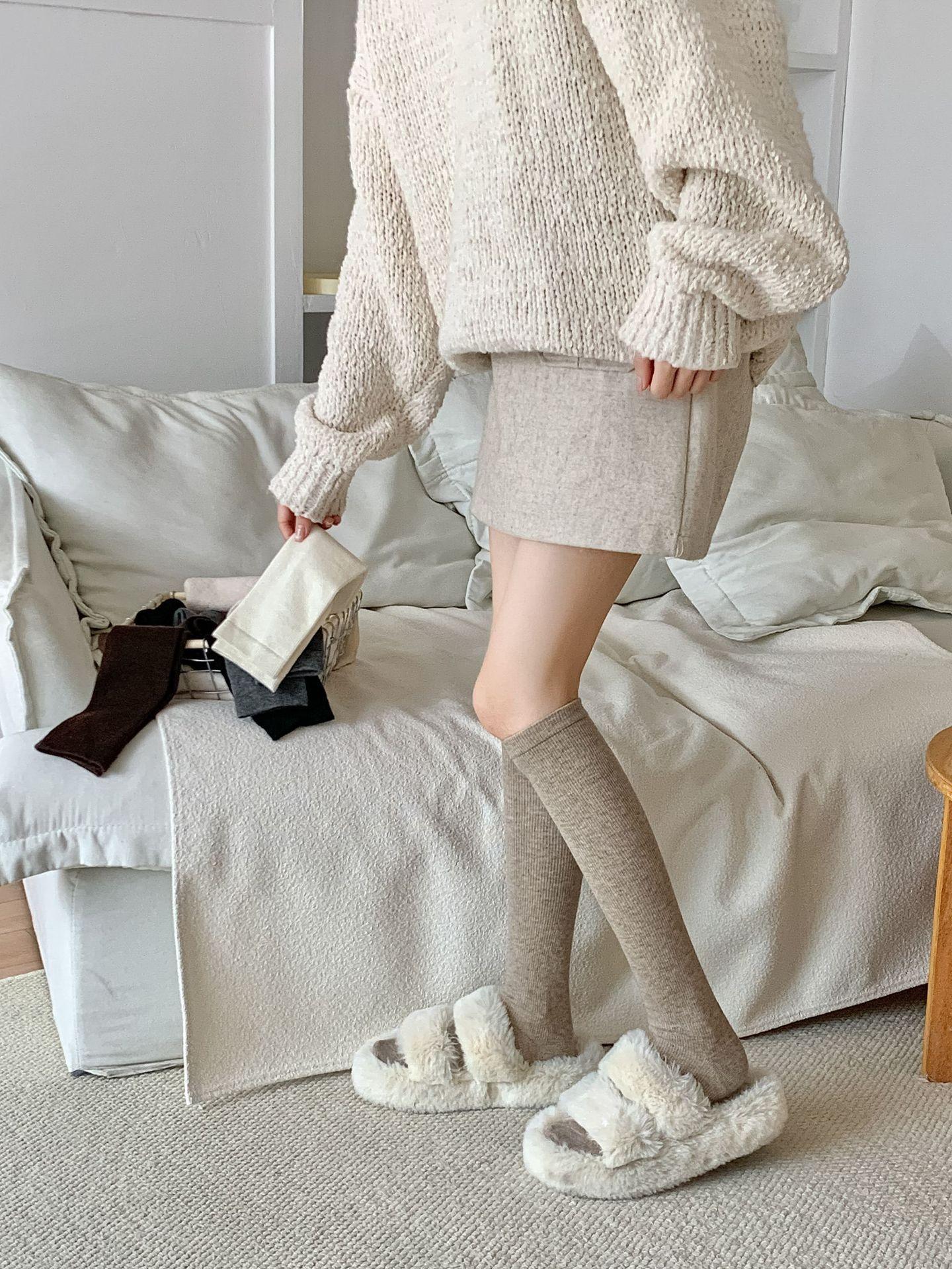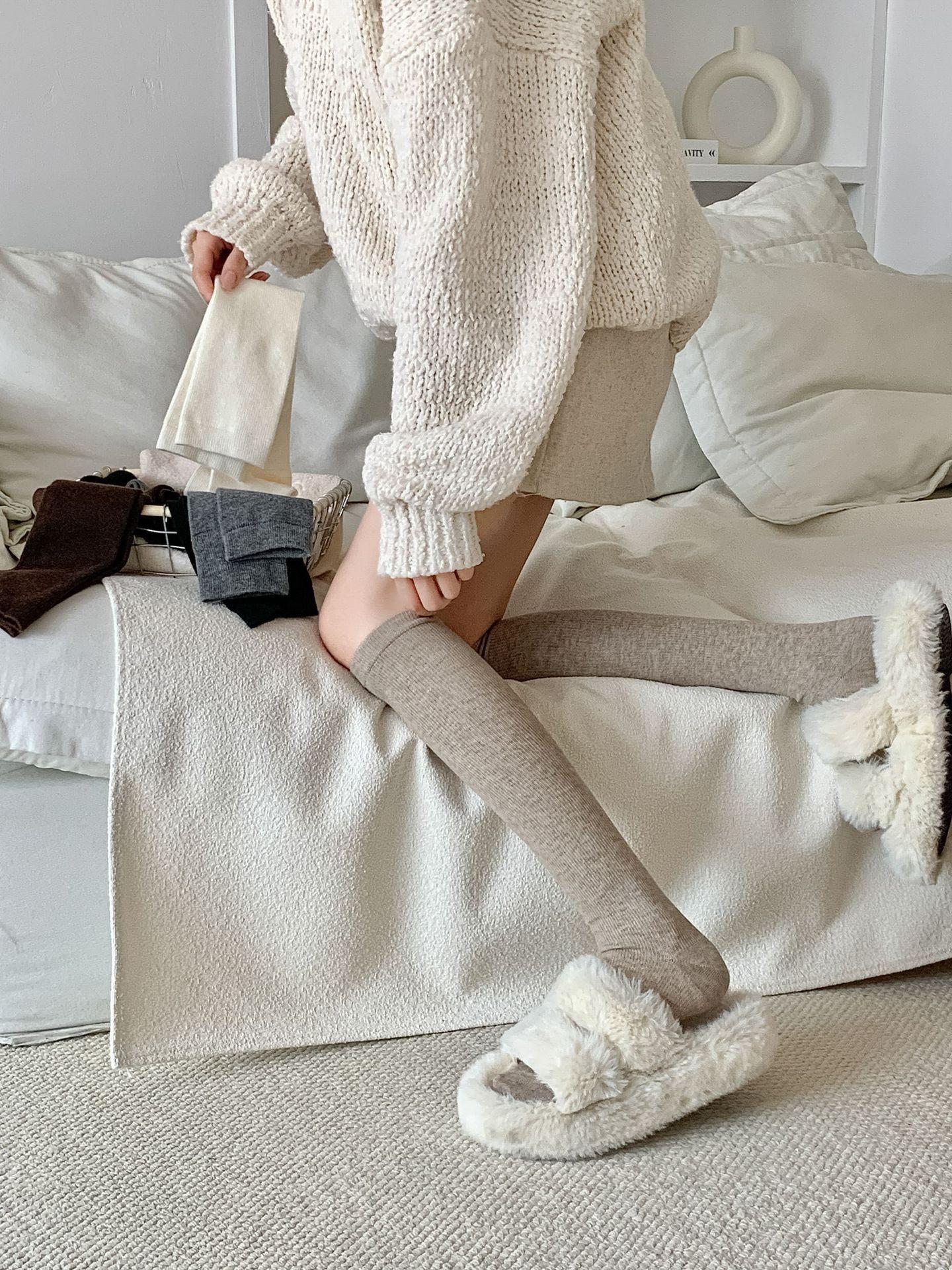 Calcetines Bajos de Lana Presión Clásico Color Sólido Combinable Casual Otoño e Invierno Gruesos Cálidos Largos Estilo Universitario Hasta la Rodilla Calcetines de Mujer