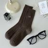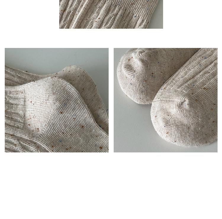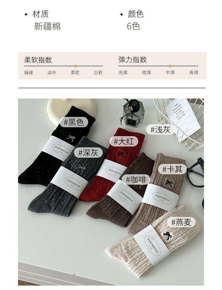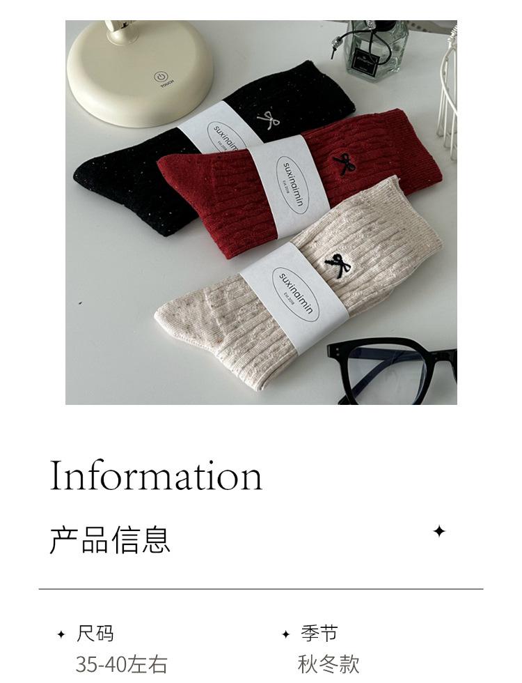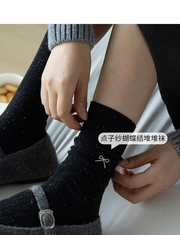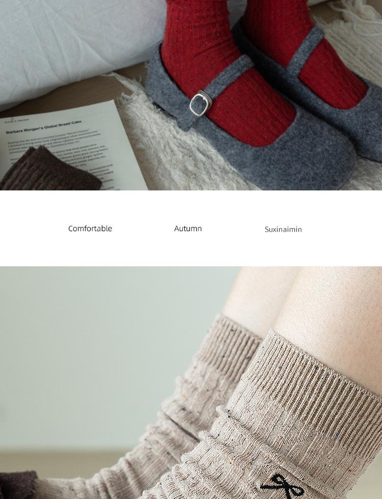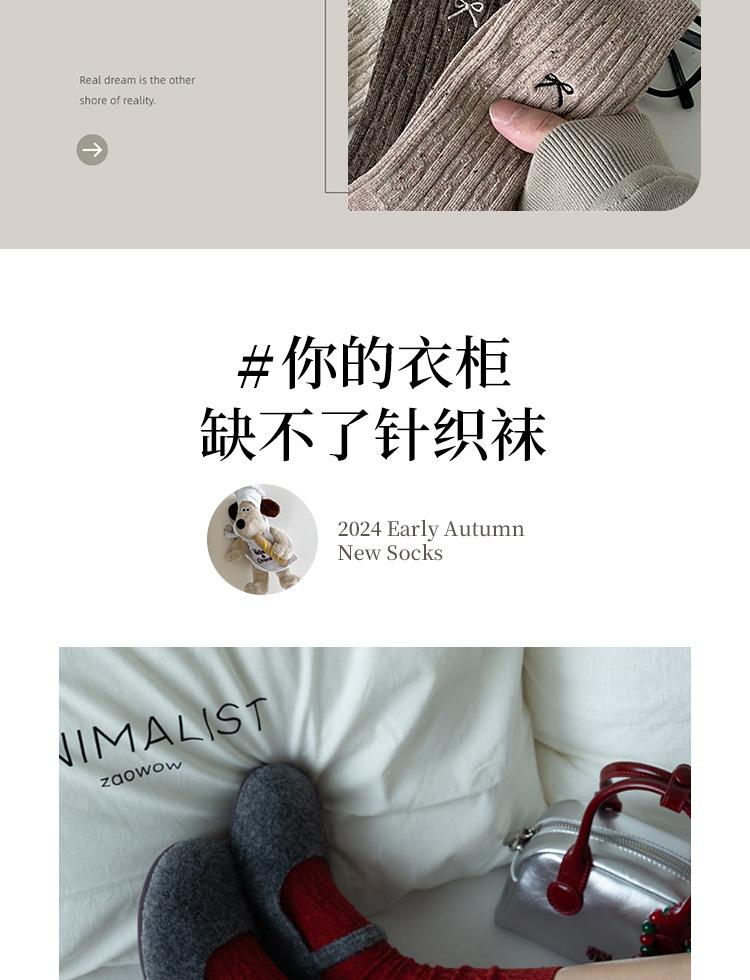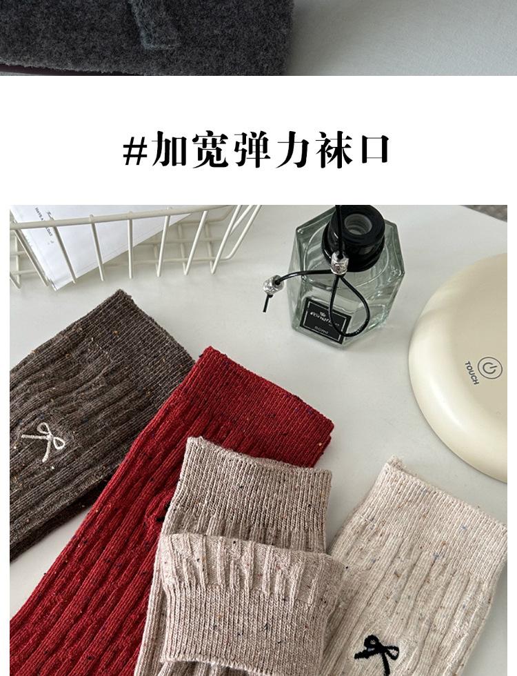 Calcetines de otoño e invierno 2024 para niños, estilo japonés, bonitos calcetines de media caña con lazo bordado, hilo de punto, calcetines grises apilados