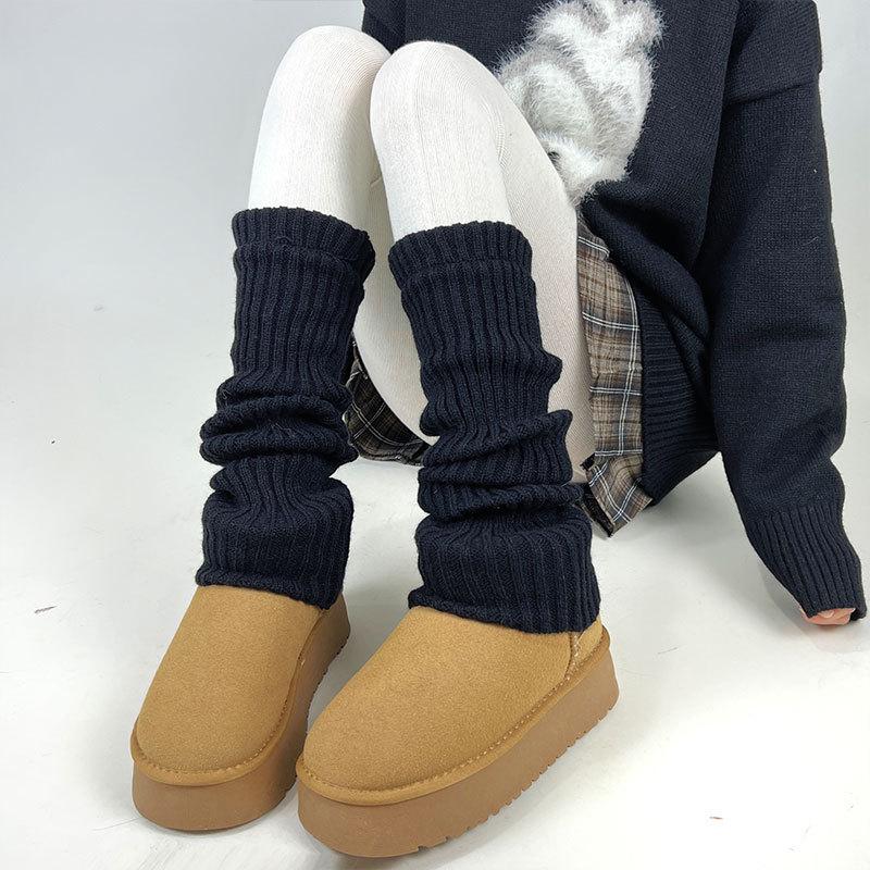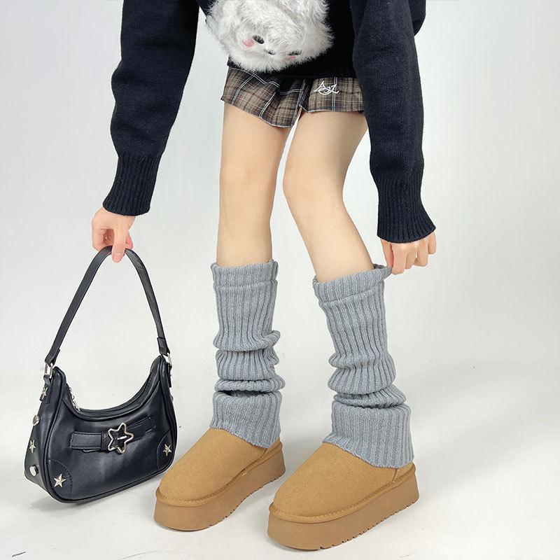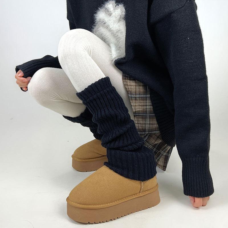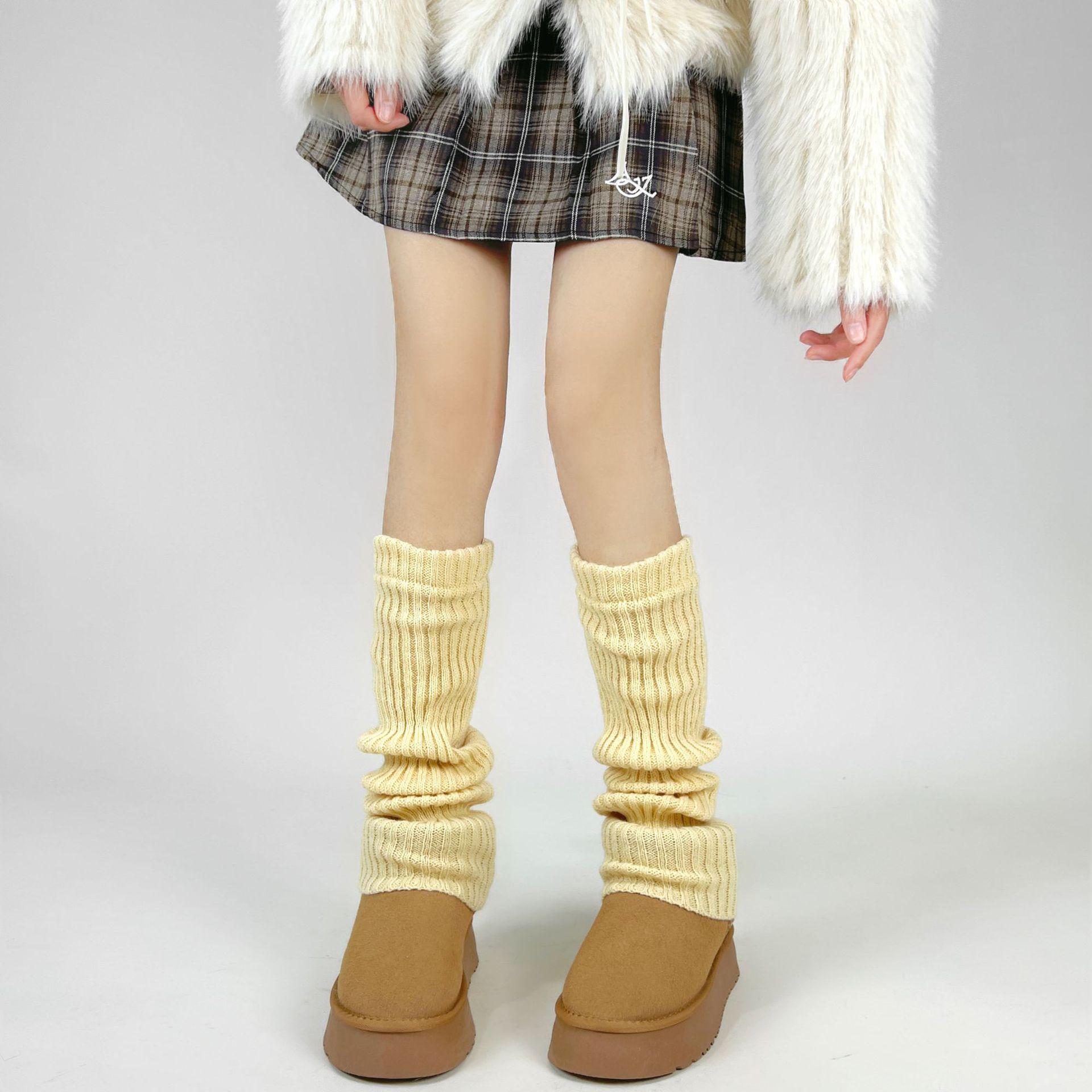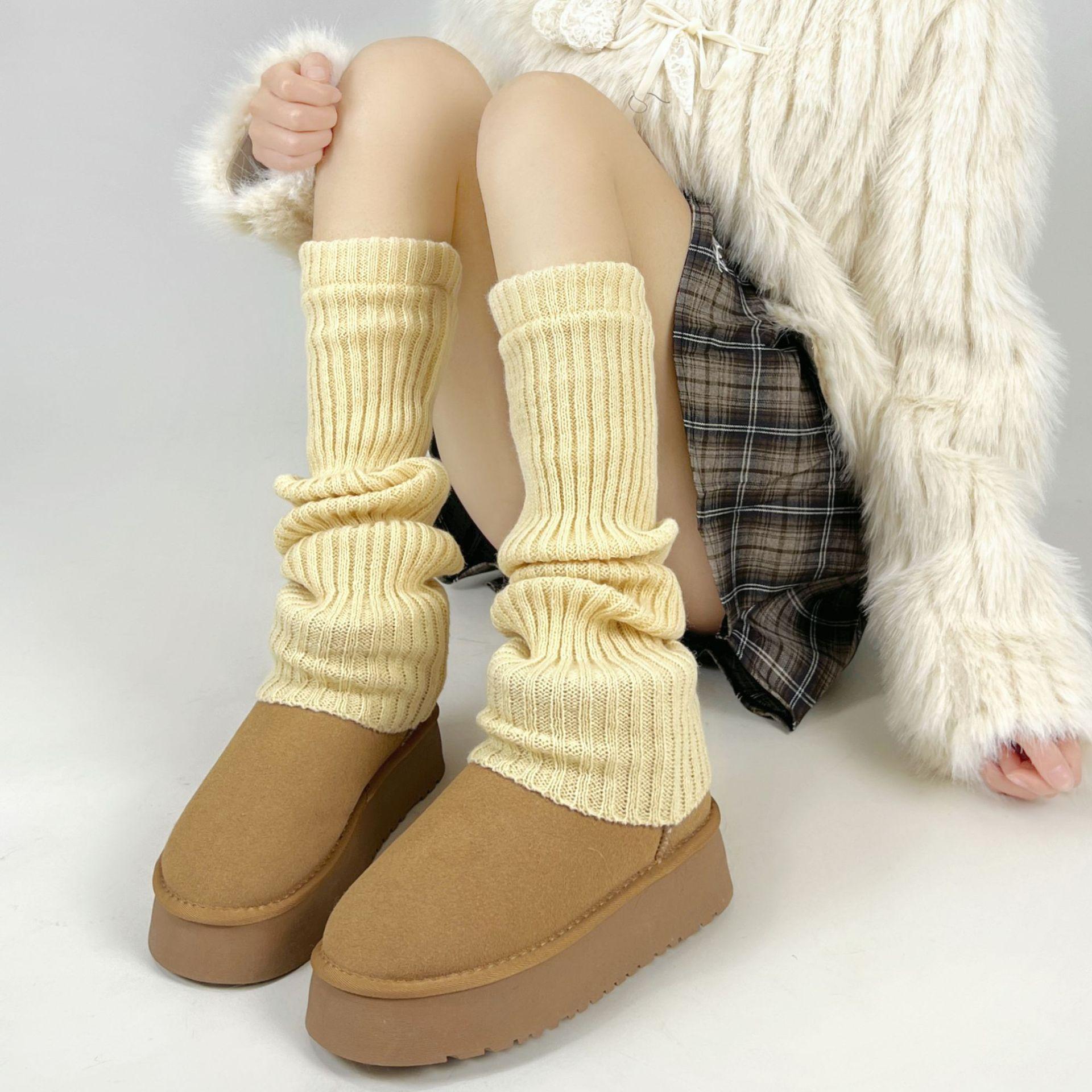 Otoño e Invierno Calcetines Elásticos de Lana Tejida Botas de Nieve Calcetines Apilados de Mujer de 50 cm en el Tubo Calcetines Cálidos Versátiles hasta la Pantorrilla