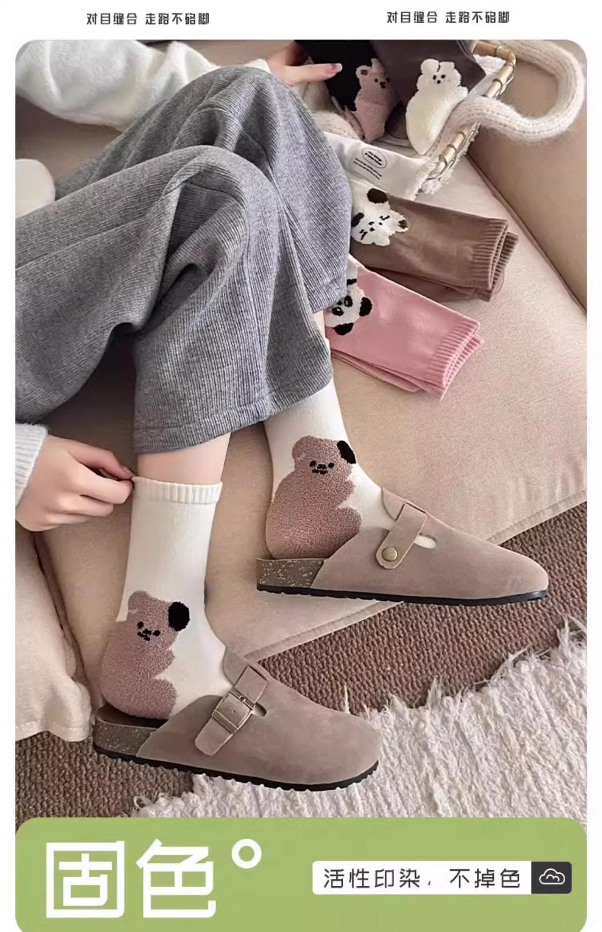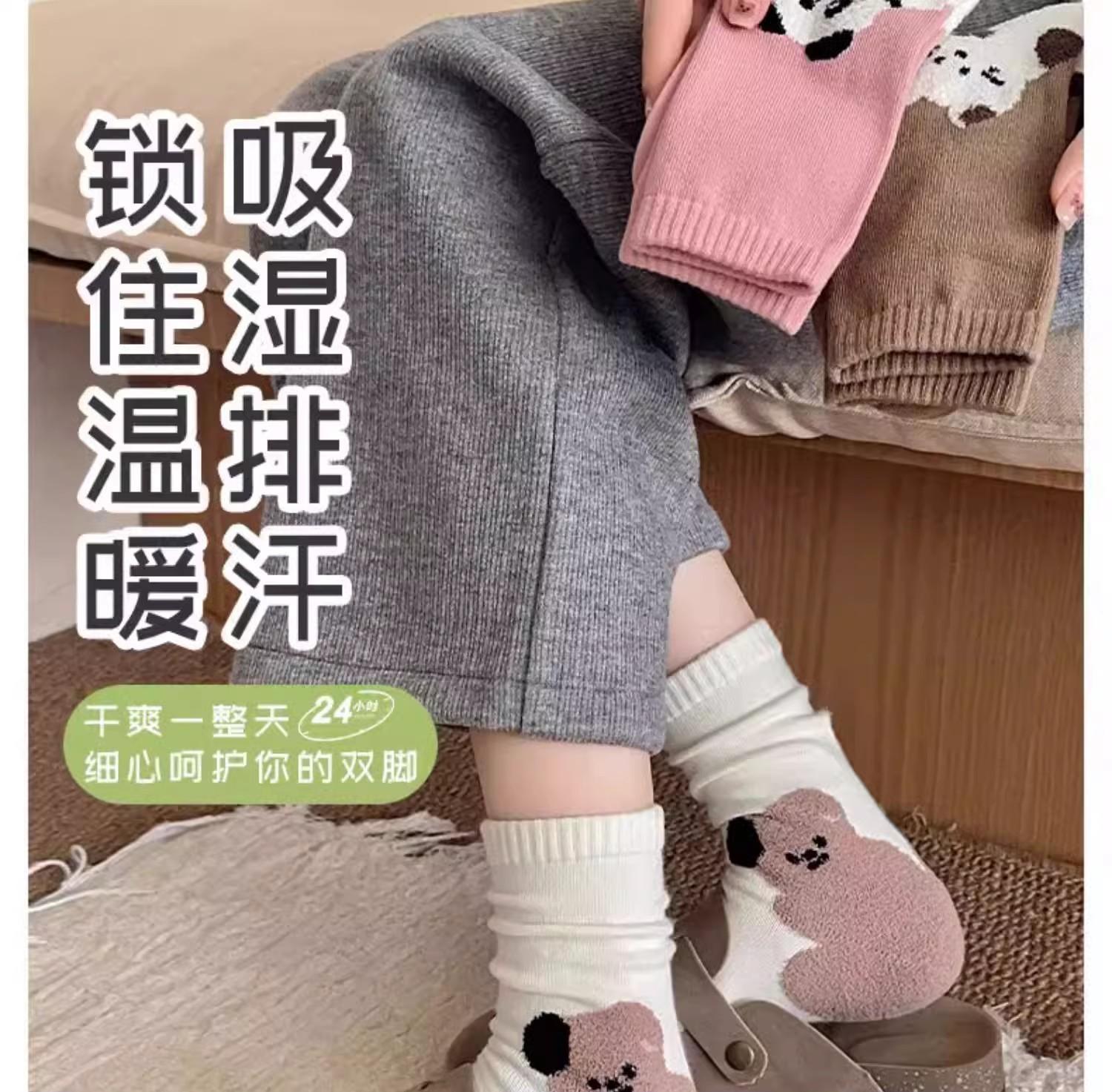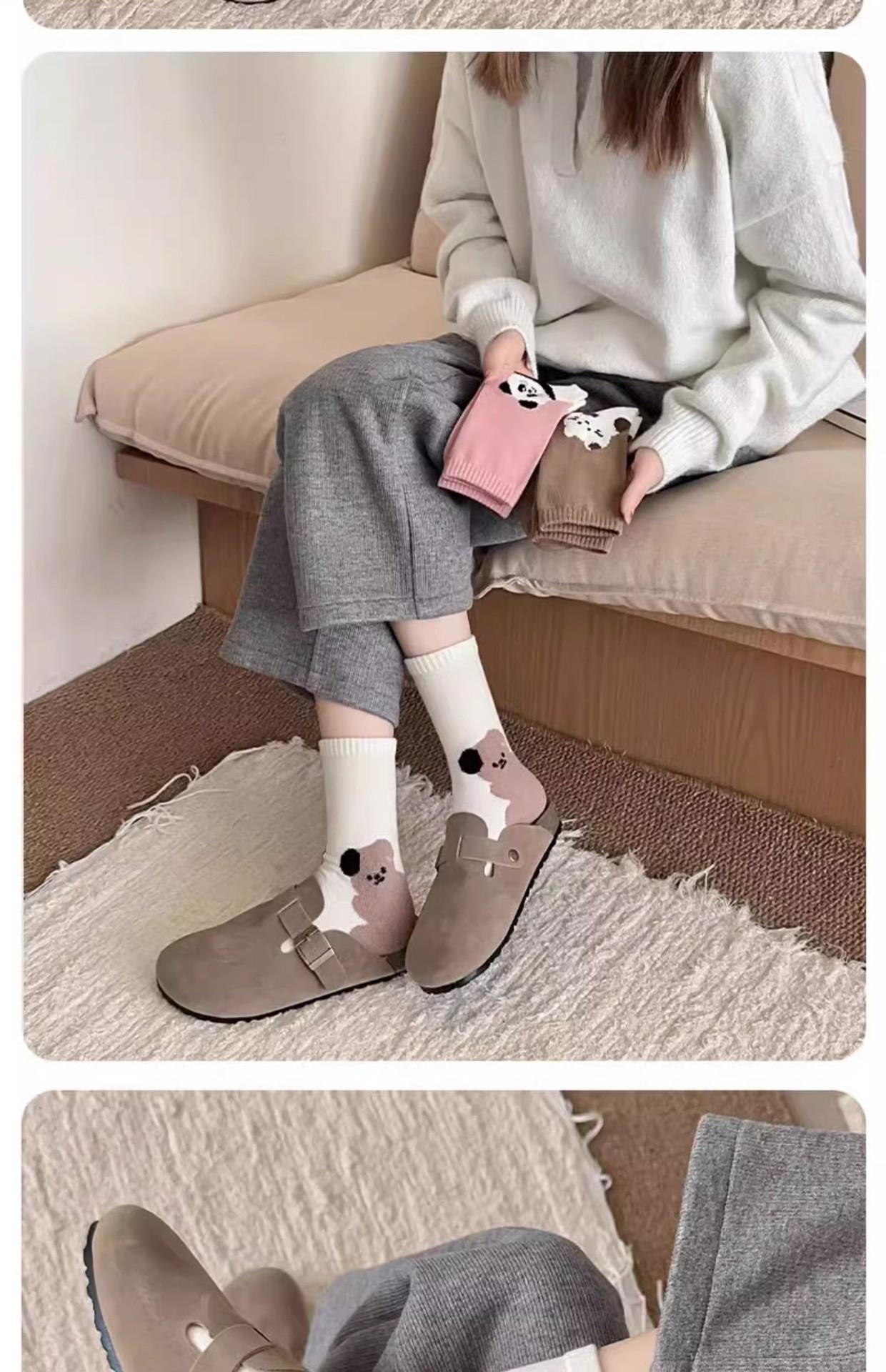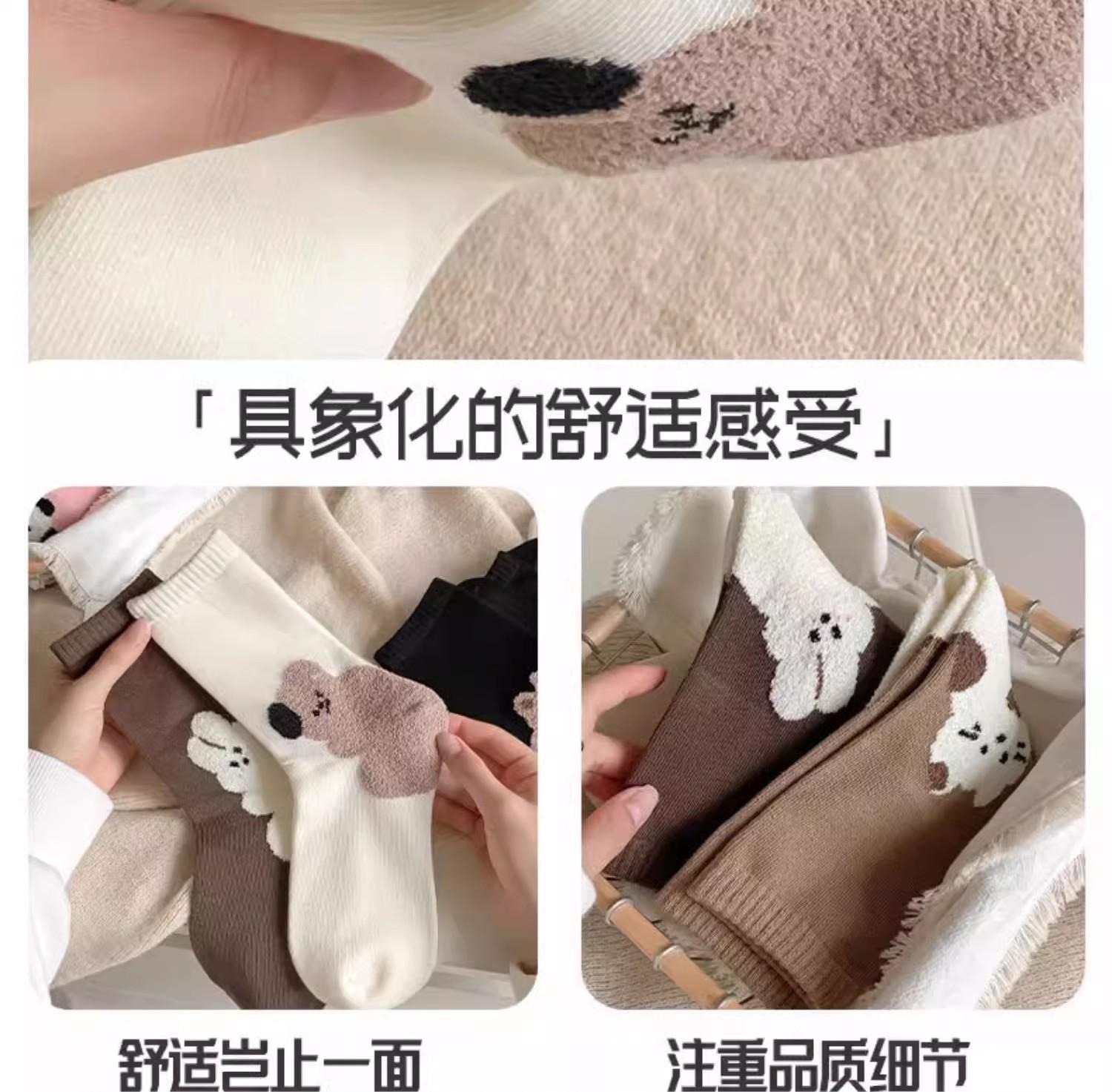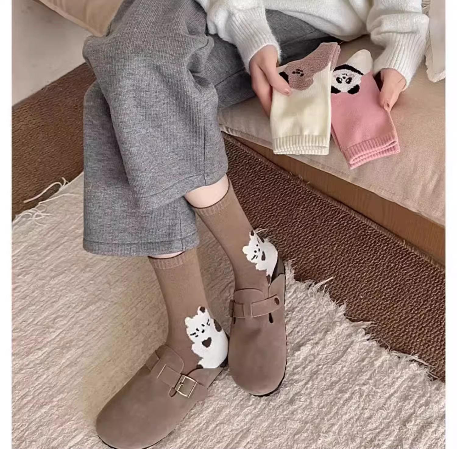 Calcetines de algodón para mujer, otoño e invierno, japoneses, con dibujos de osos, a la moda, apilados, para estudiantes, combinables con todo.