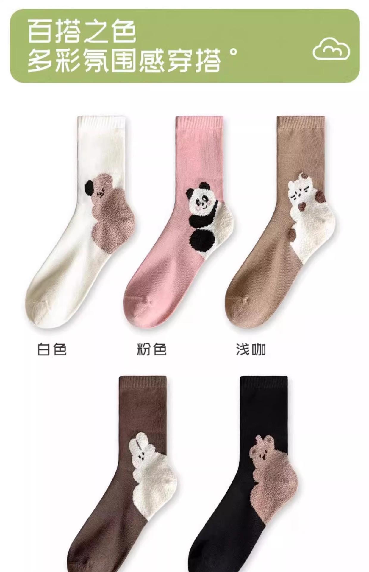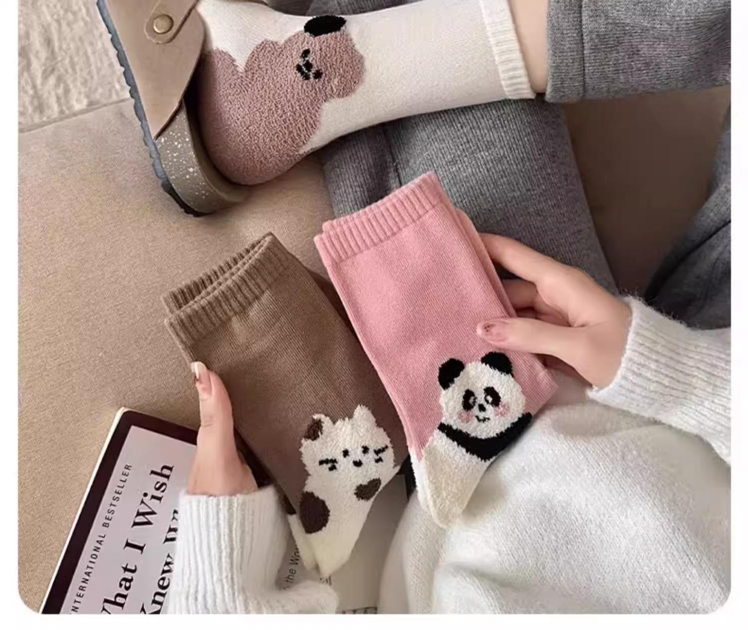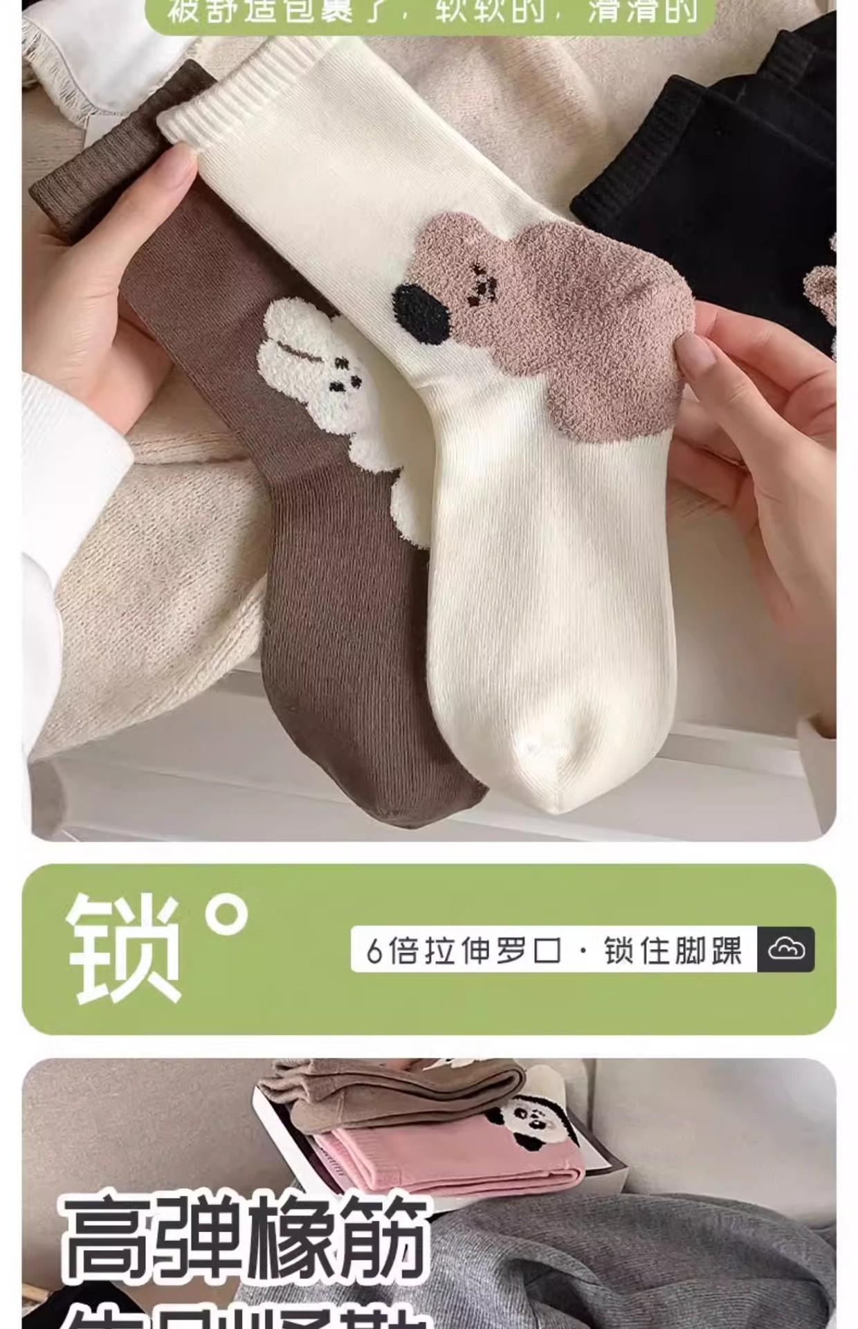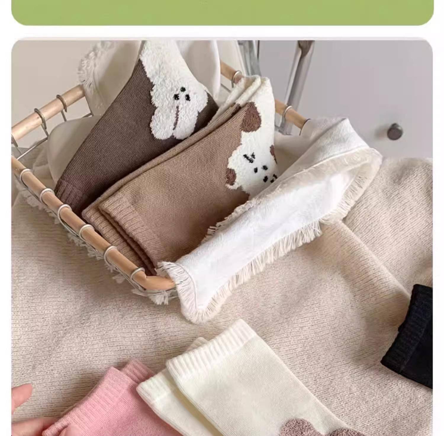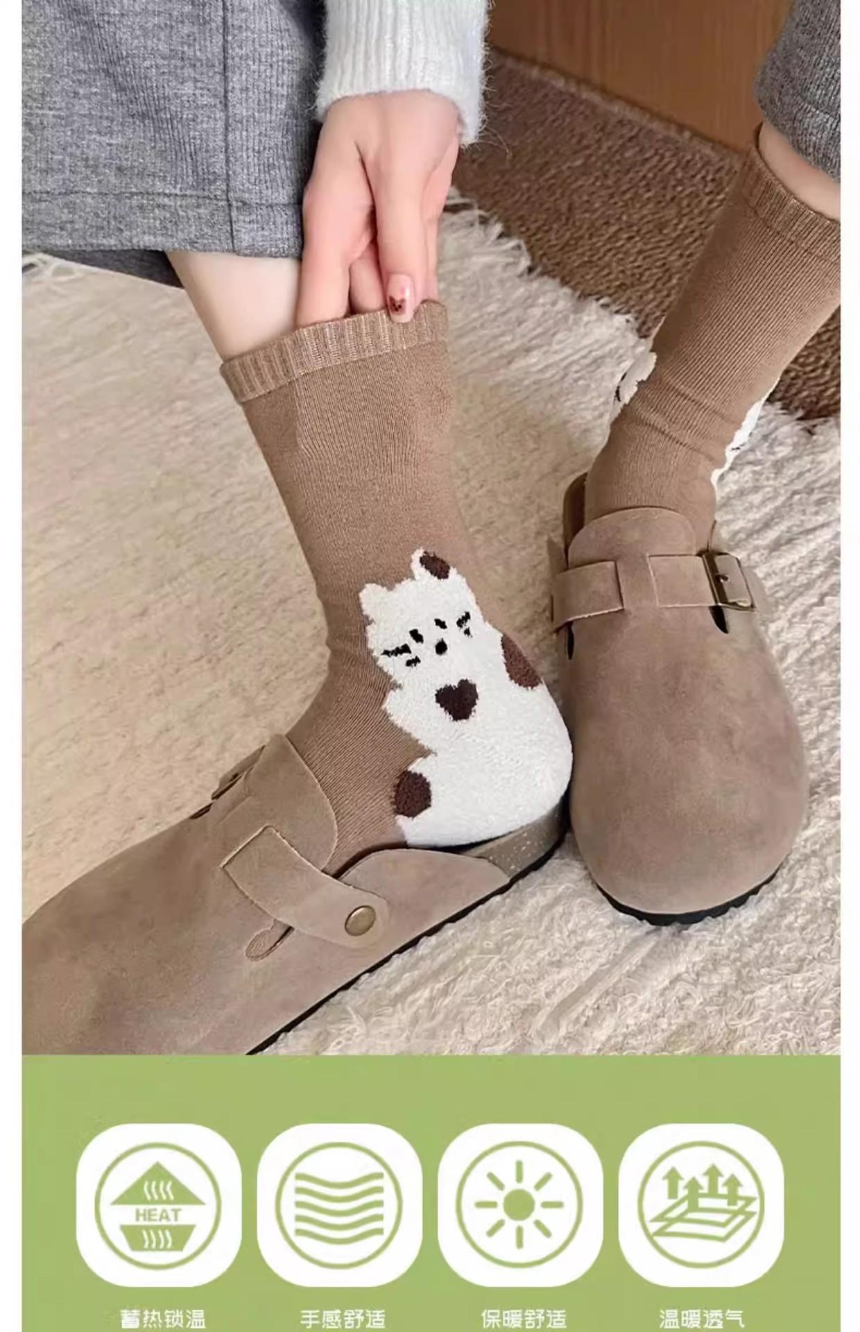 Calcetines de algodón para mujer, otoño e invierno, japoneses, con dibujos de osos, a la moda, apilados, para estudiantes, combinables con todo.