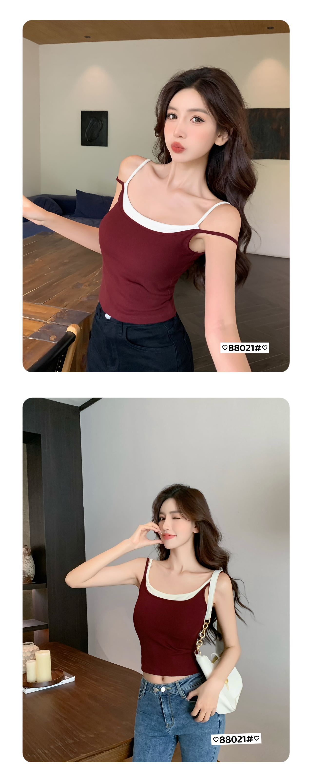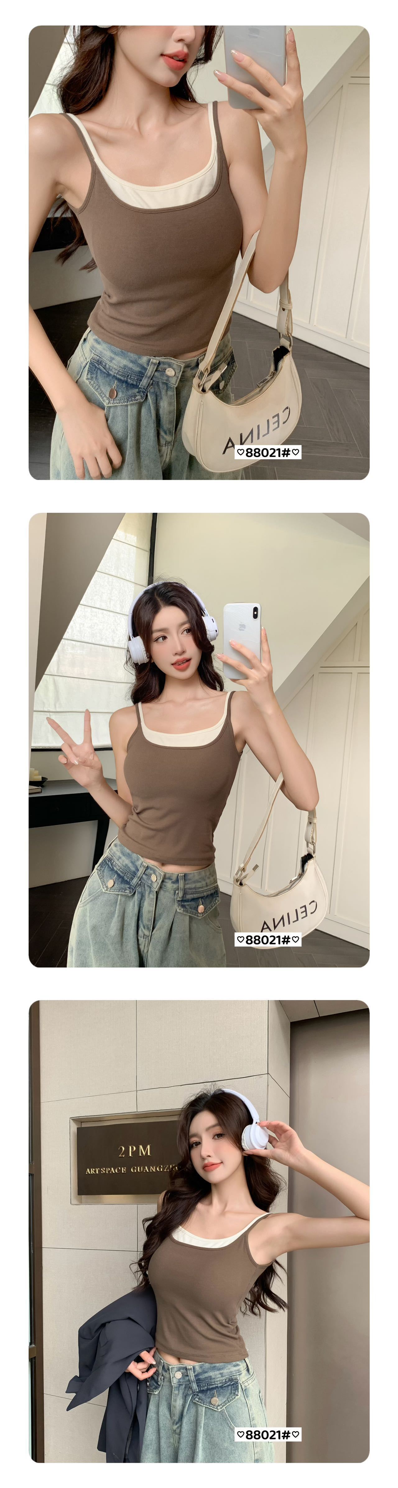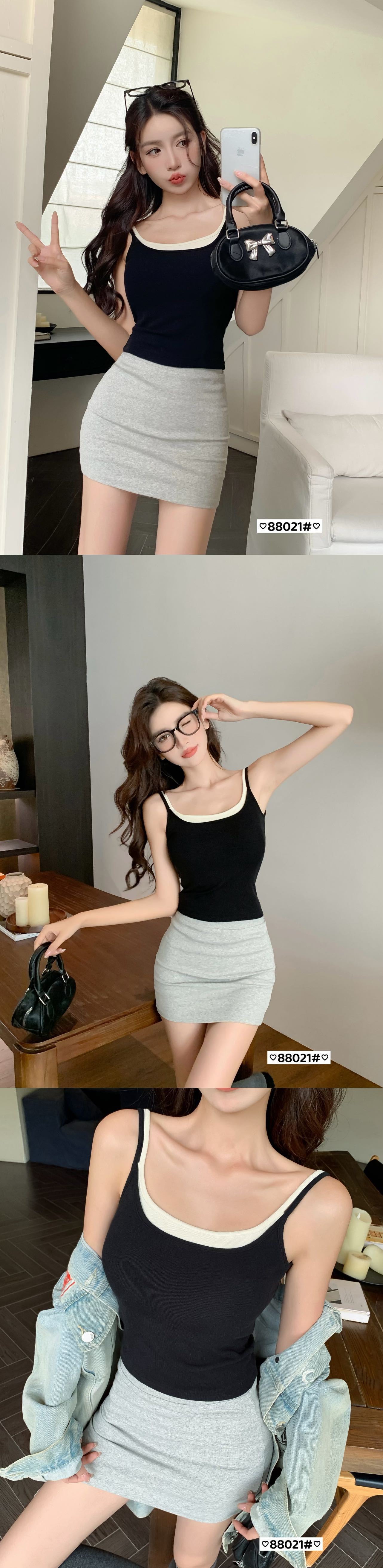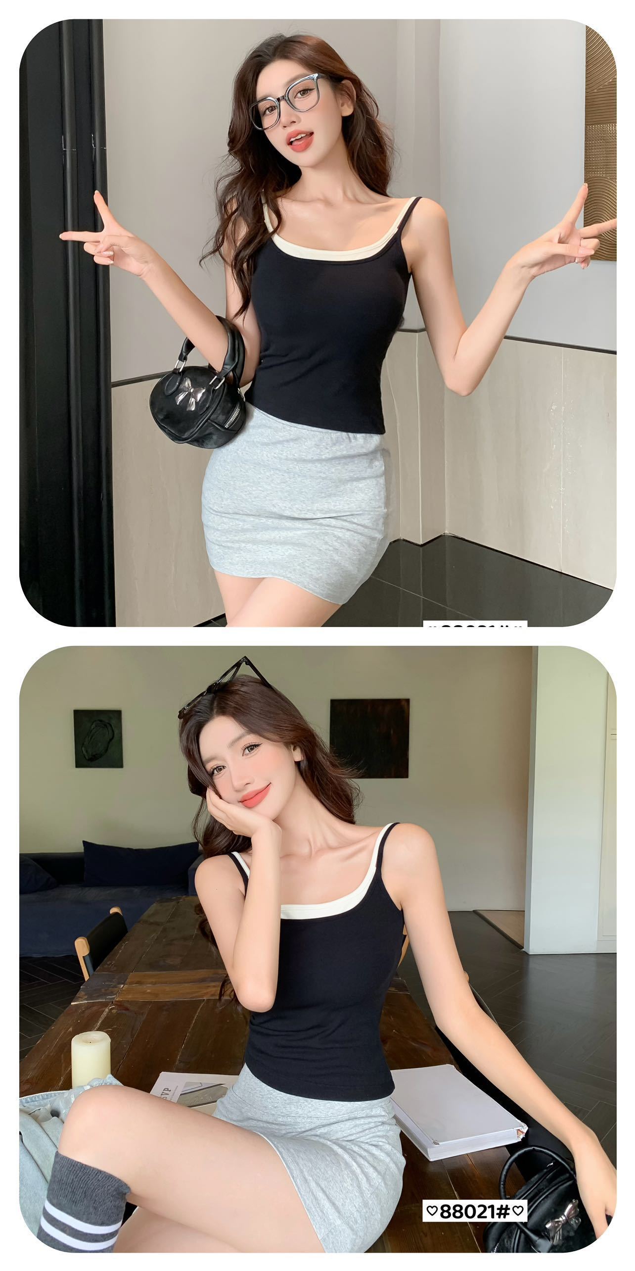 Elegante bandolera de dos piezas con doble tirante en contraste de color, con hermosa correa y almohadilla para el pecho, base adelgazante ajustada.