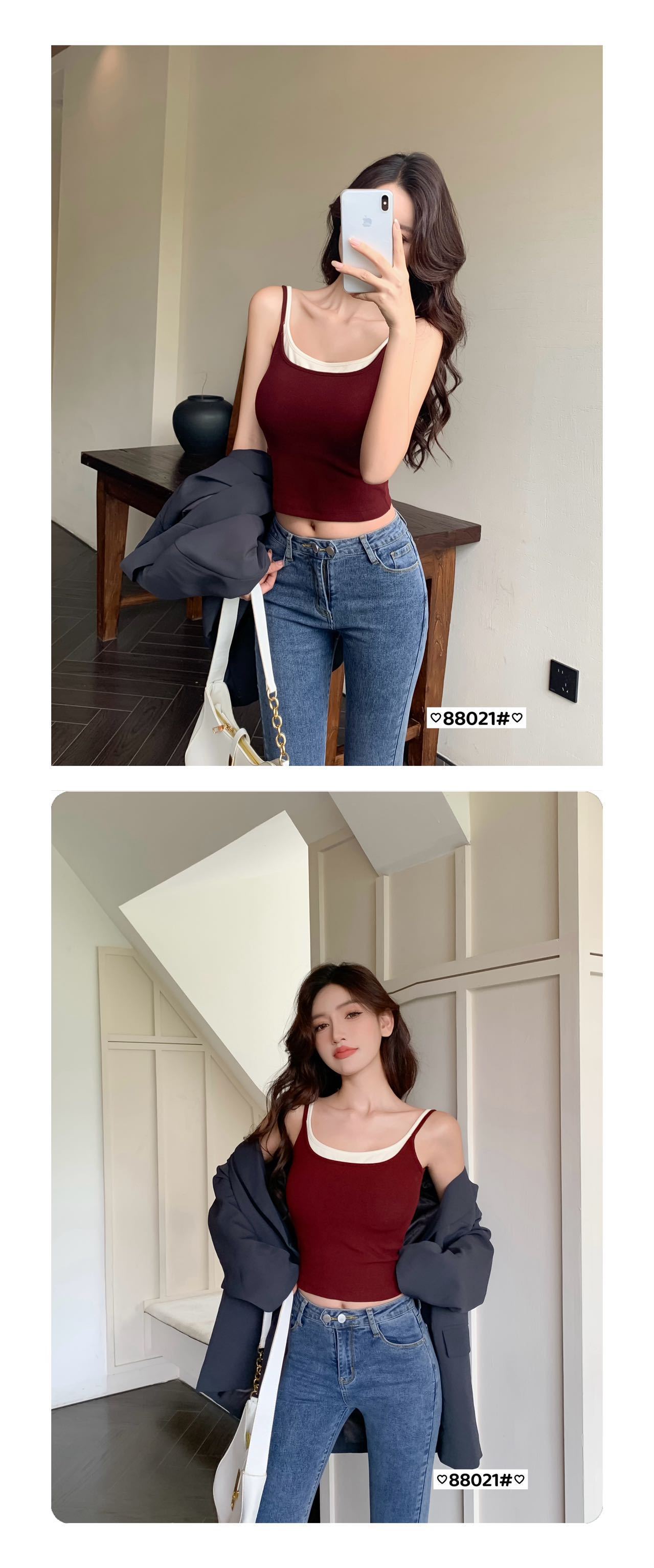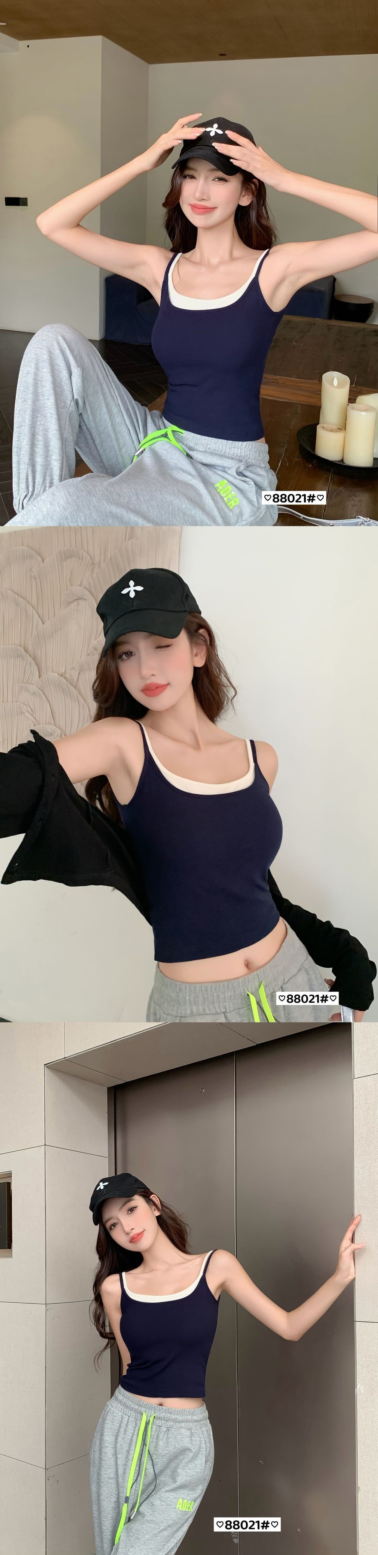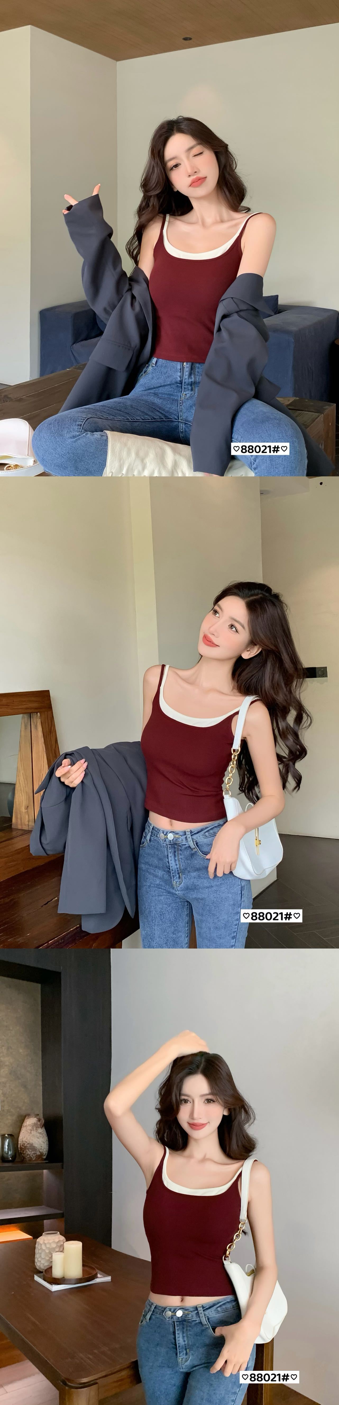 Elegante bandolera de dos piezas con doble tirante en contraste de color, con hermosa correa y almohadilla para el pecho, base adelgazante ajustada.