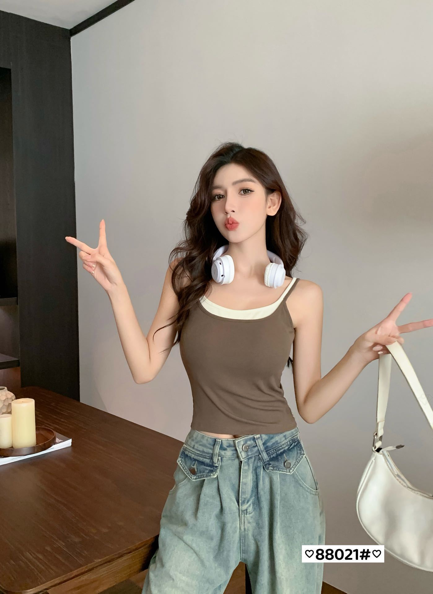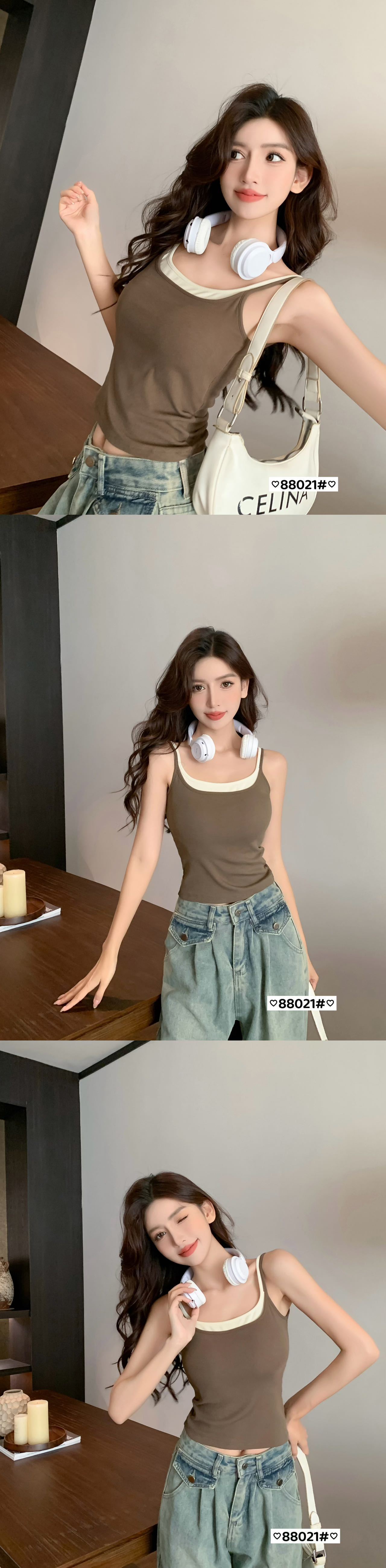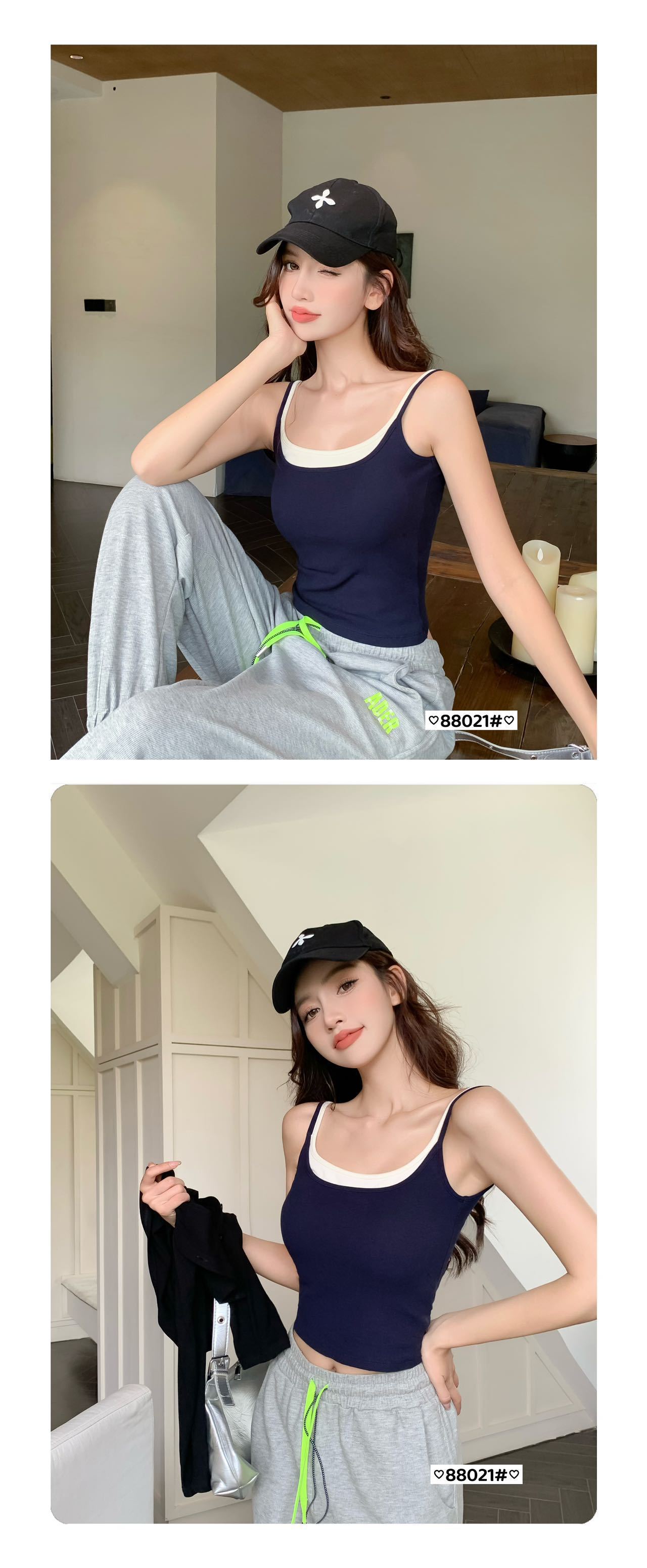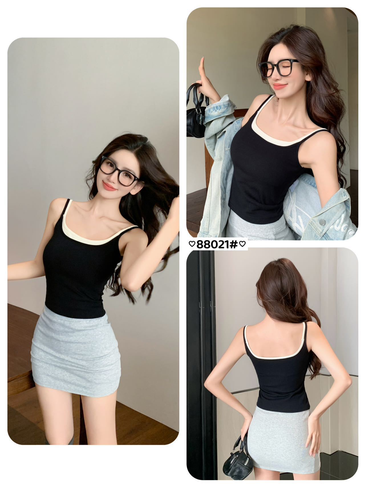 Elegante bandolera de dos piezas con doble tirante en contraste de color, con hermosa correa y almohadilla para el pecho, base adelgazante ajustada.