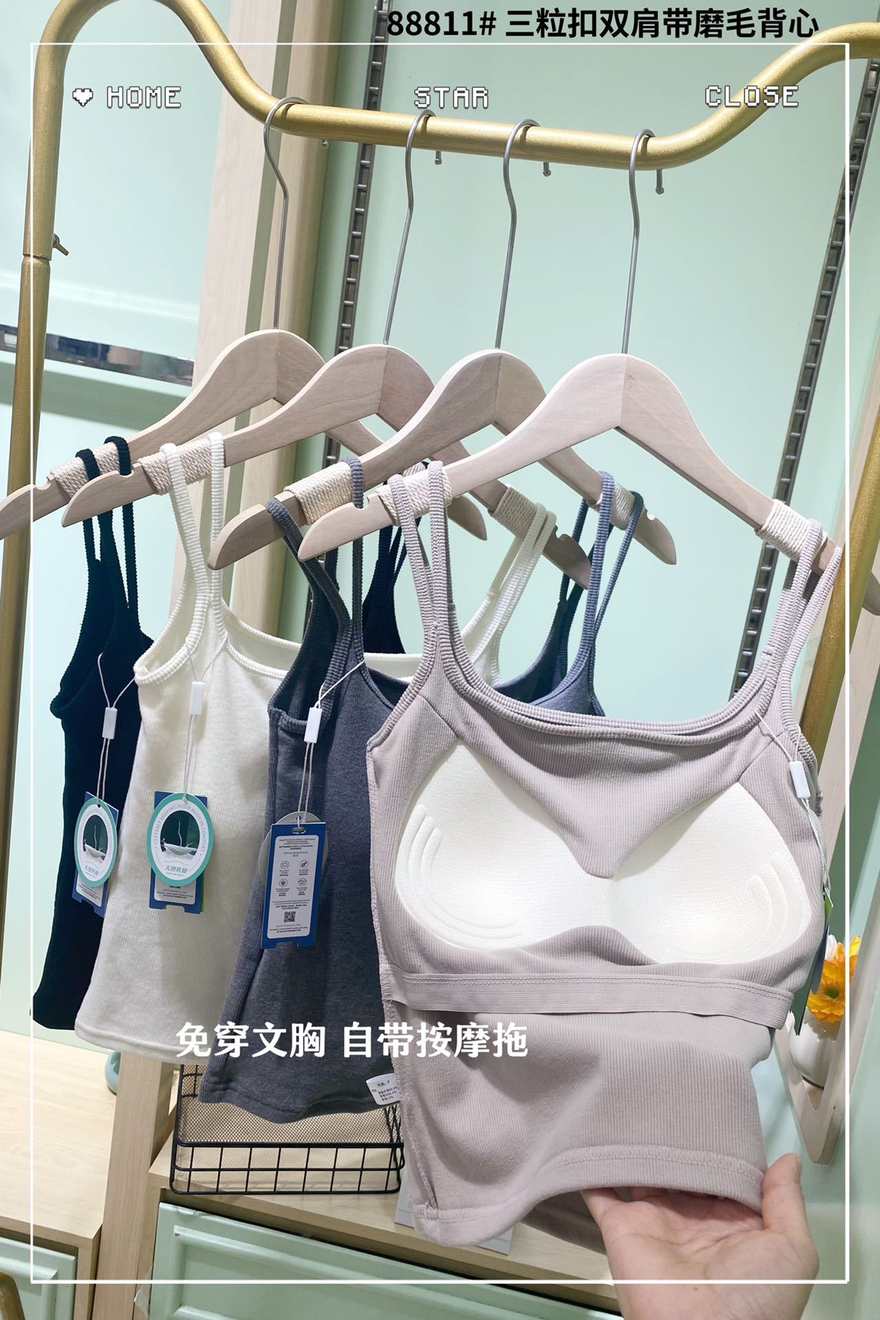 Chaleco Cálido Abrasivo de Cuello Cuadrado Otoño e Invierno Hermoso Tirante Almohadilla de Pecho Copa de una Pieza Ropa Interior Cómoda Versátil Top Básico para Mujer