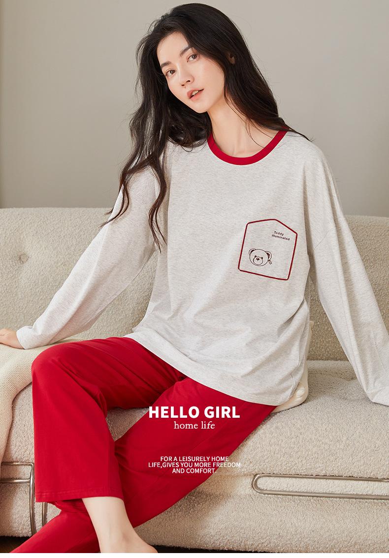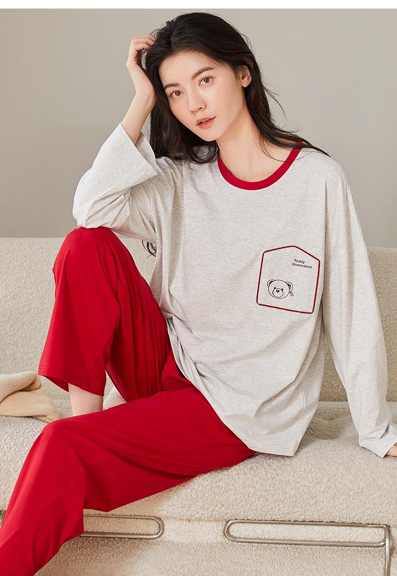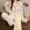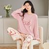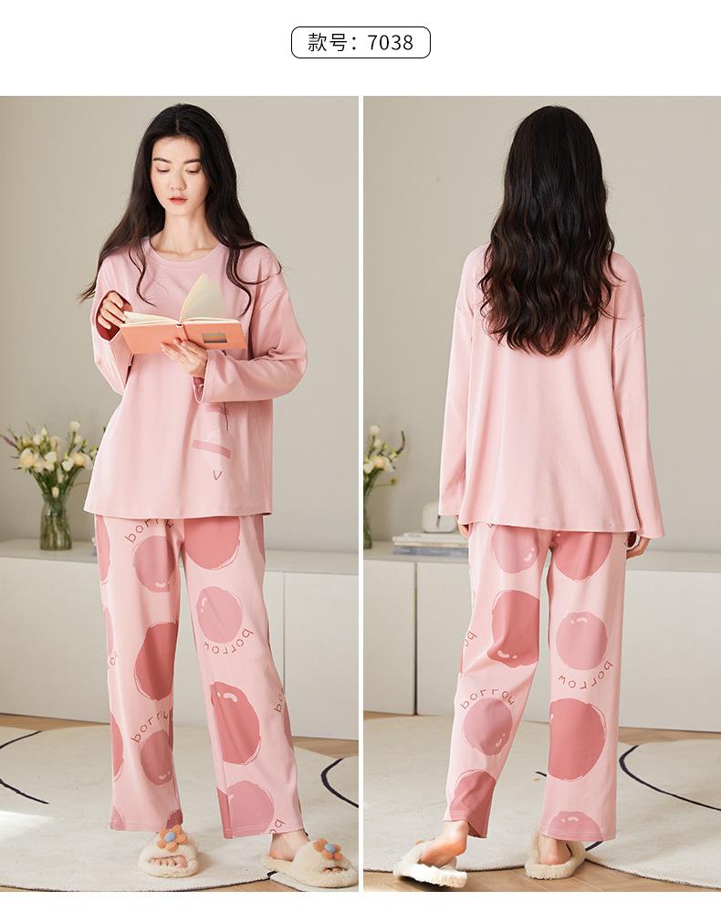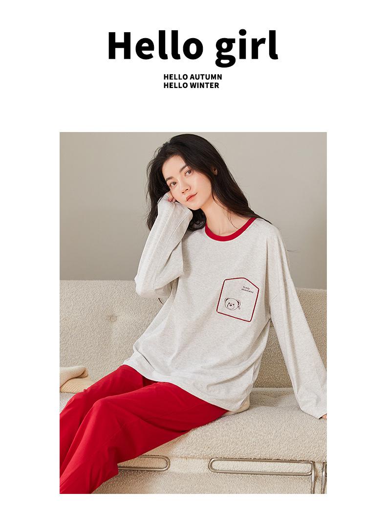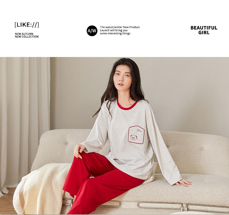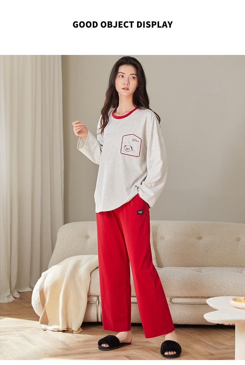 Pijama de Otoño para Mujer de Cuello Redondo Fresco, Lindo Conjunto de Manga Larga Holgado de Talla Grande, Ropa para el Hogar, Traje Sencillo