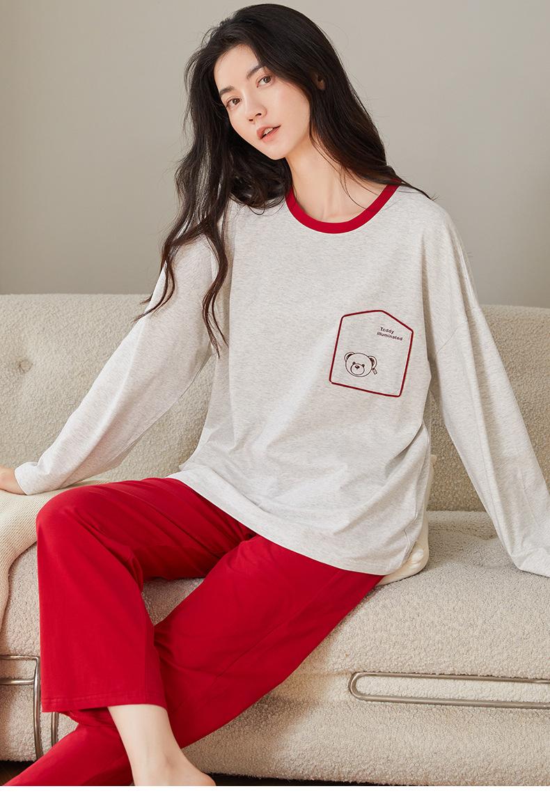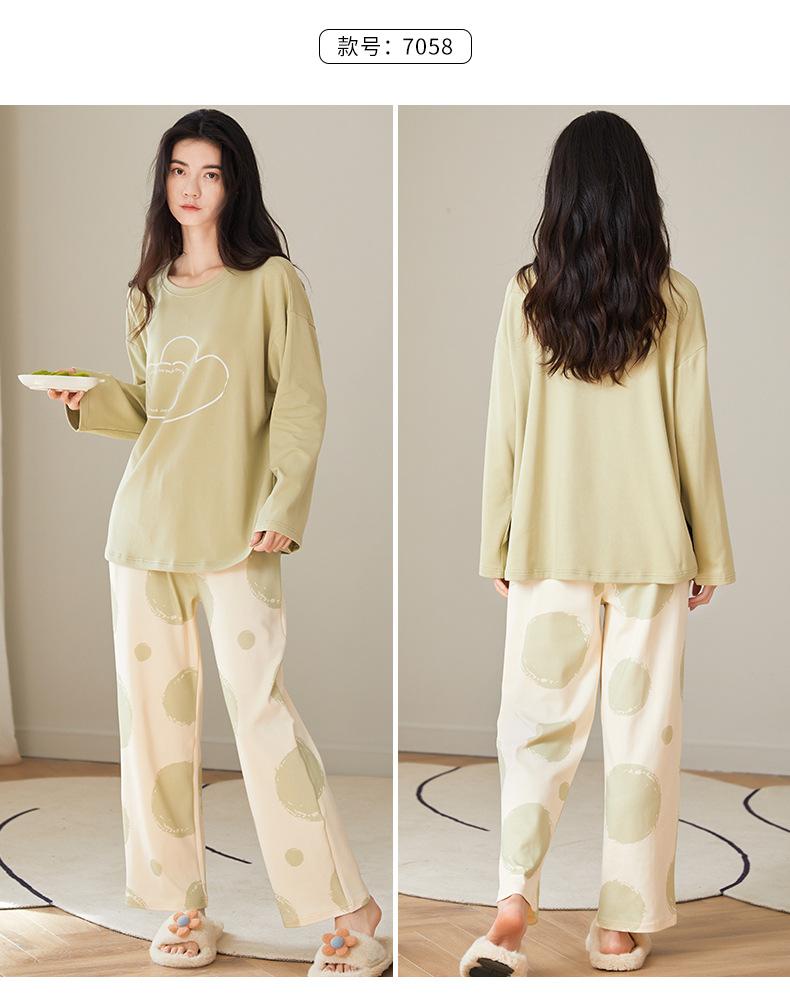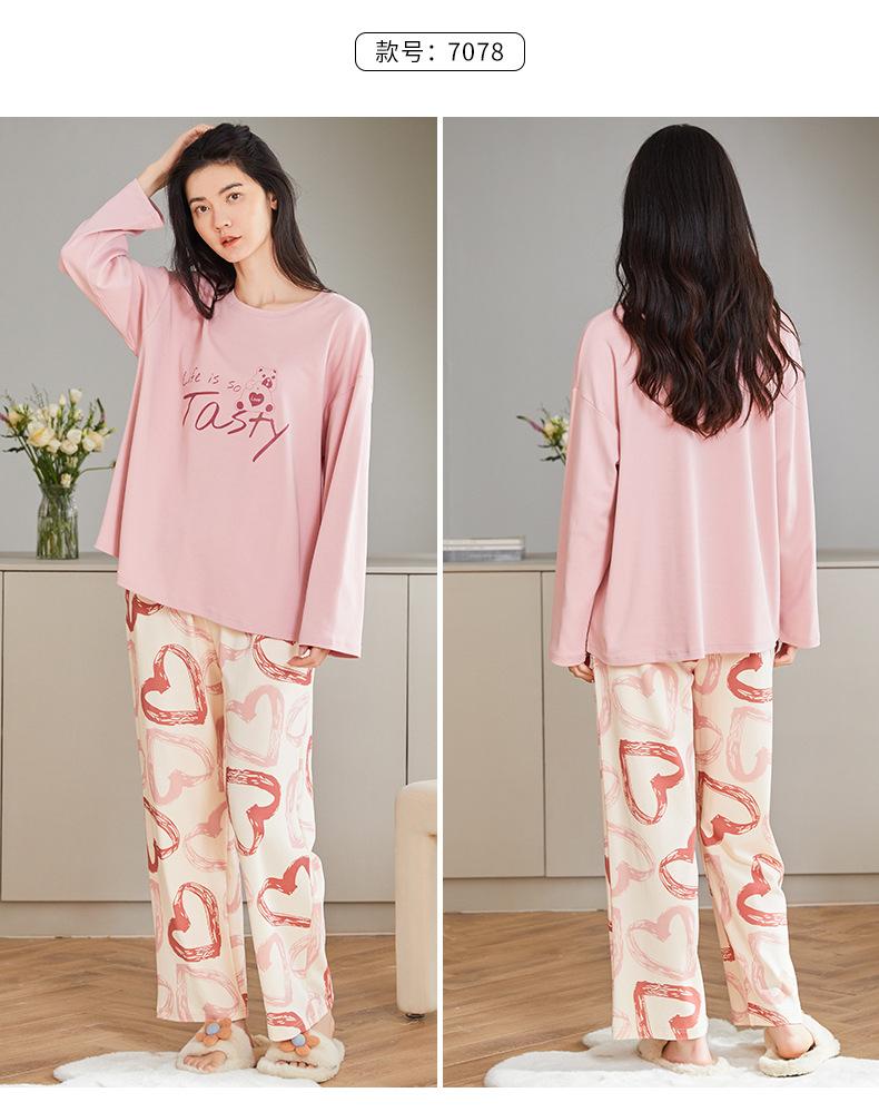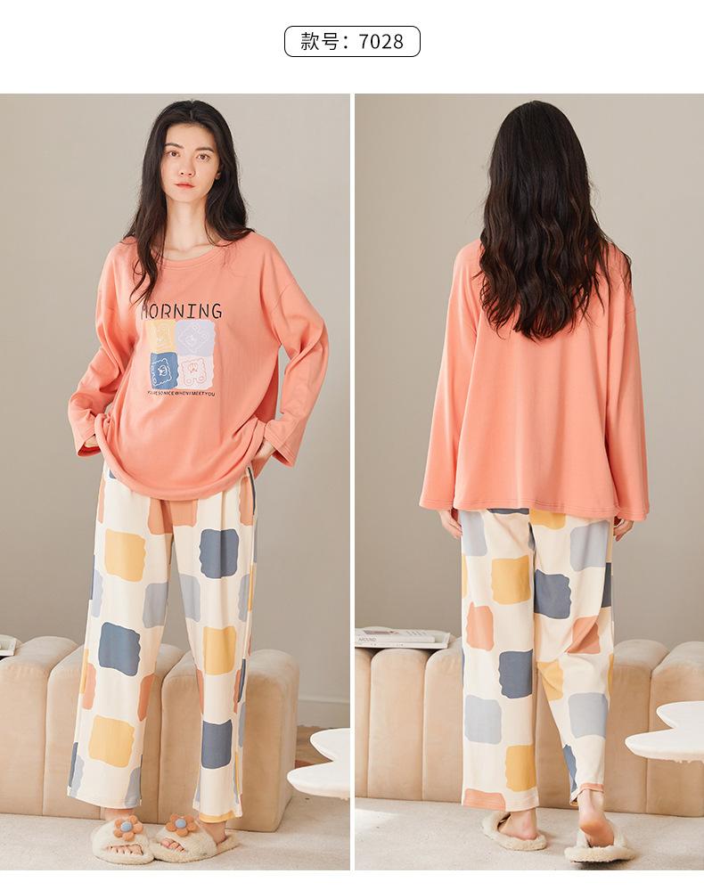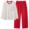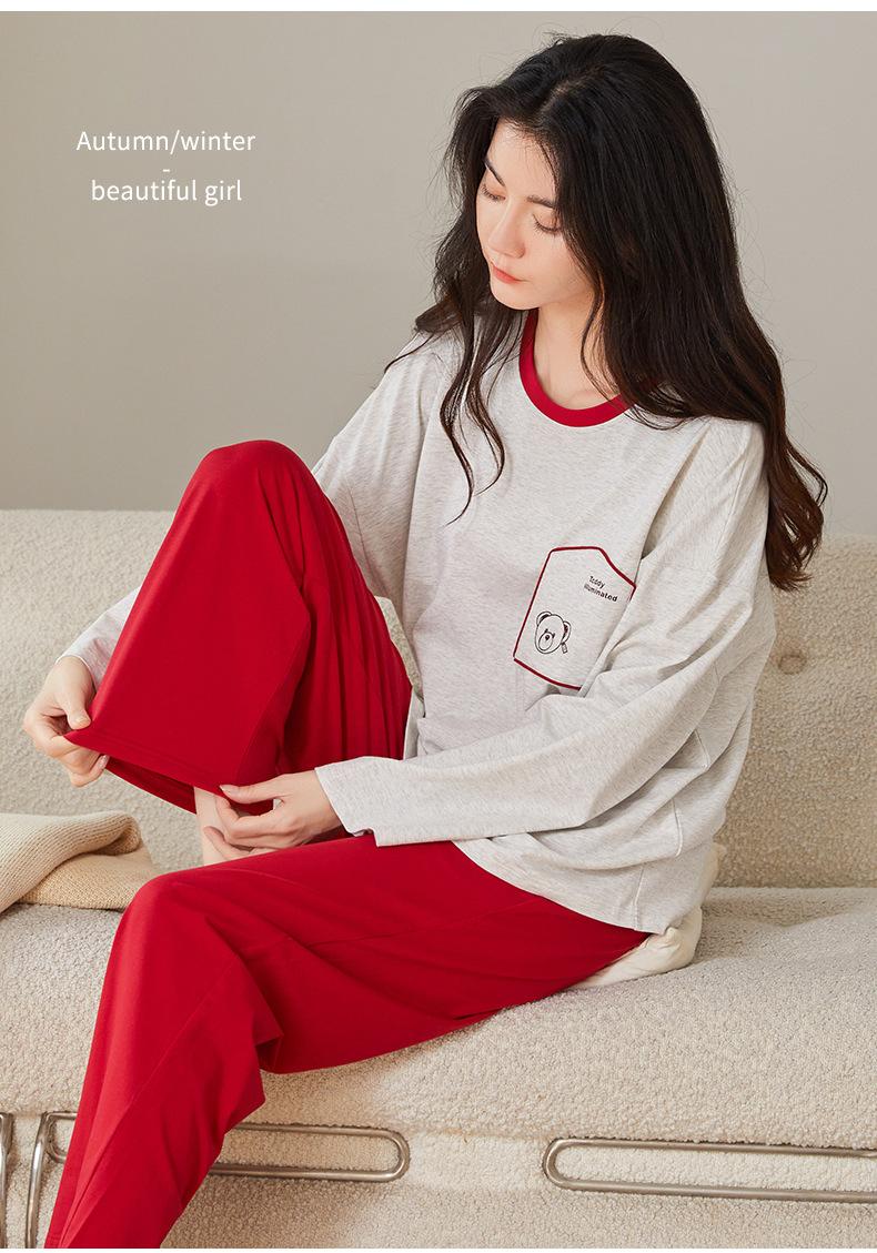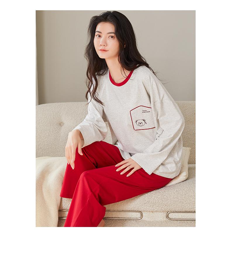 Pijama de Otoño para Mujer de Cuello Redondo Fresco, Lindo Conjunto de Manga Larga Holgado de Talla Grande, Ropa para el Hogar, Traje Sencillo