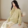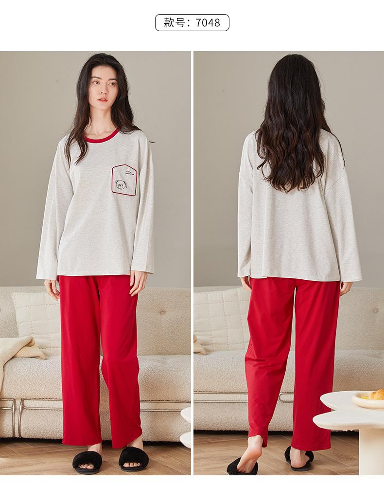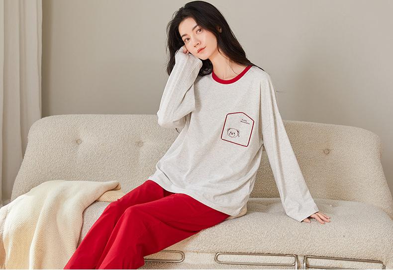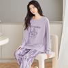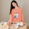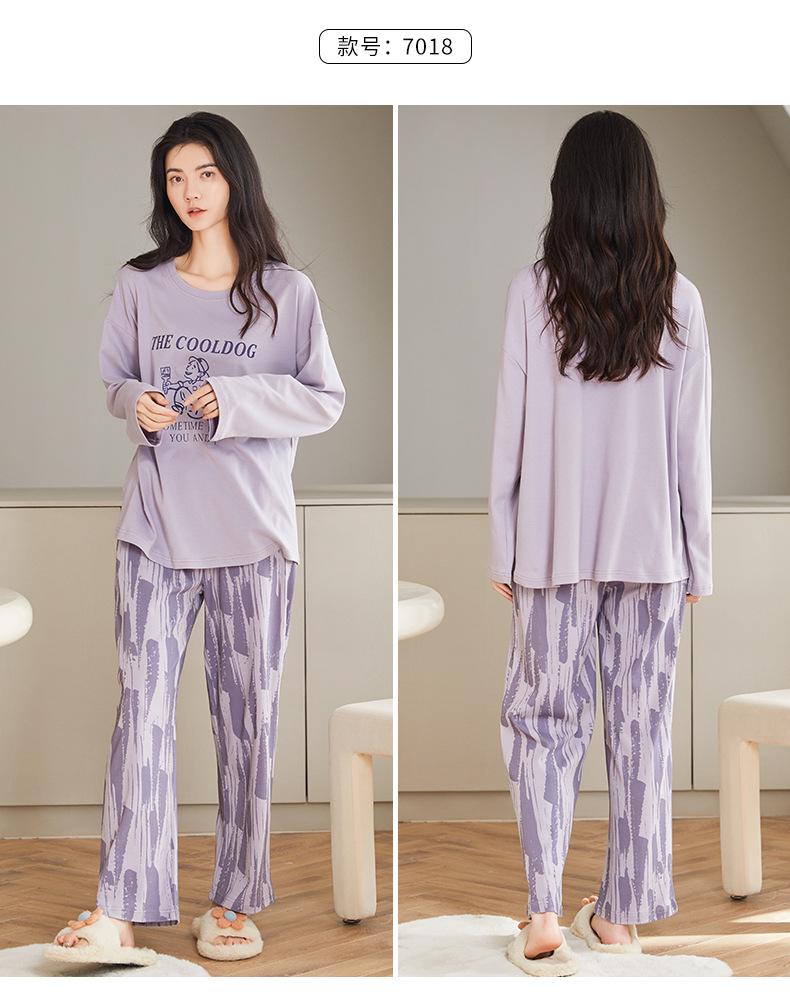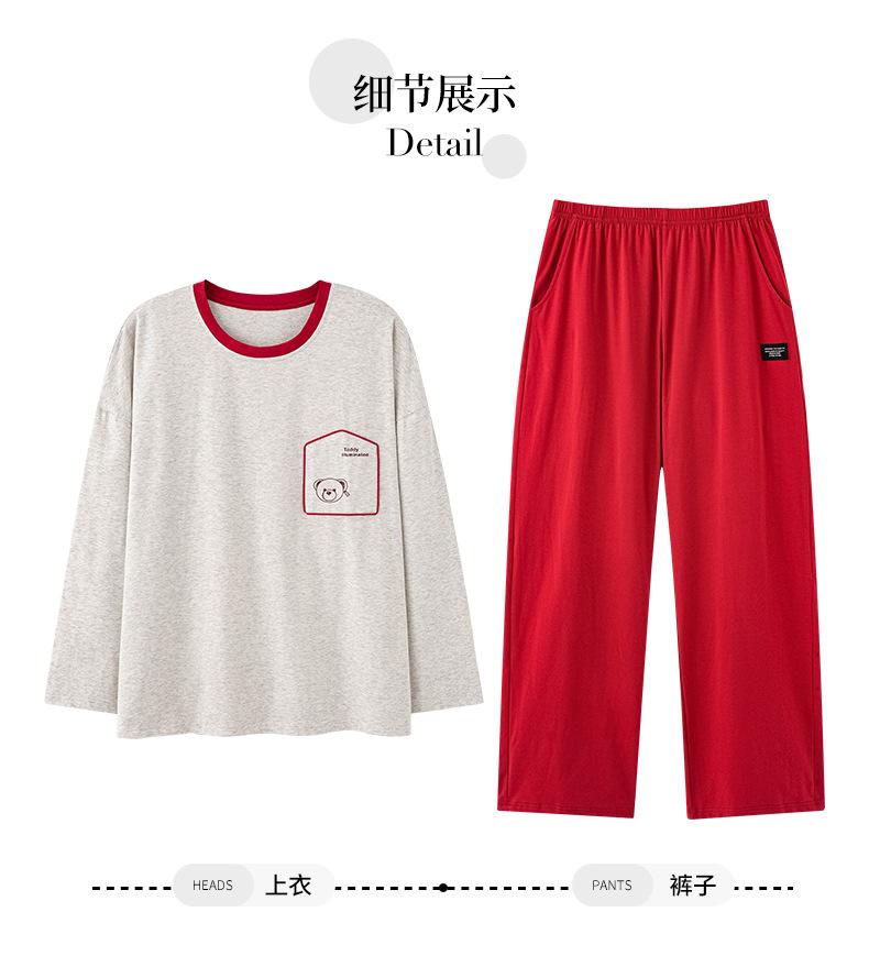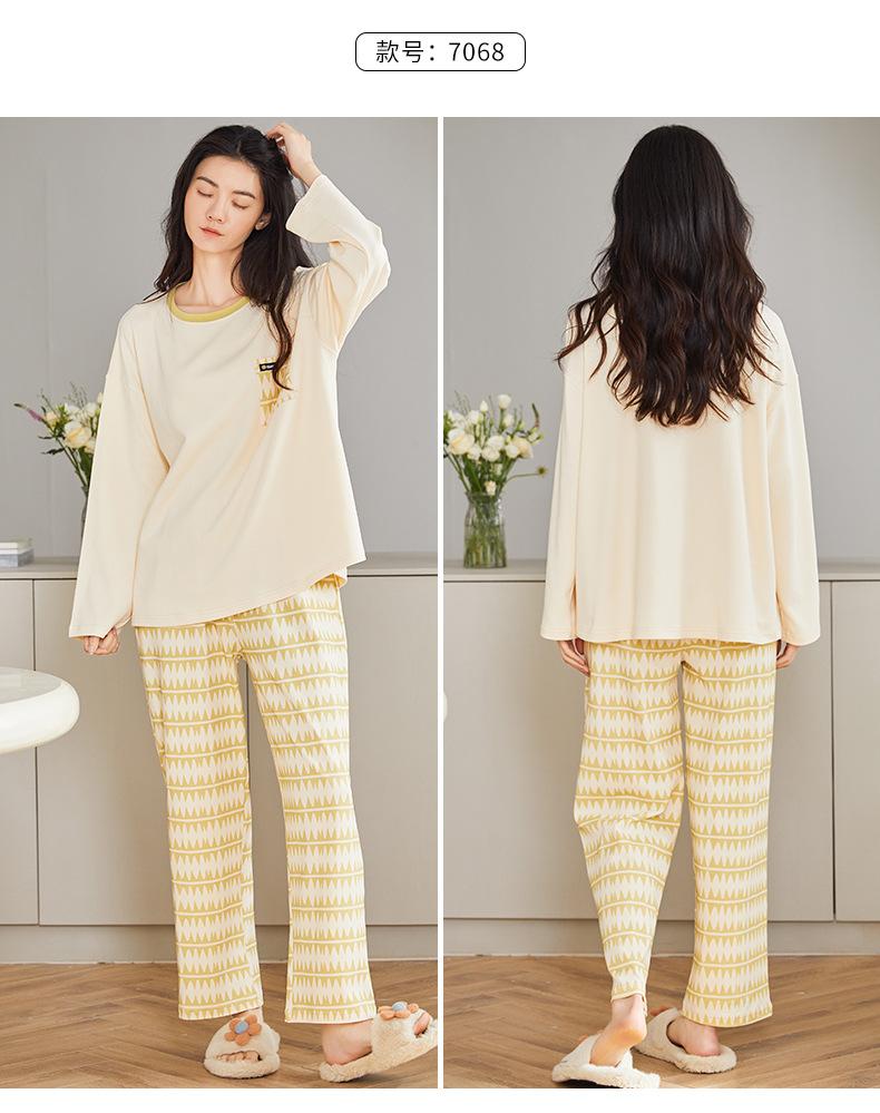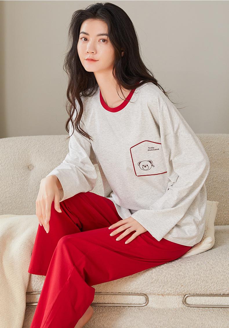 Pijama de Otoño para Mujer de Cuello Redondo Fresco, Lindo Conjunto de Manga Larga Holgado de Talla Grande, Ropa para el Hogar, Traje Sencillo