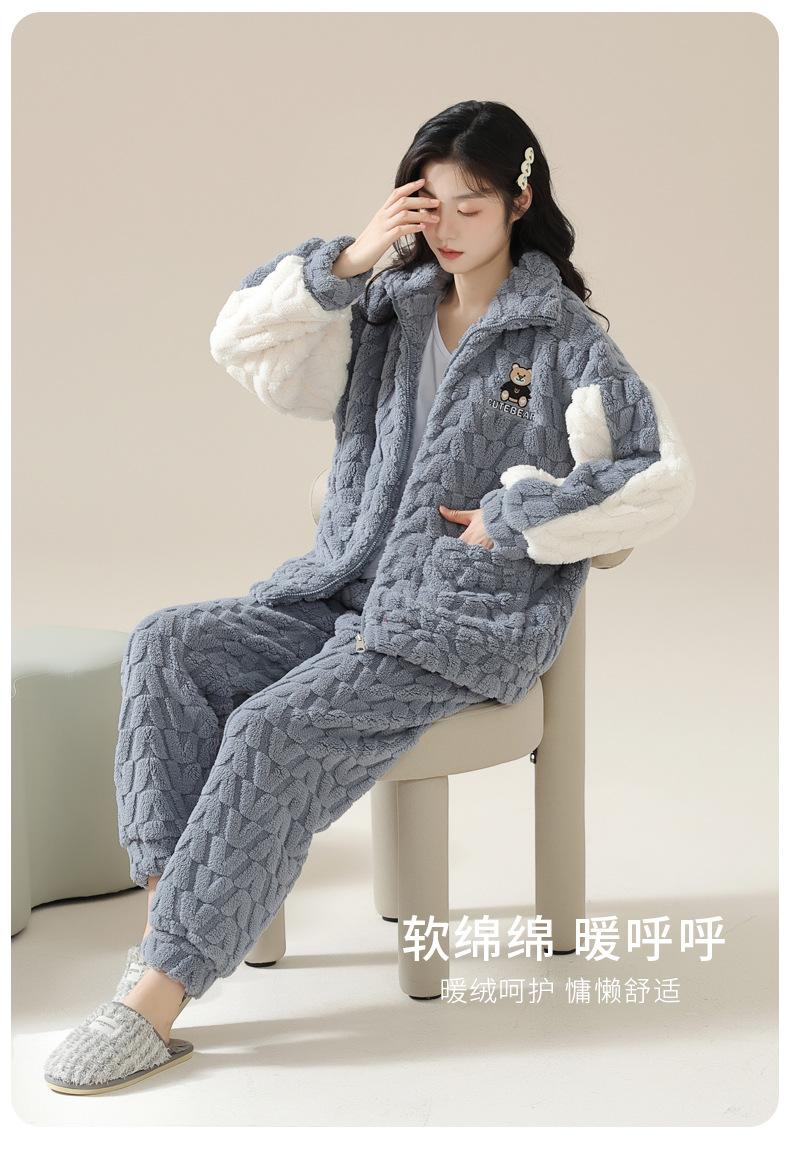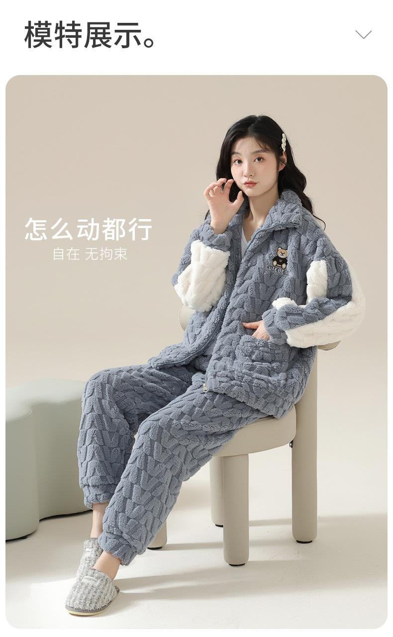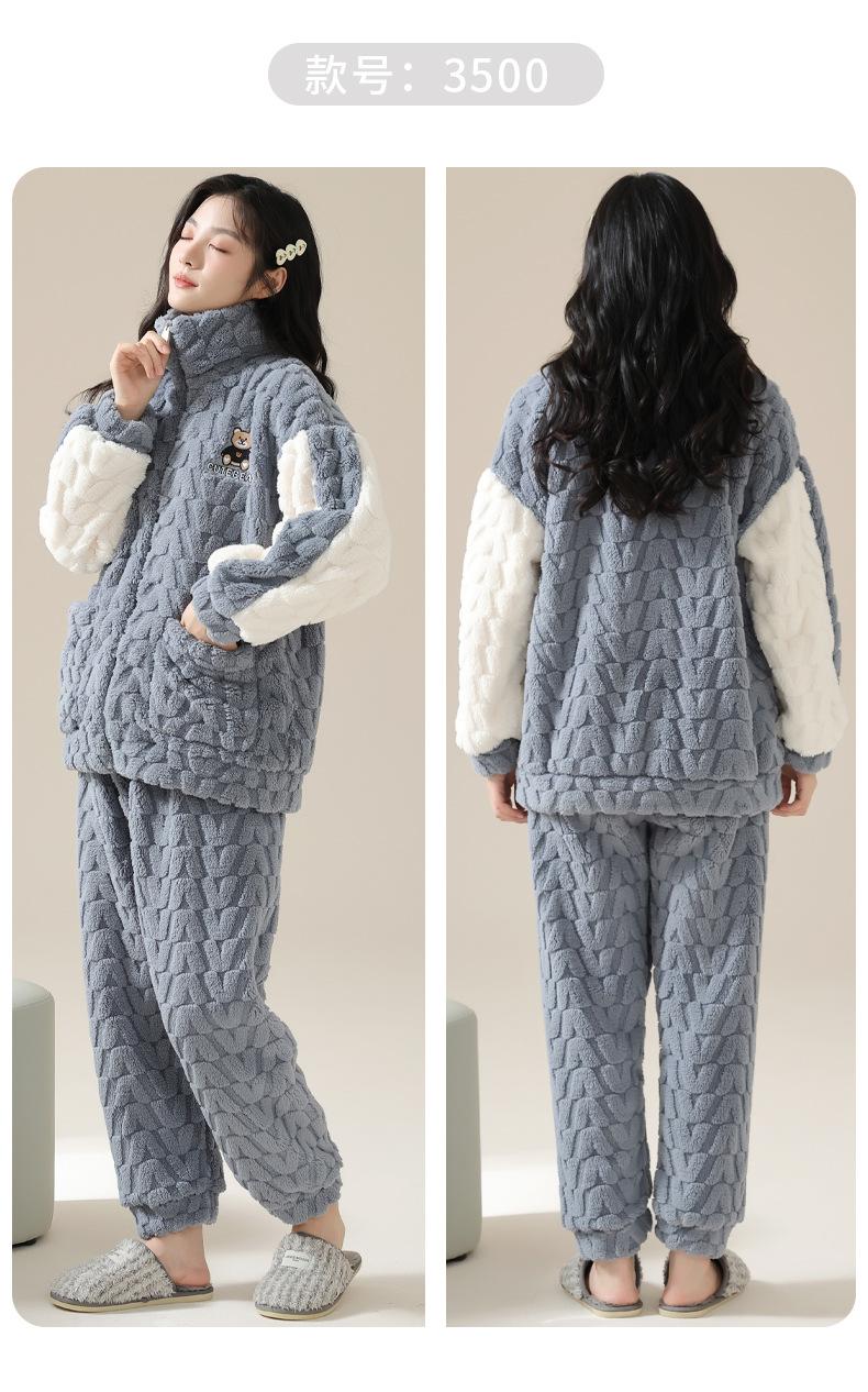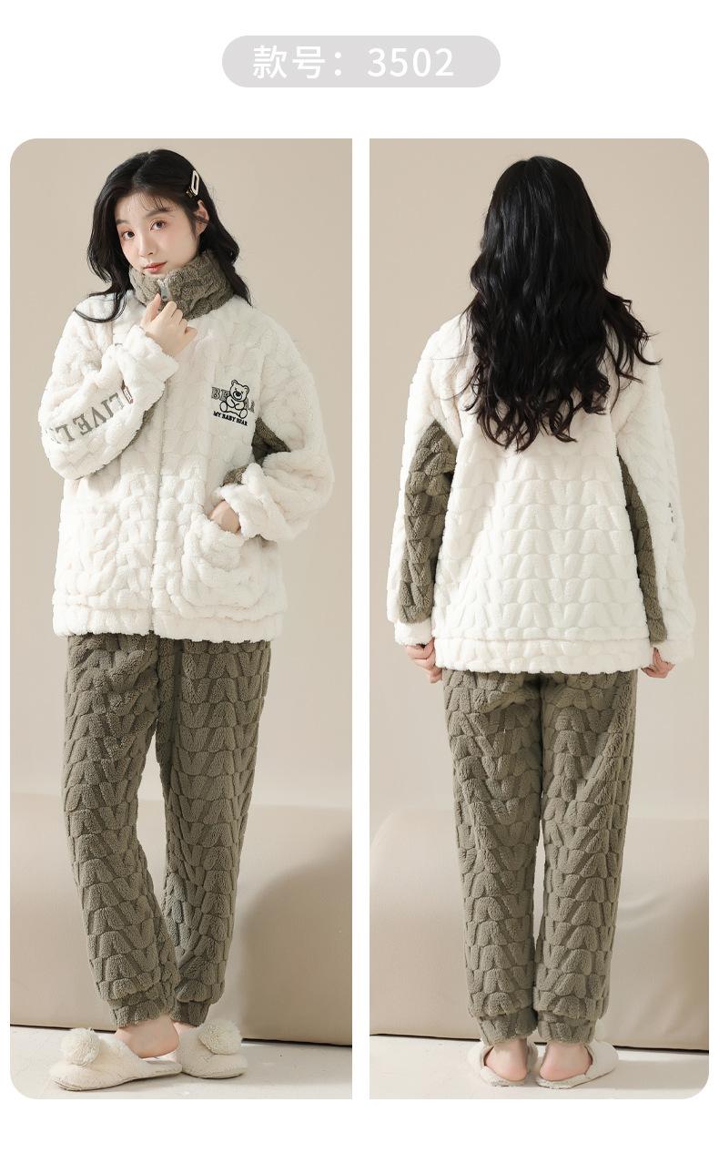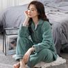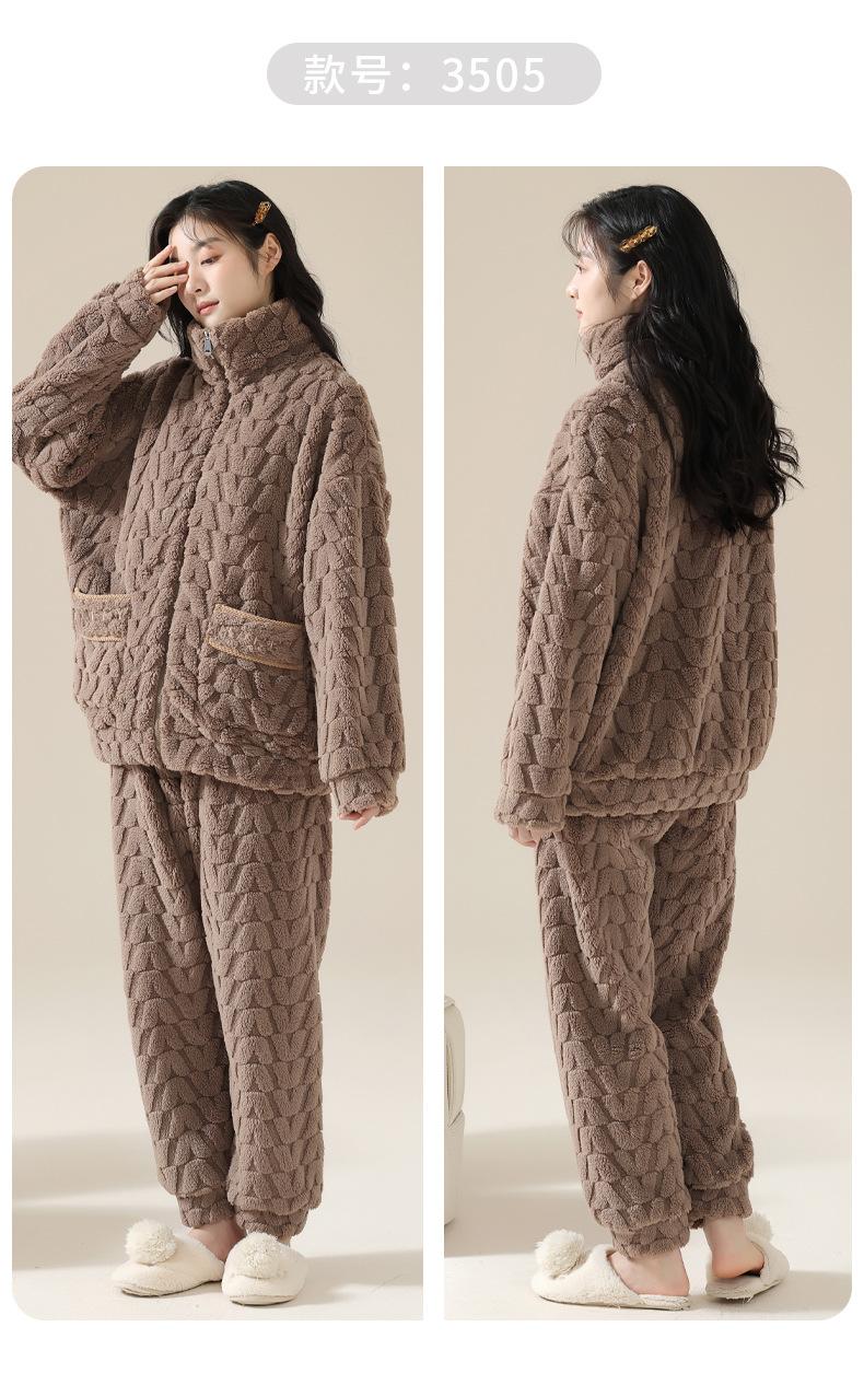 Pijama de terciopelo jacquard de invierno para mujer, cárdigan con cuello alto, talla grande, cálido, se puede usar al aire libre, estilo simple, ropa para el hogar, traje dulce