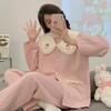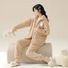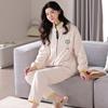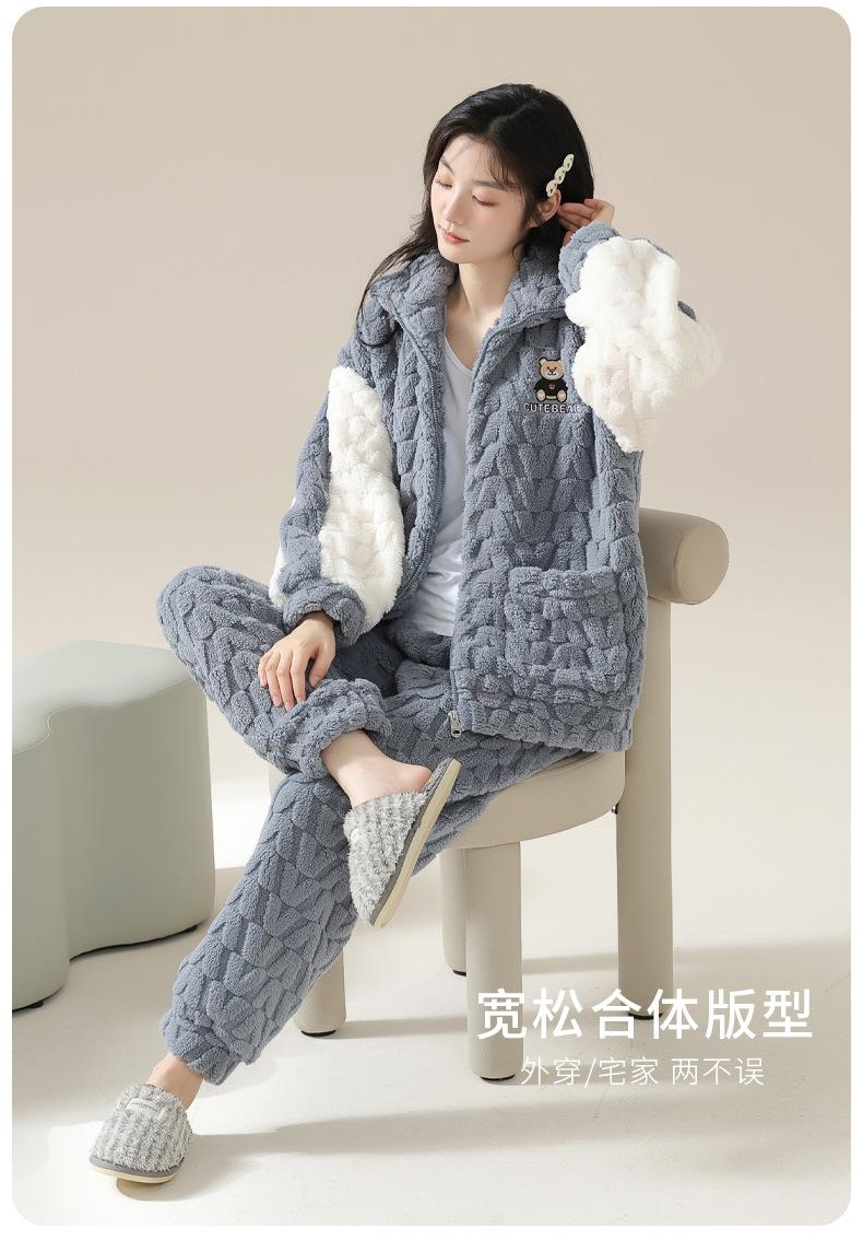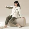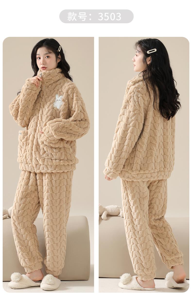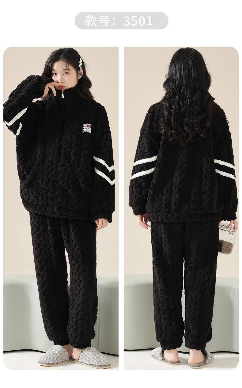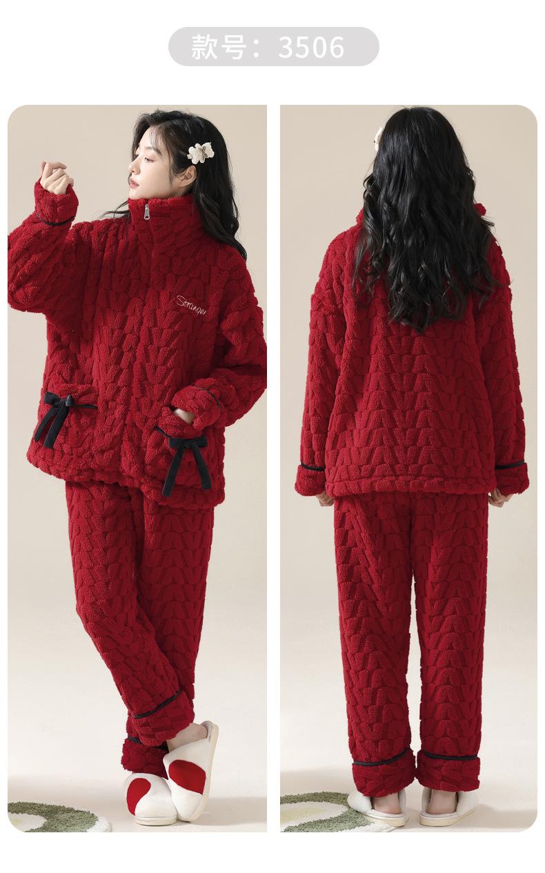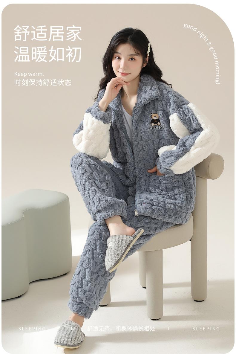 Pijama de terciopelo jacquard de invierno para mujer, cárdigan con cuello alto, talla grande, cálido, se puede usar al aire libre, estilo simple, ropa para el hogar, traje dulce