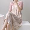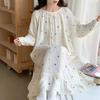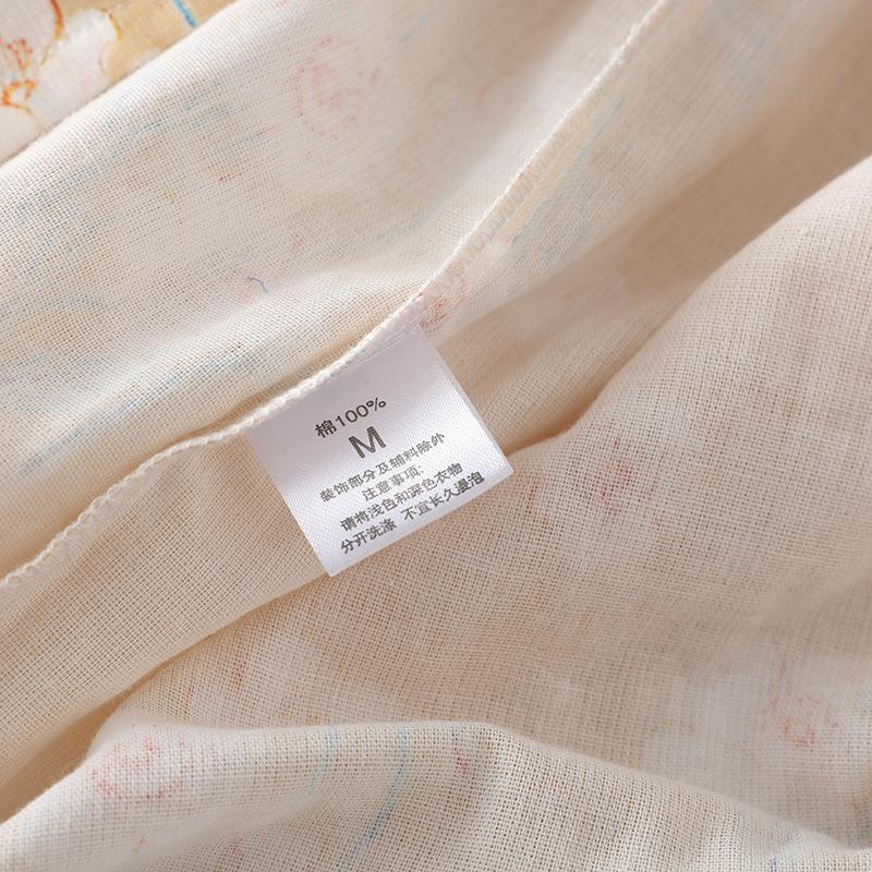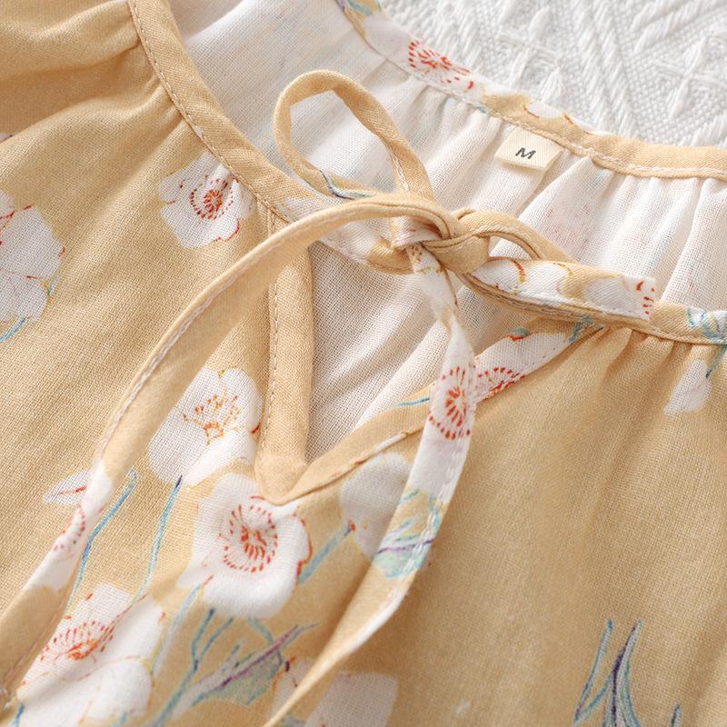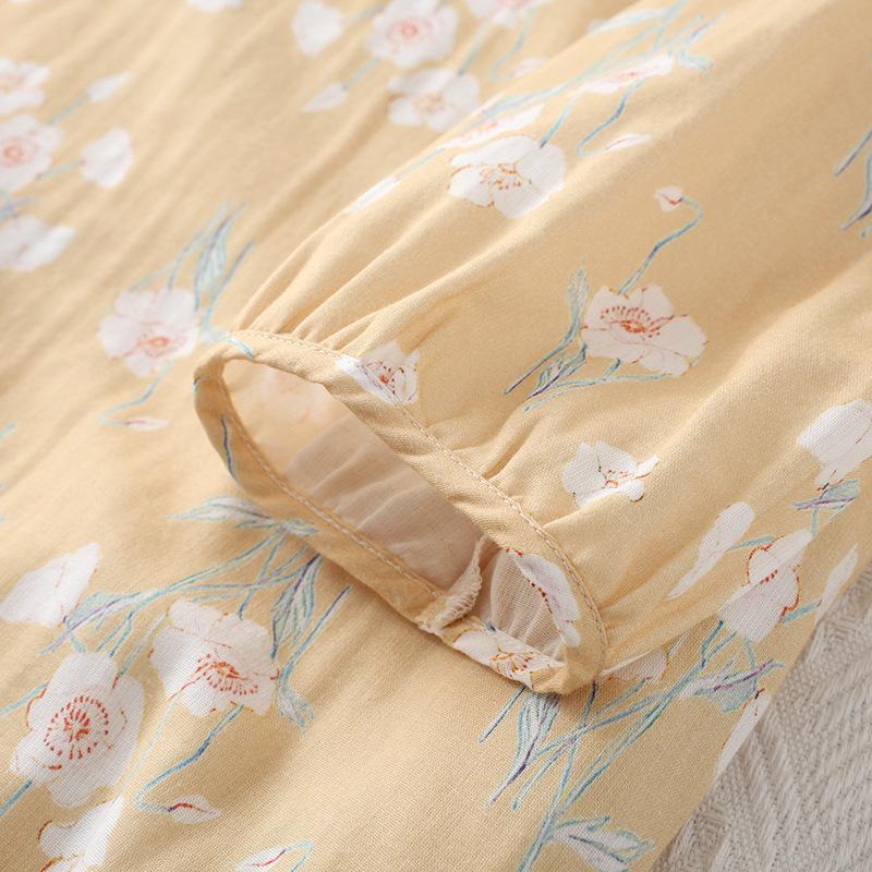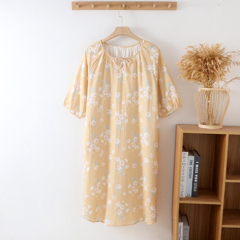 Camisón de Verano Fino de Algodón Puro Francés para Mujer Gasa de Doble Capa Manga Tres Cuartos Pijama Se Puede Usar Afuera Talla Grande Holgado Falda para Casa