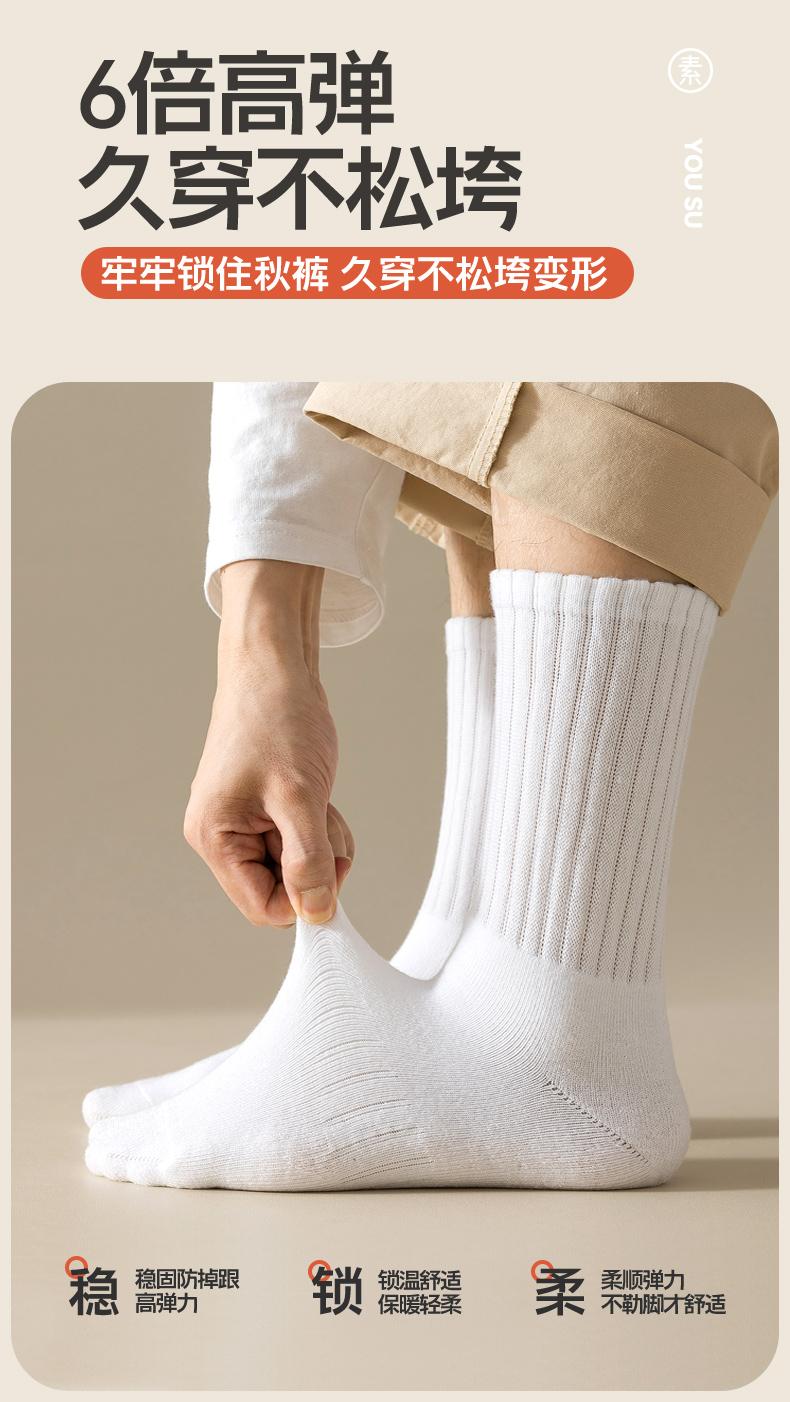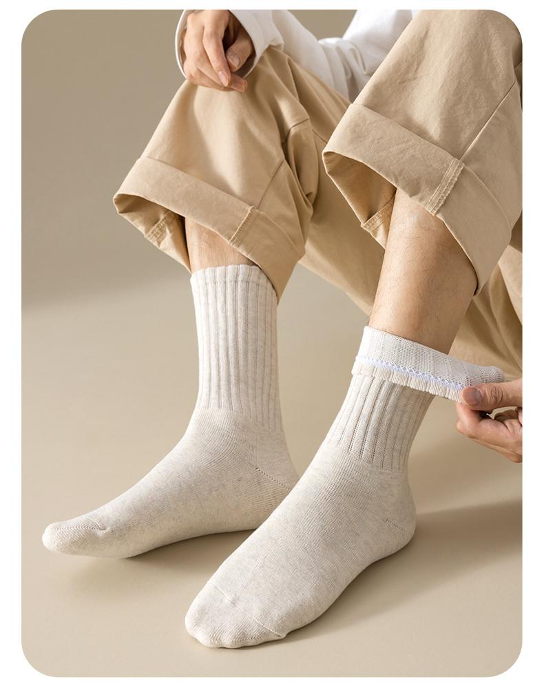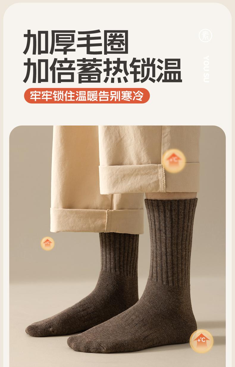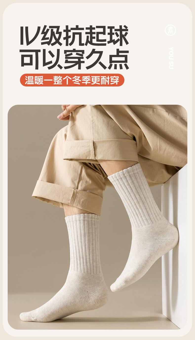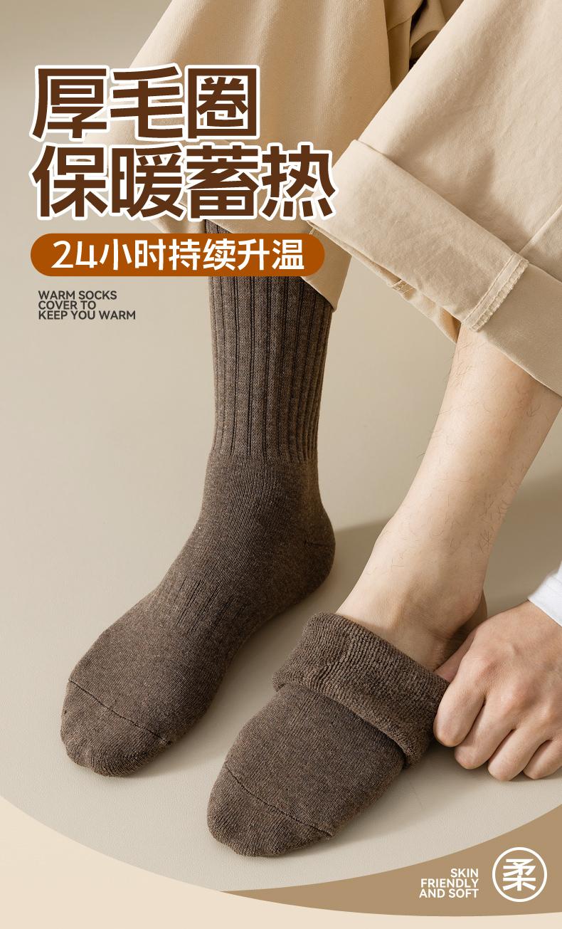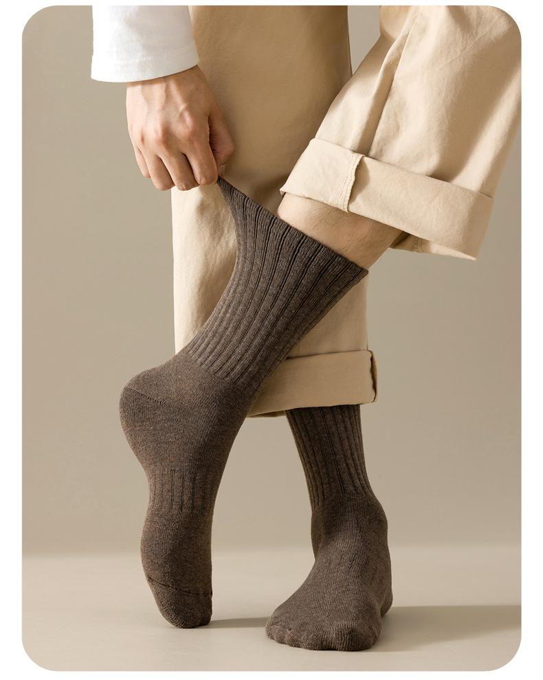 Calcetines de otoño e invierno para hombre, medias gruesas con forro polar, medias cálidas de invierno con parte inferior de toalla, calcetines de algodón de color liso de tubo medio para hombre