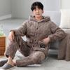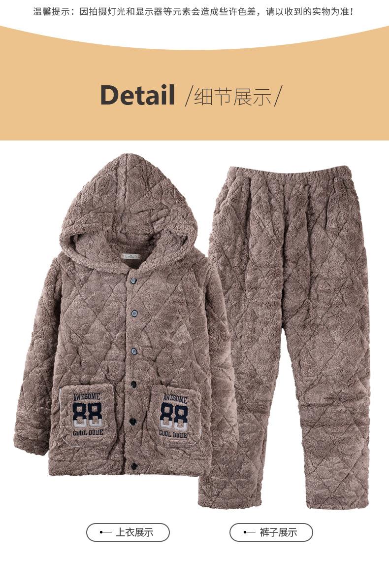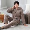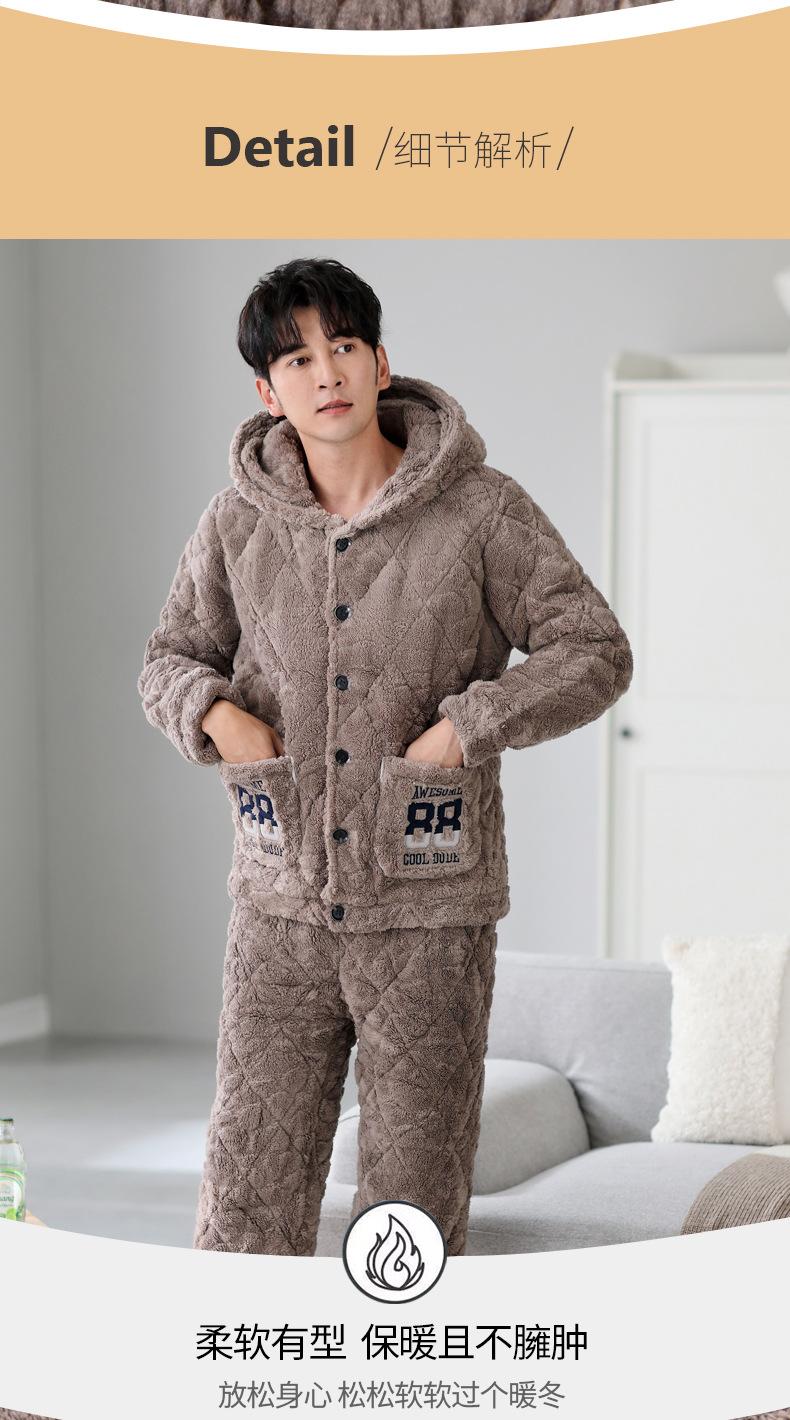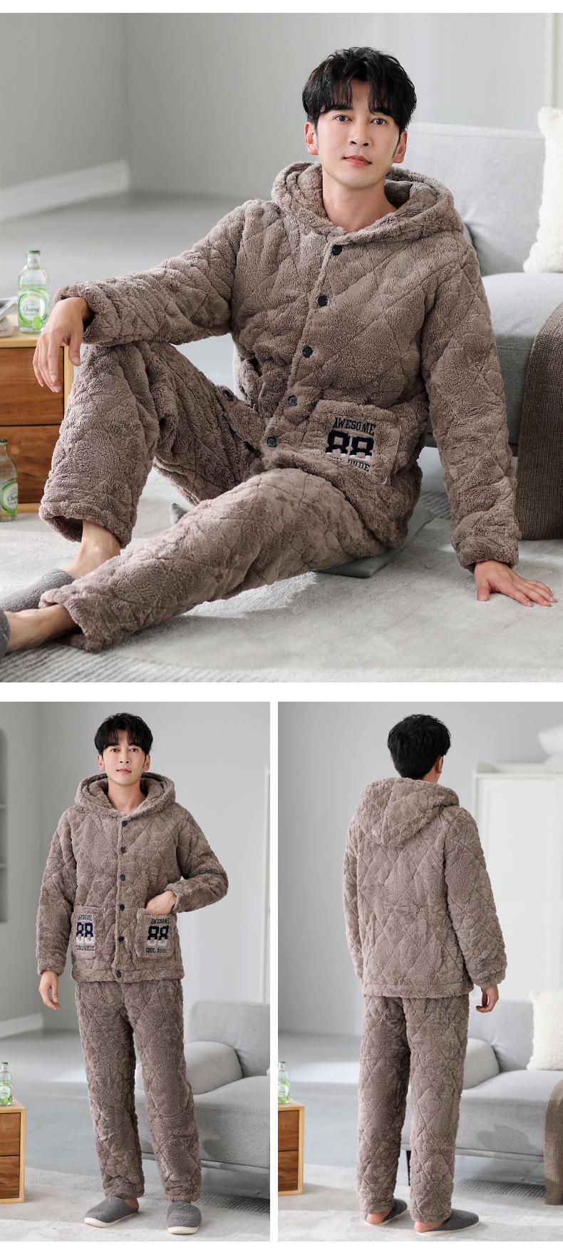 Pijamas de invierno nuevos en stock directos para hombre, ropa de casa de algodón con capucha gruesa cálida y cómoda que se puede usar al aire libre