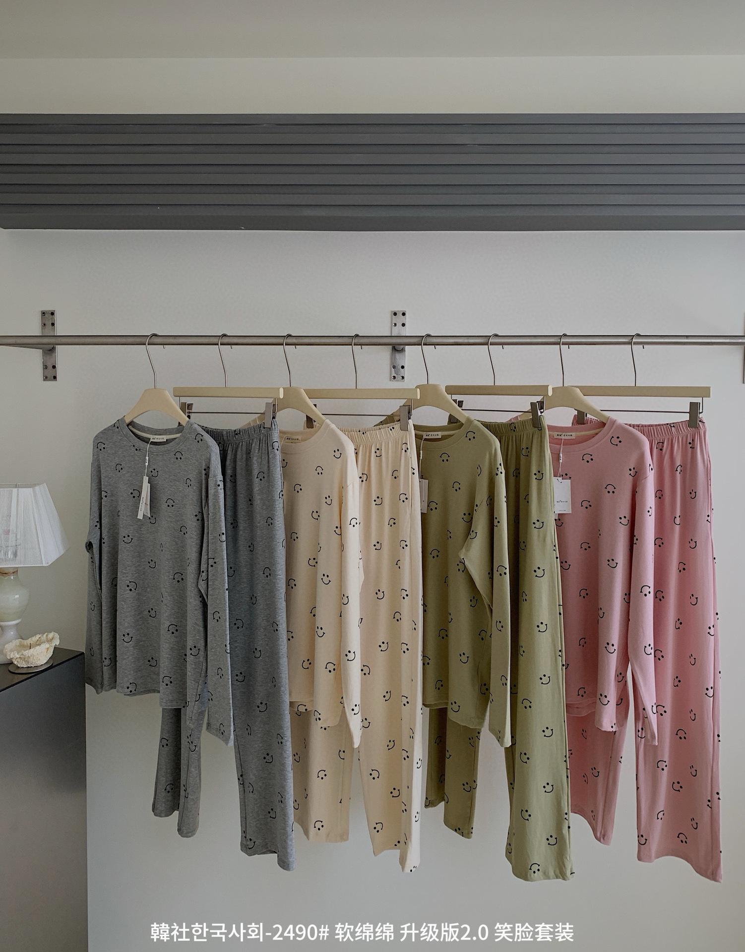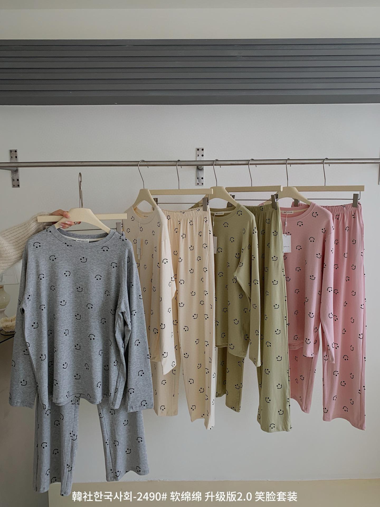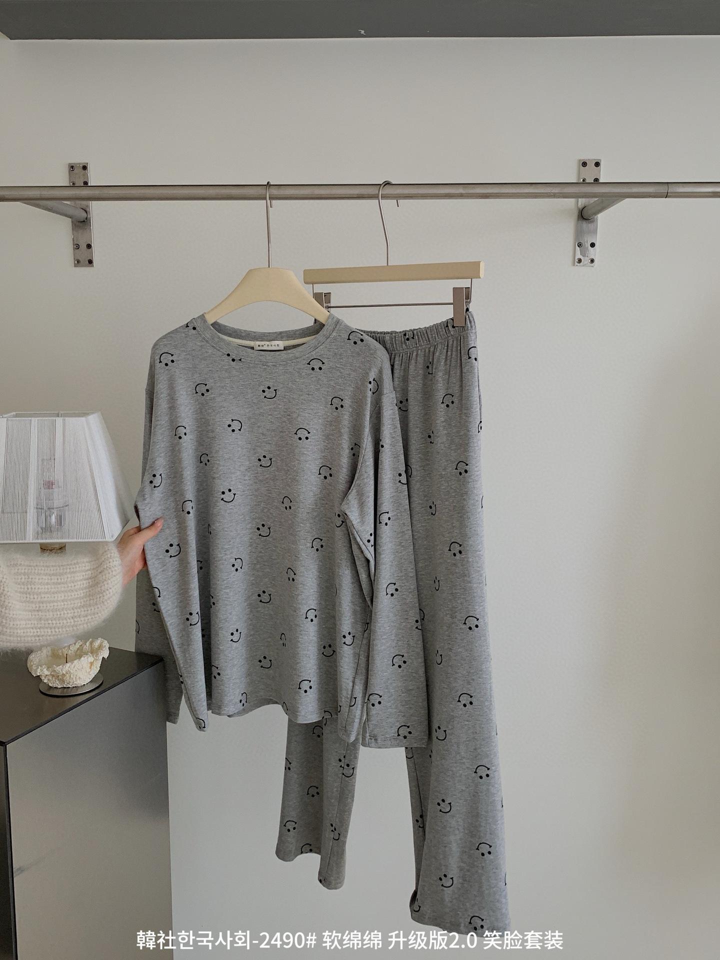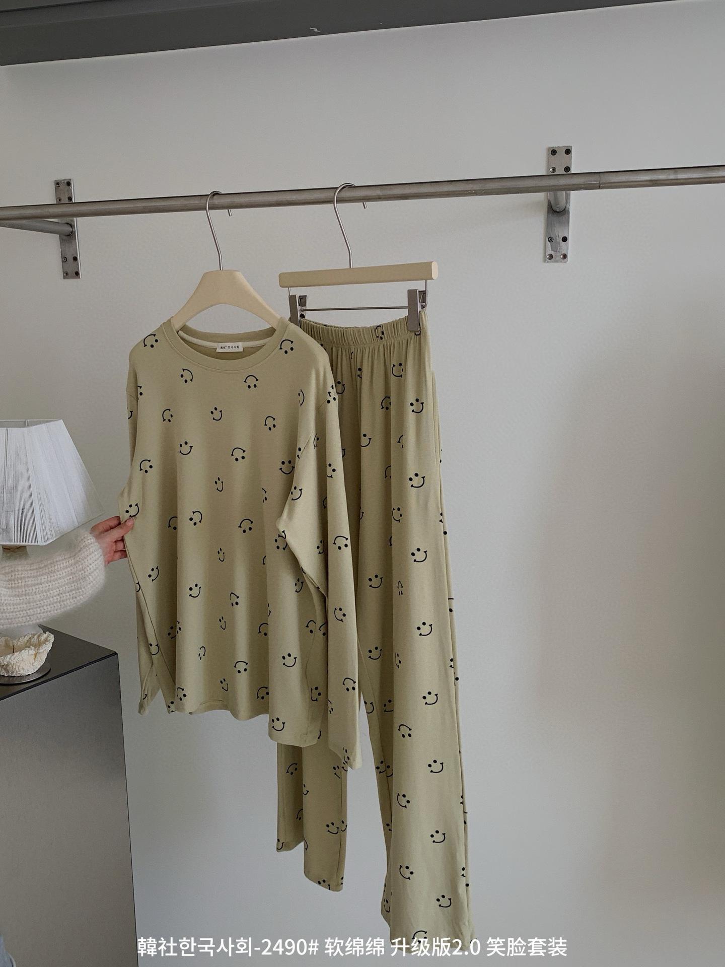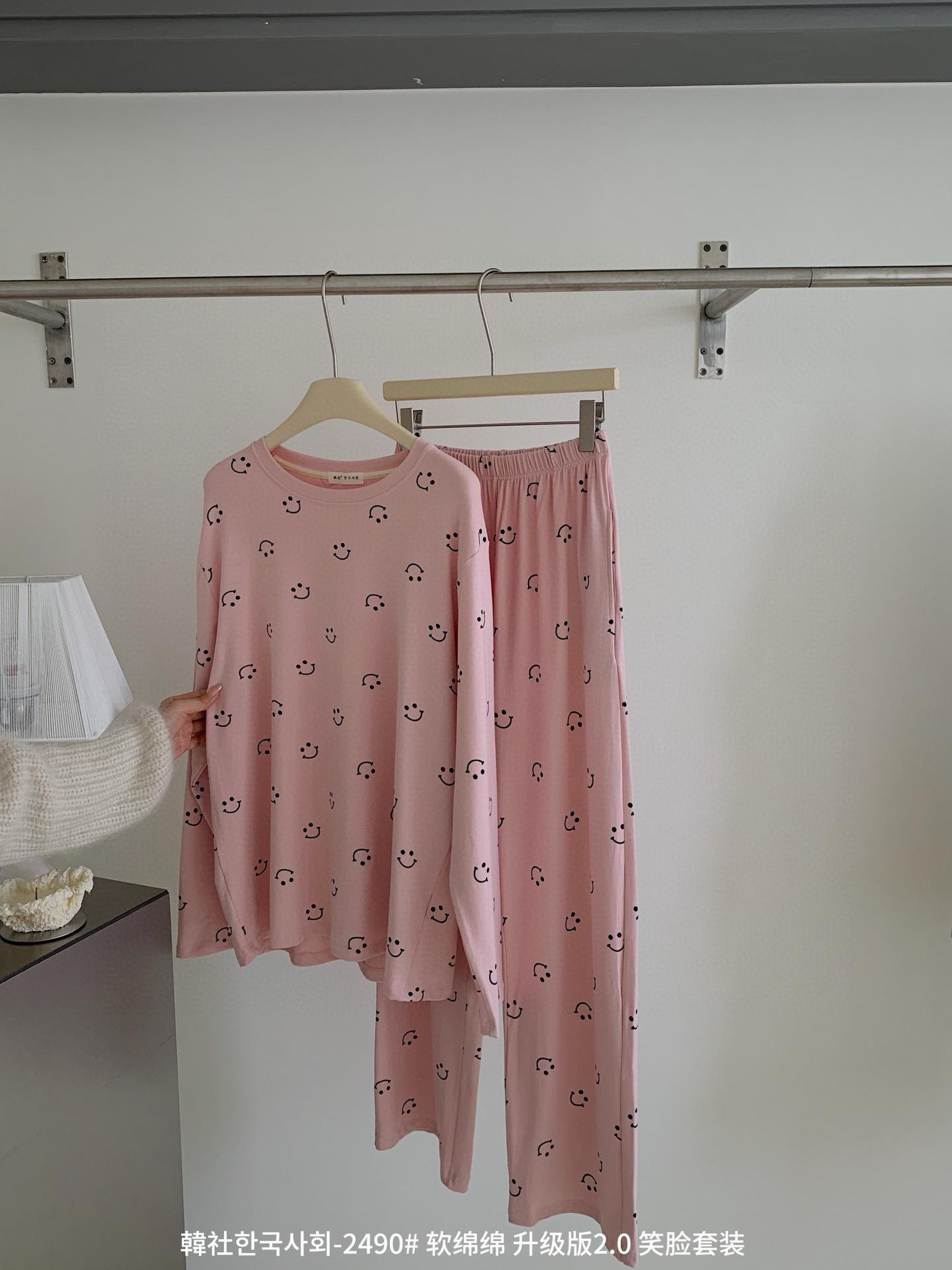 Han she 2490# suave otoño nuevo 2.0 traje de cara sonriente moda simple ropa de hogar perezosa pijamas de señoras