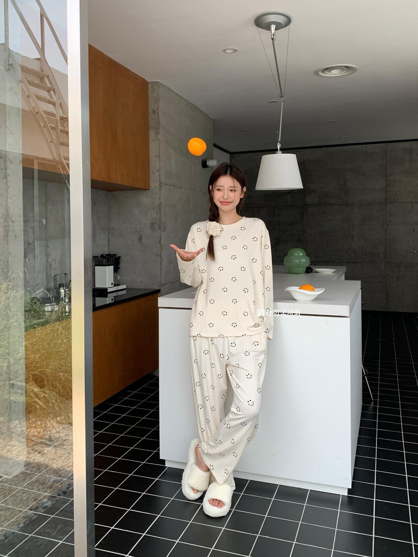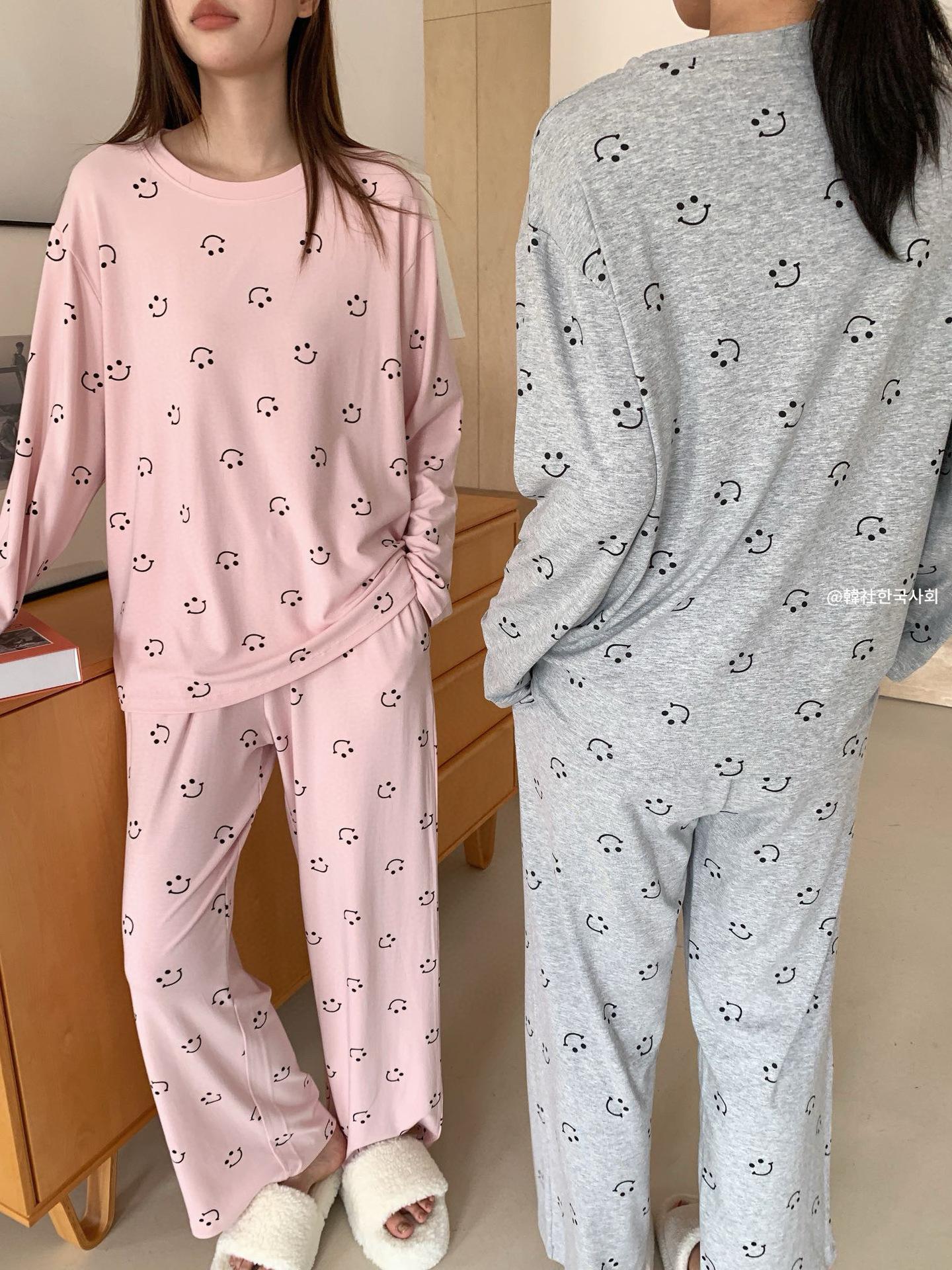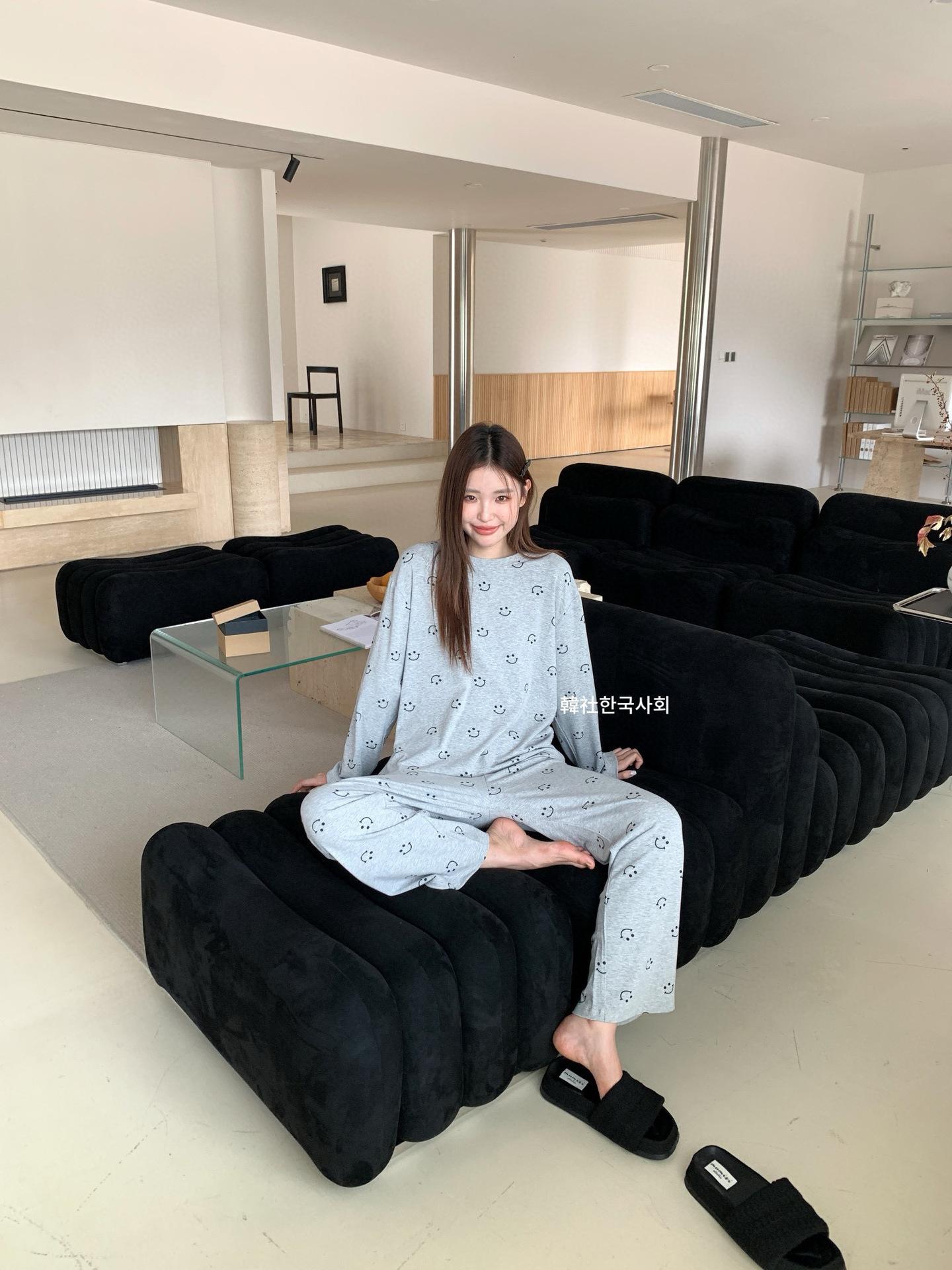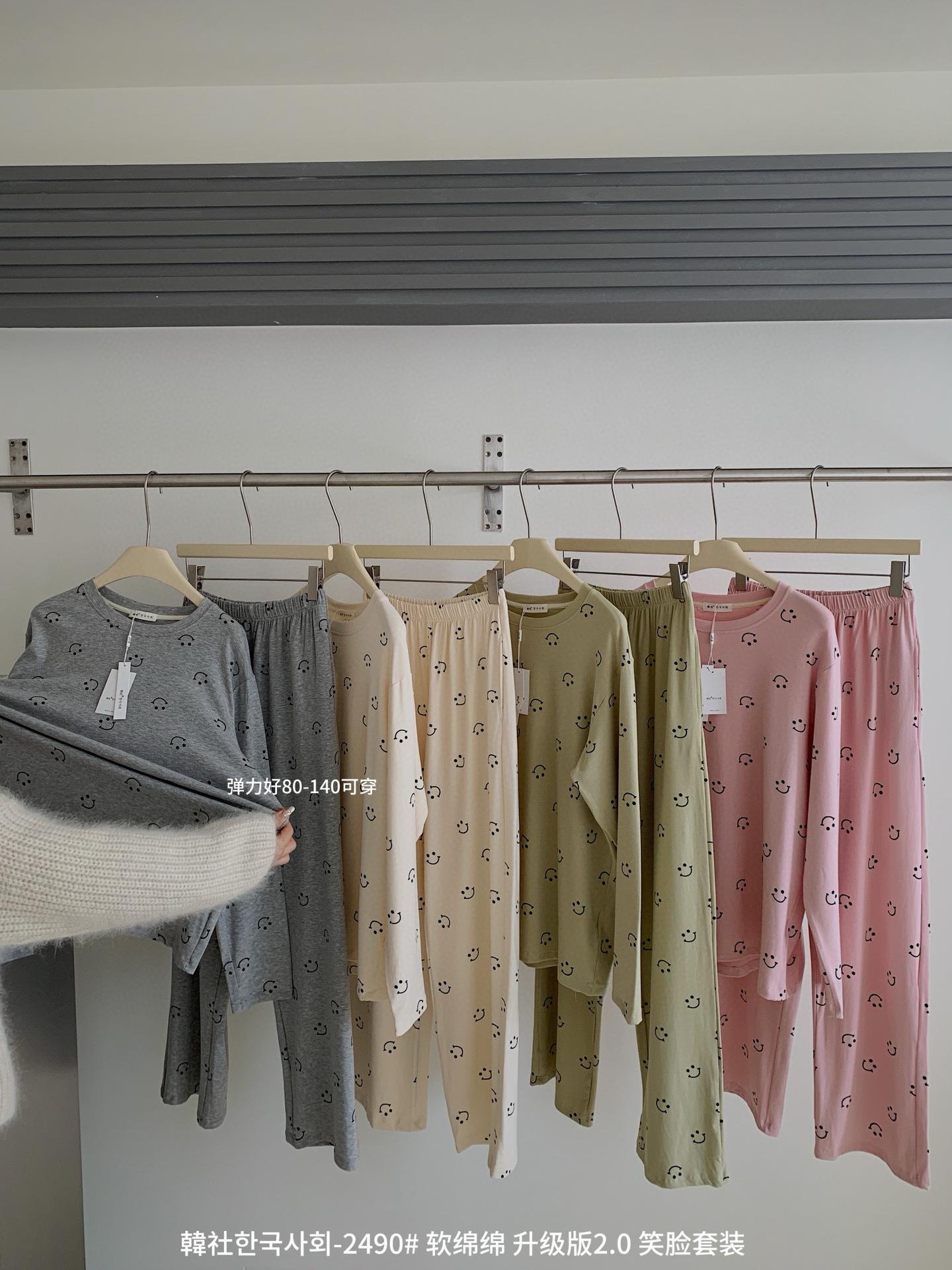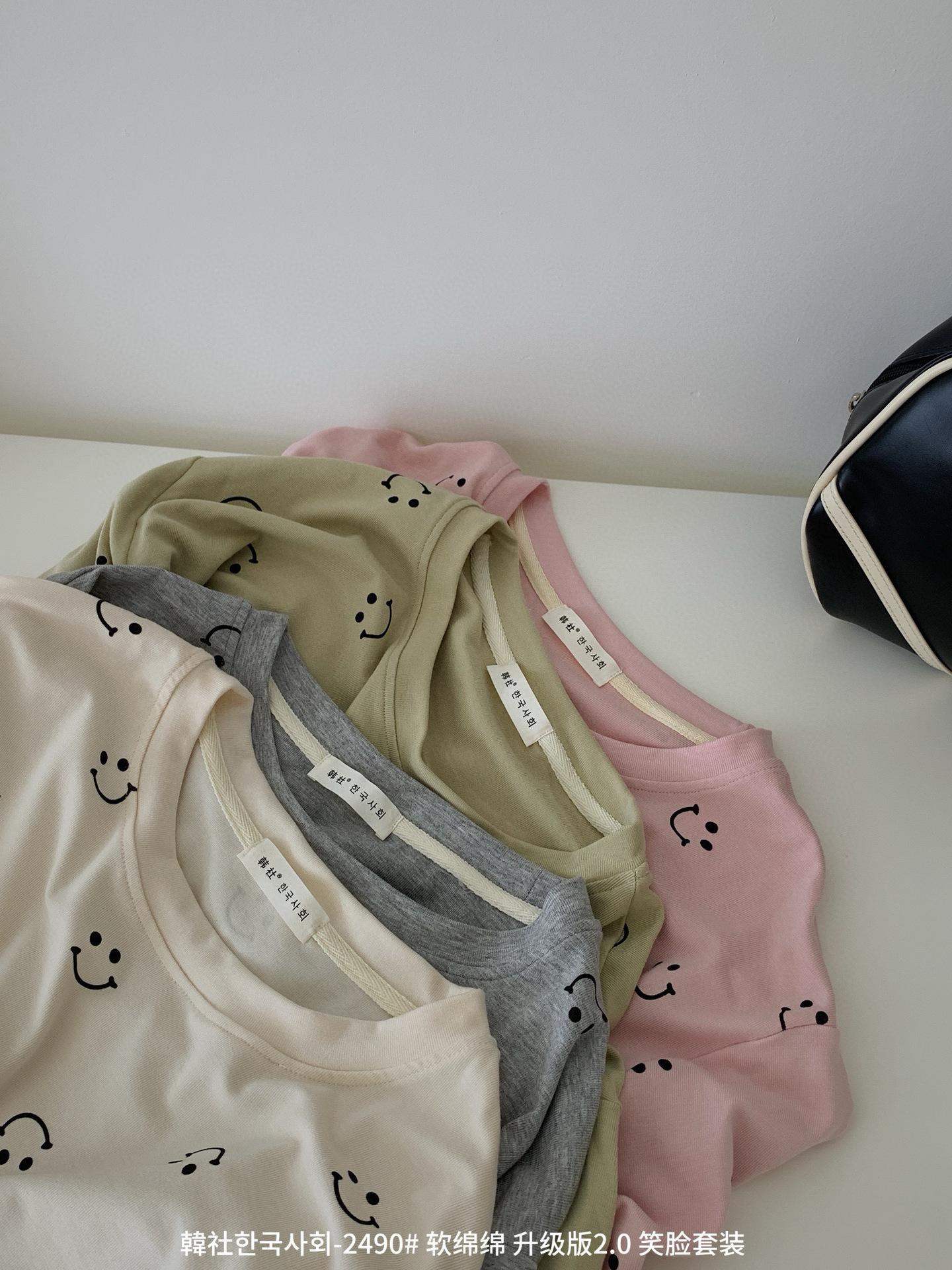 Han she 2490# suave otoño nuevo 2.0 traje de cara sonriente moda simple ropa de hogar perezosa pijamas de señoras