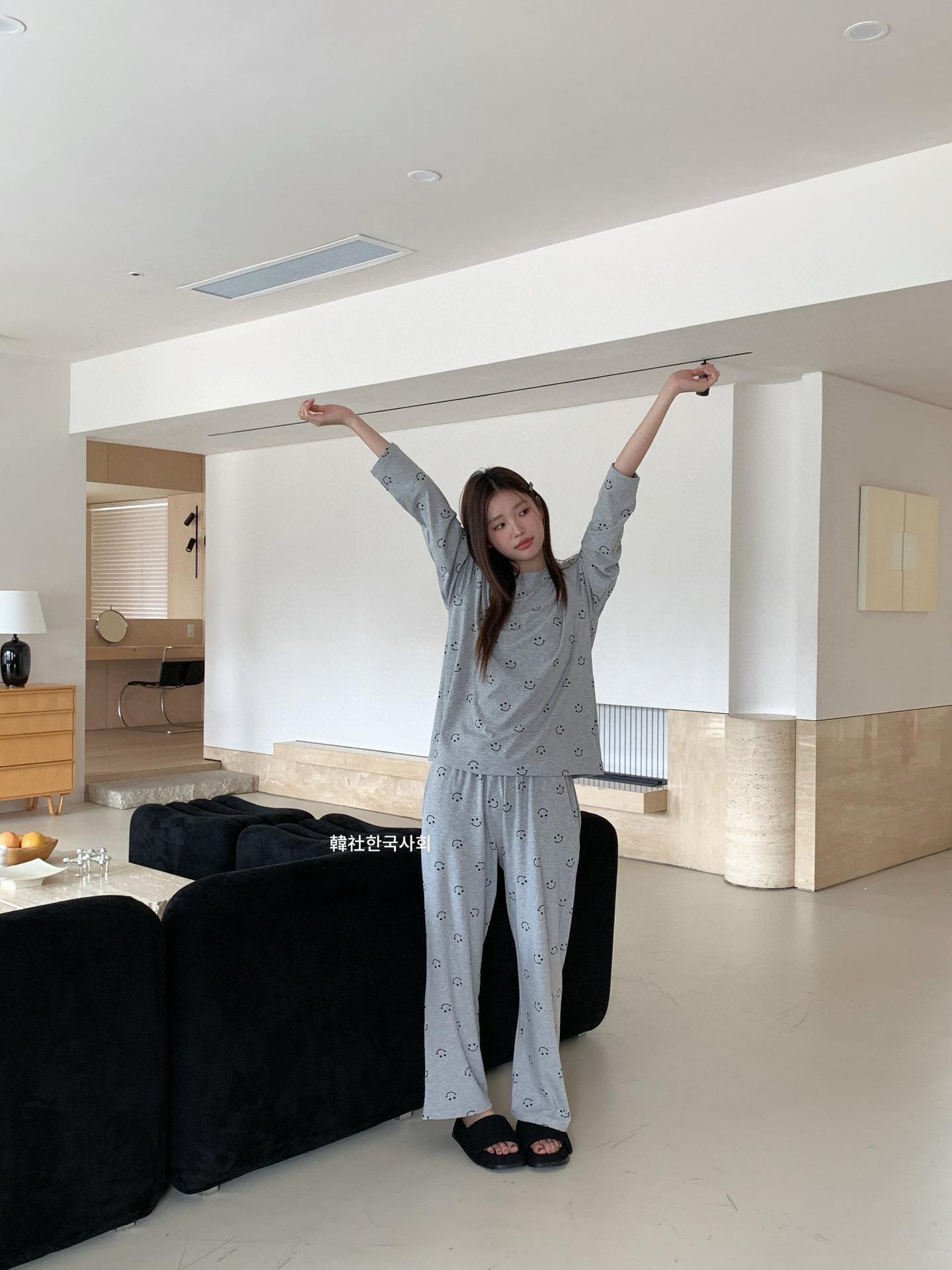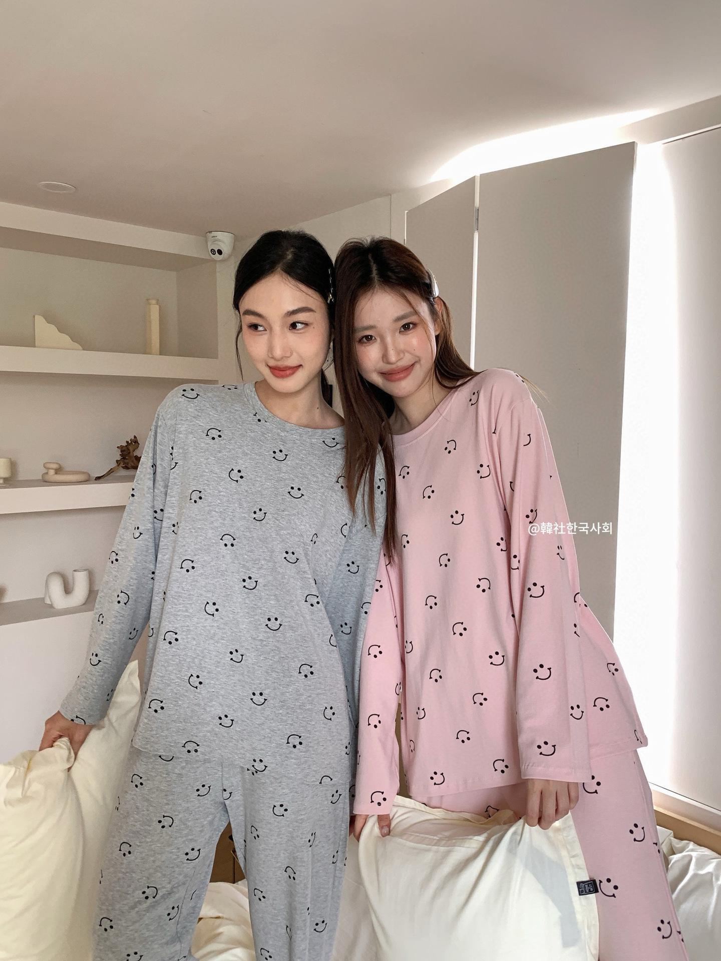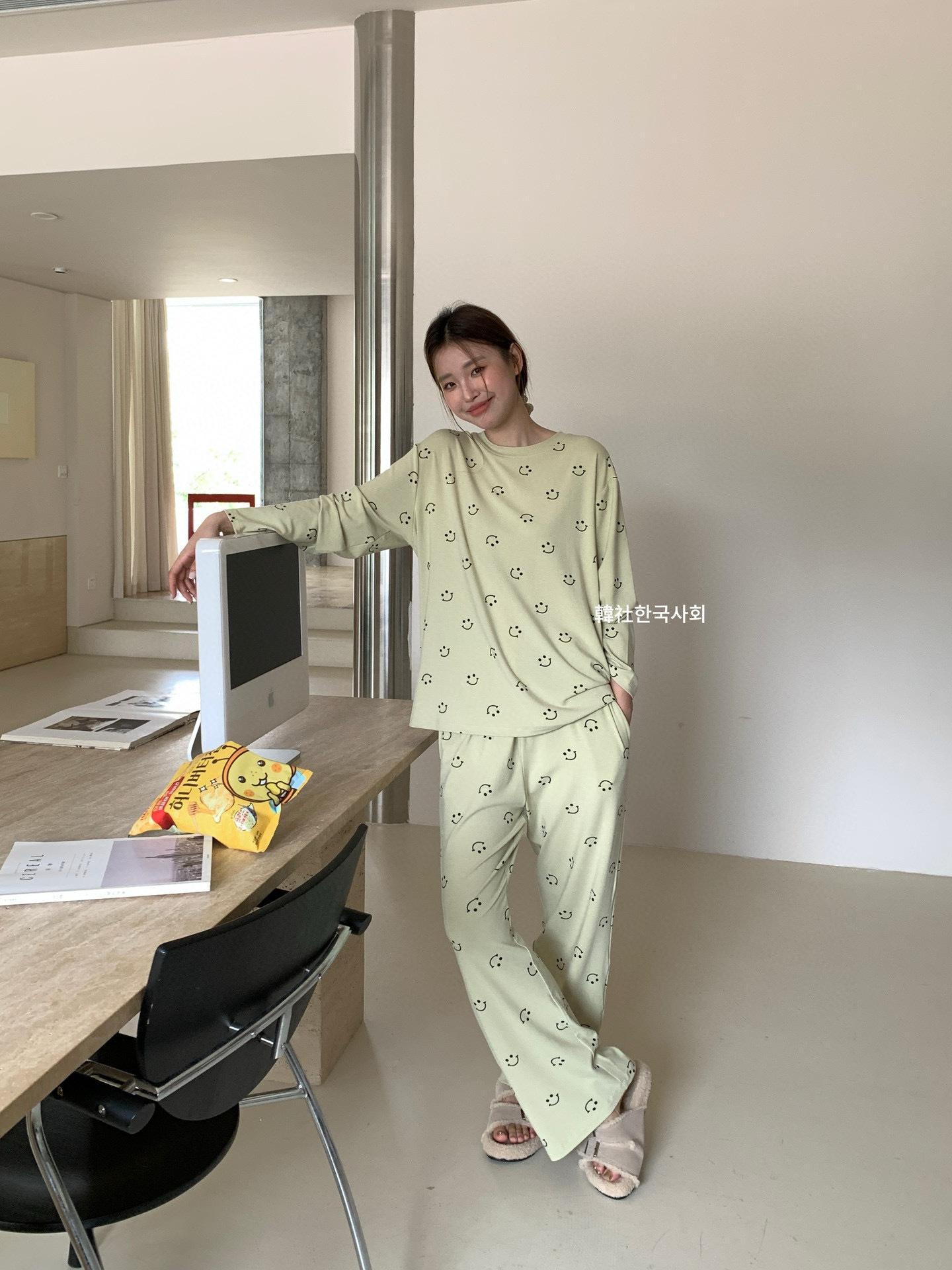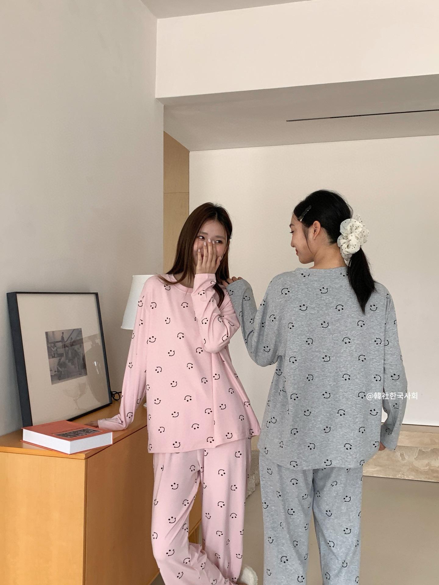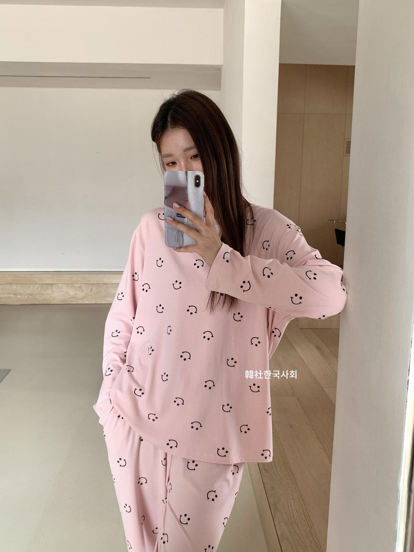 Han she 2490# suave otoño nuevo 2.0 traje de cara sonriente moda simple ropa de hogar perezosa pijamas de señoras