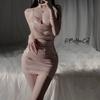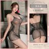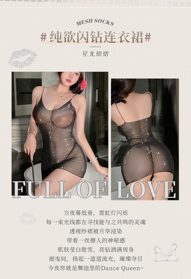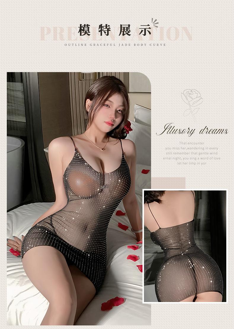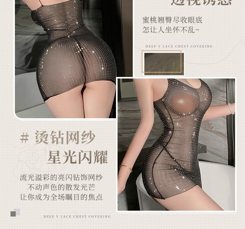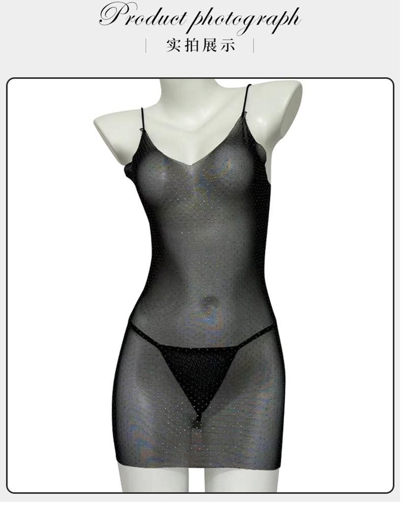 Lencería Sexy Spice Girls Cuello en V Escote Bajo Tirantes Vestido Negro Pequeño Ajustado Transparente Diamante Brillante Vestido Gratis 8553