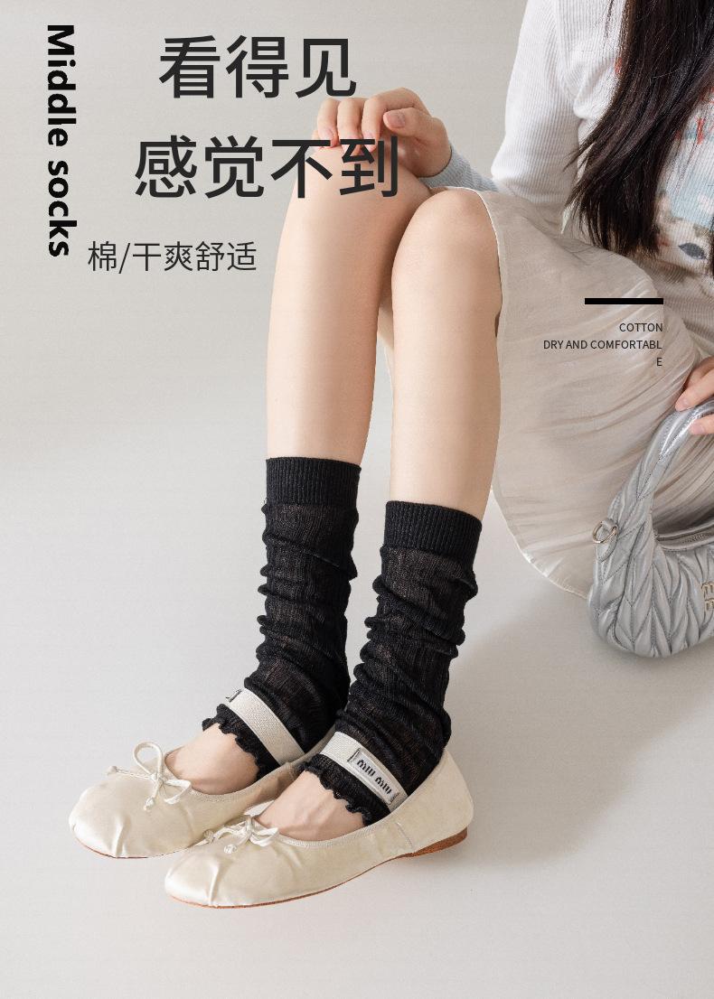 2024 calcetines de mujer otoño e invierno nueva moda tira de color sólido calcetines de pila estilo universitario japonés cubierta de pierna de punto al por mayor