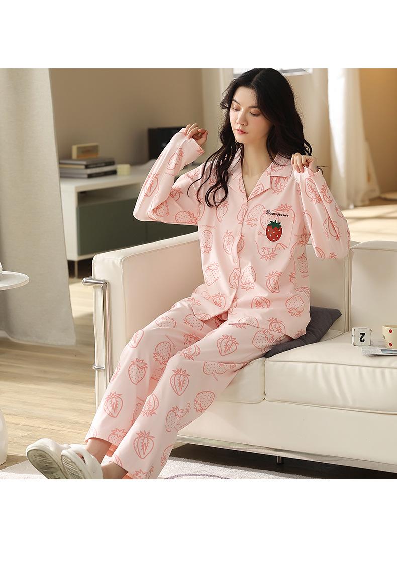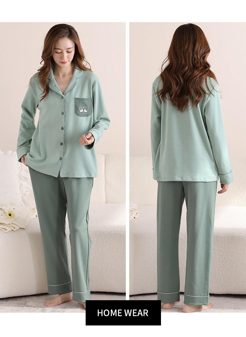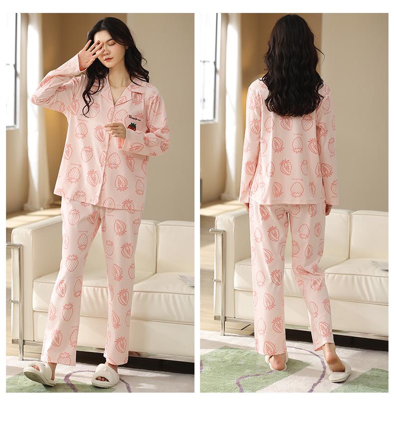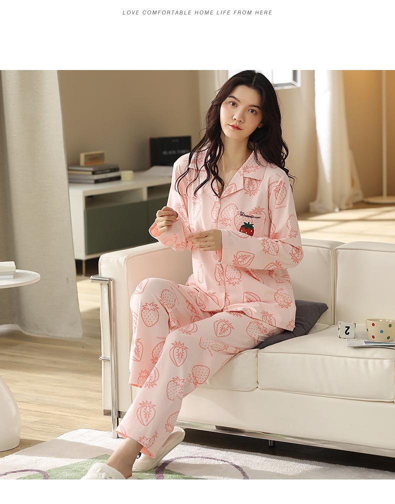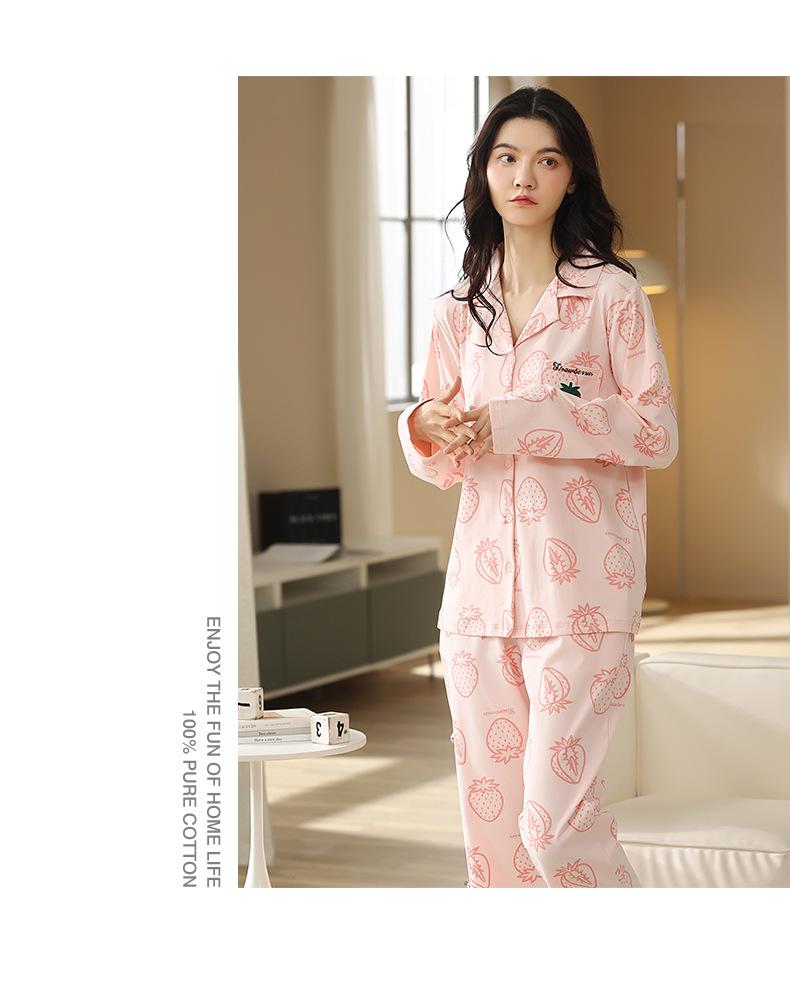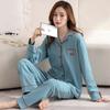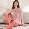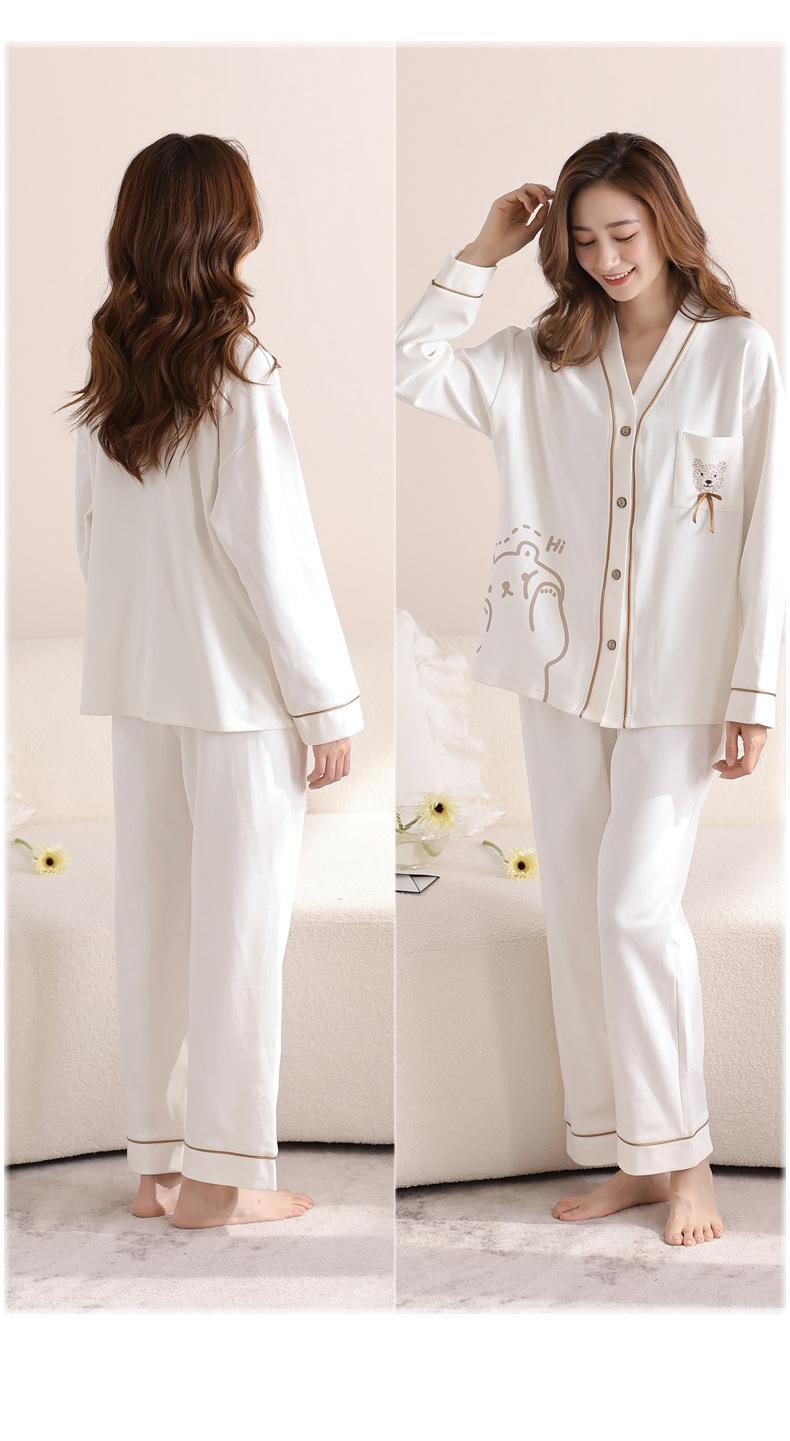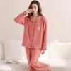Cárdigan de otoño e invierno para mujer, pijama de algodón puro de doble cara, traje de mujer con solapa de manga larga, ropa informal dulce para el hogar