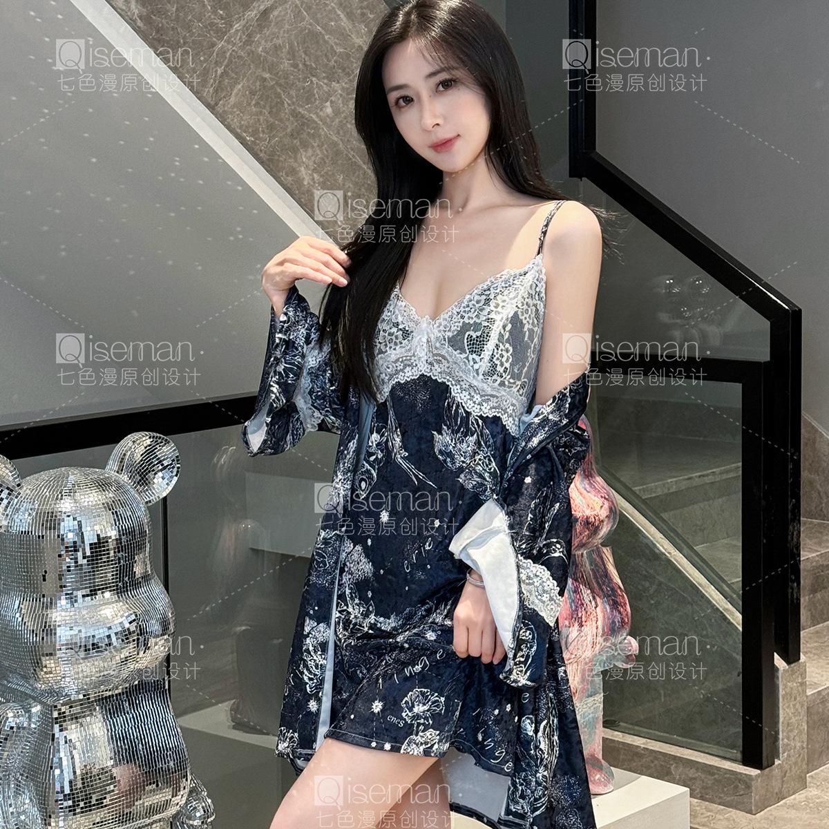 Compra Otoño e Invierno Terciopelo Dorado Sexy Camisón con Tirantes Conjunto de Dos Piezas Hermoso Tirante Almohadilla para el Pecho Encaje Ropa de Casa para Niña Invierno al por mayor en Joom.pro