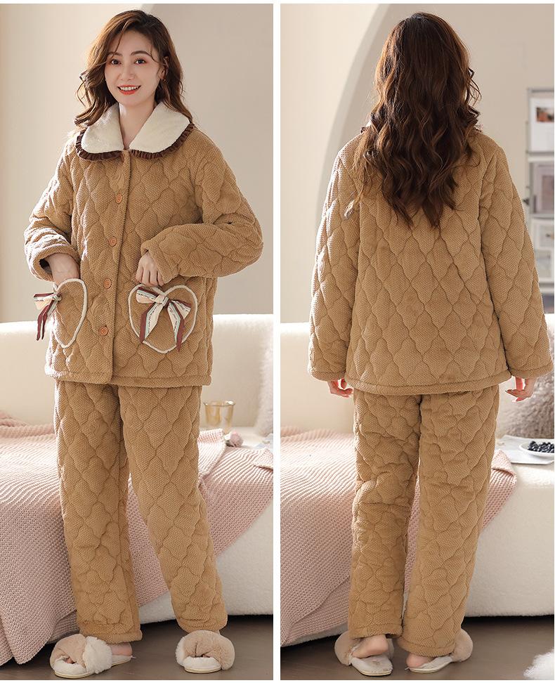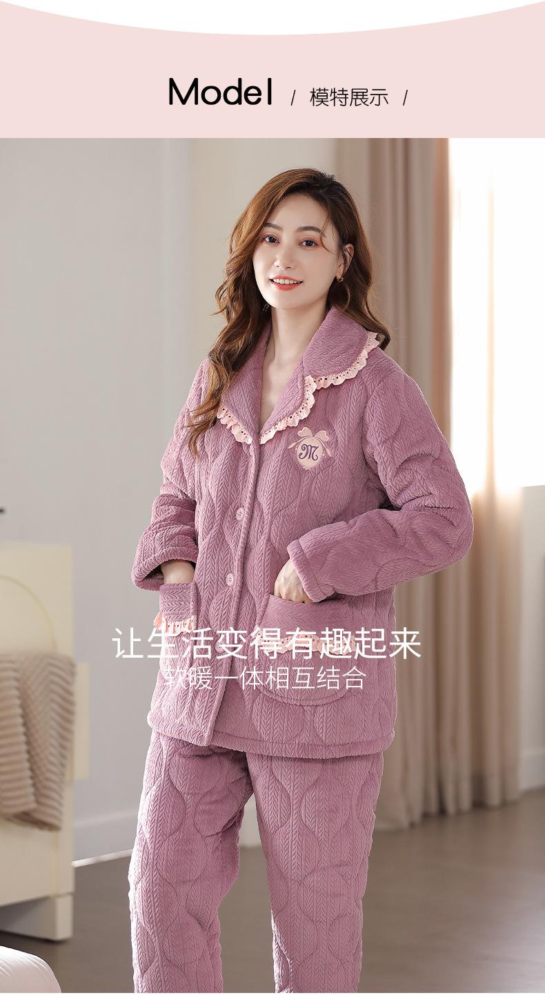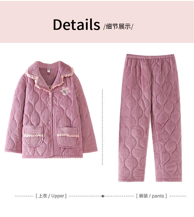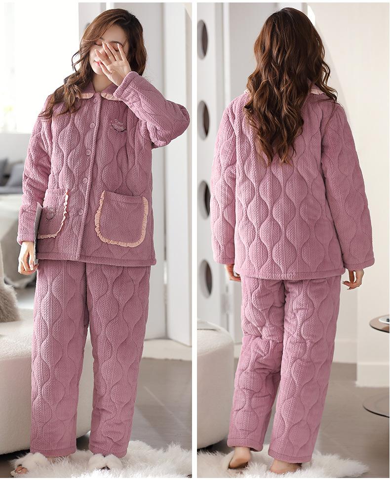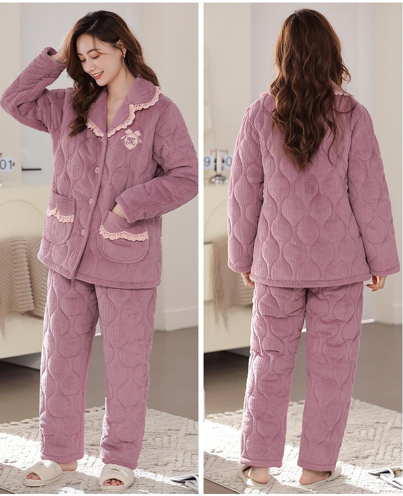 Pijama de lana coral de otoño e invierno para mujer, forro polar de invierno, grueso, acolchado de tres capas, estilo dulce, ropa para el hogar, traje exterior