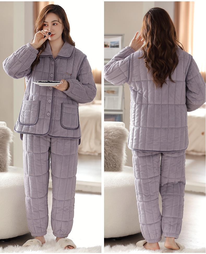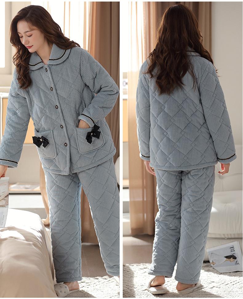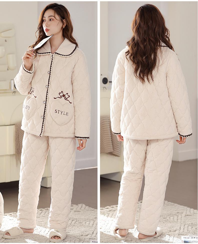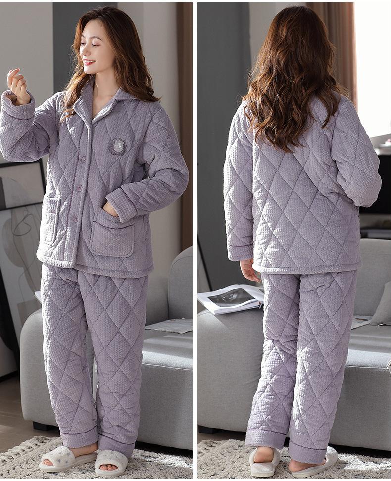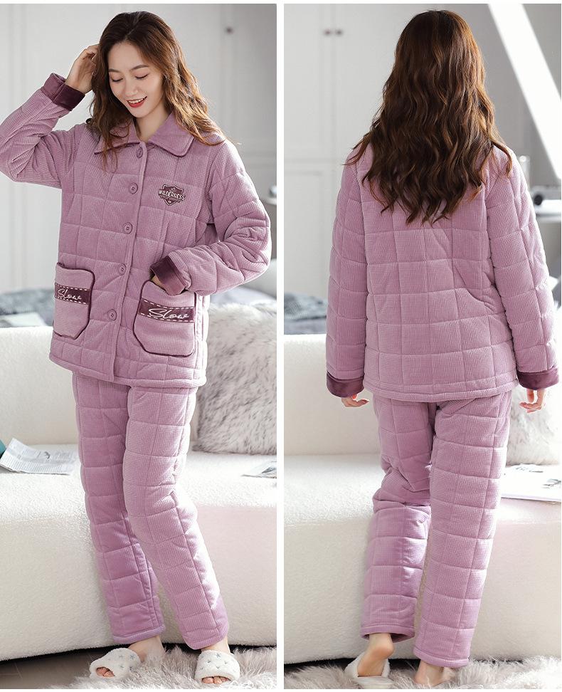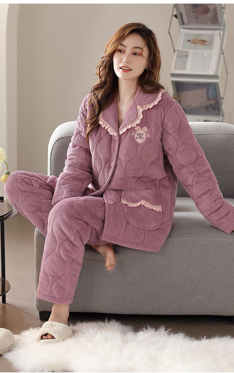 Pijama de lana coral de otoño e invierno para mujer, forro polar de invierno, grueso, acolchado de tres capas, estilo dulce, ropa para el hogar, traje exterior