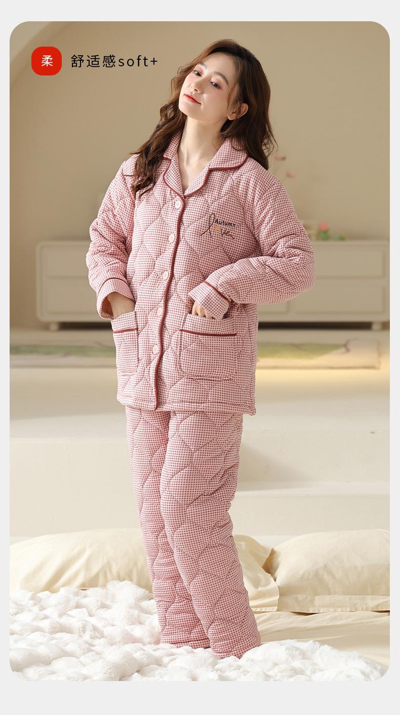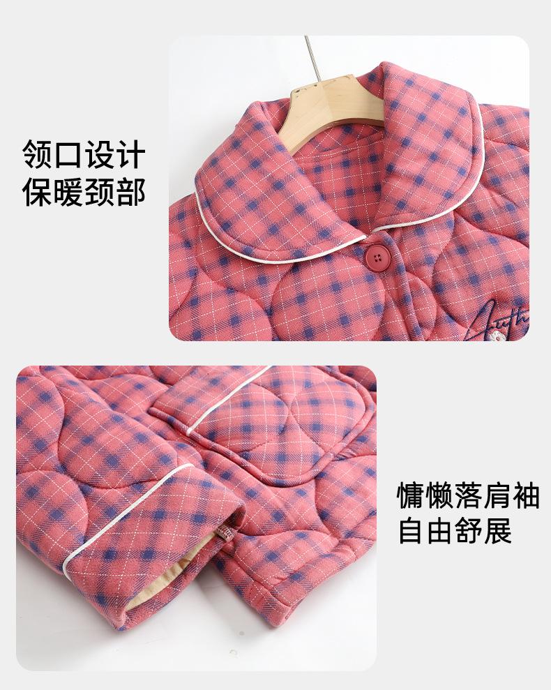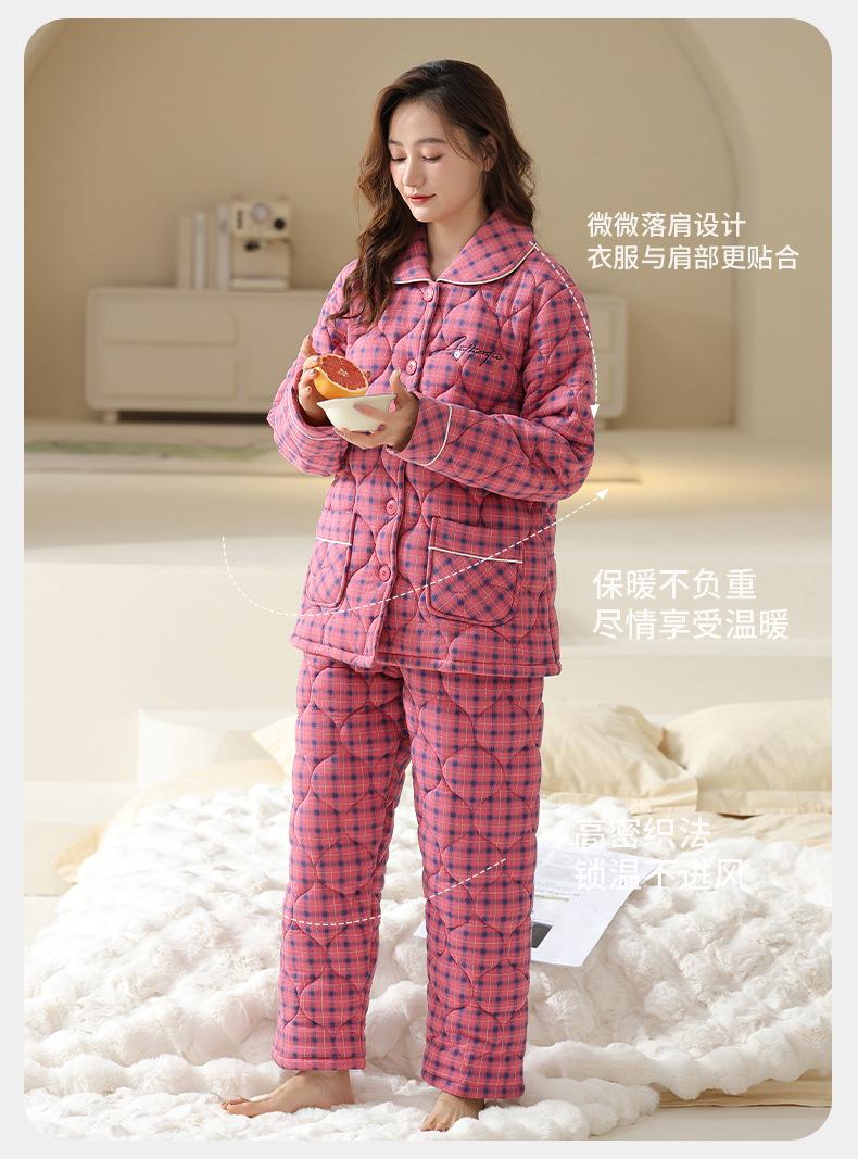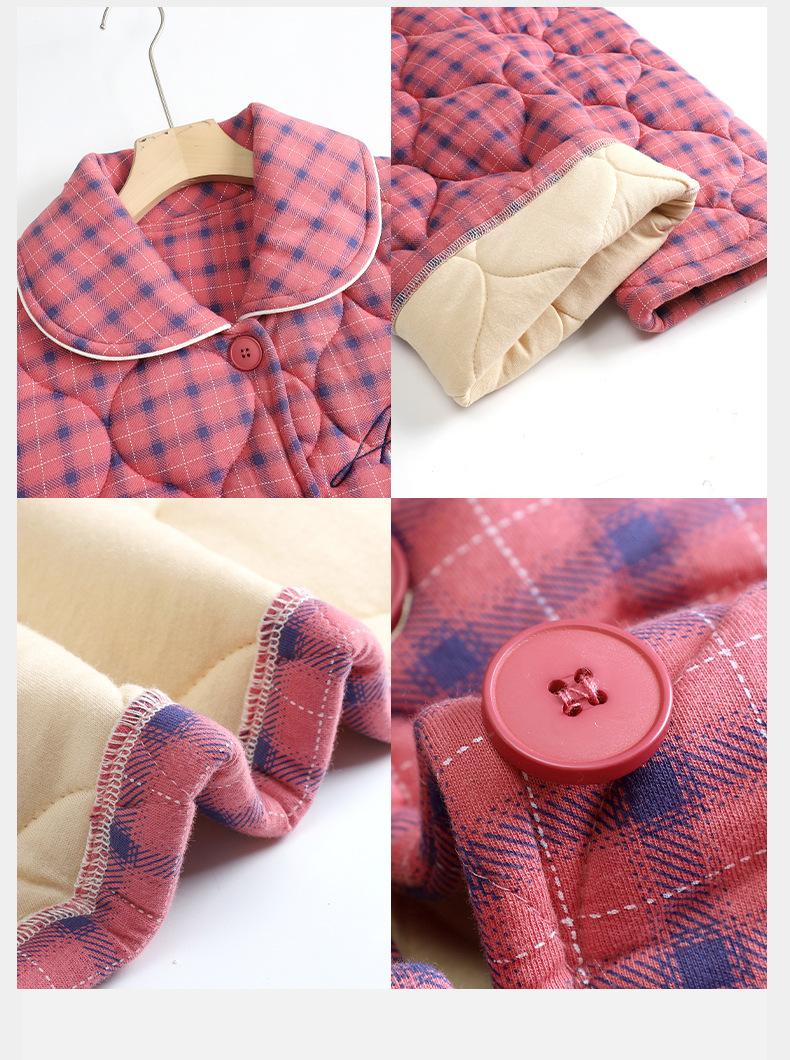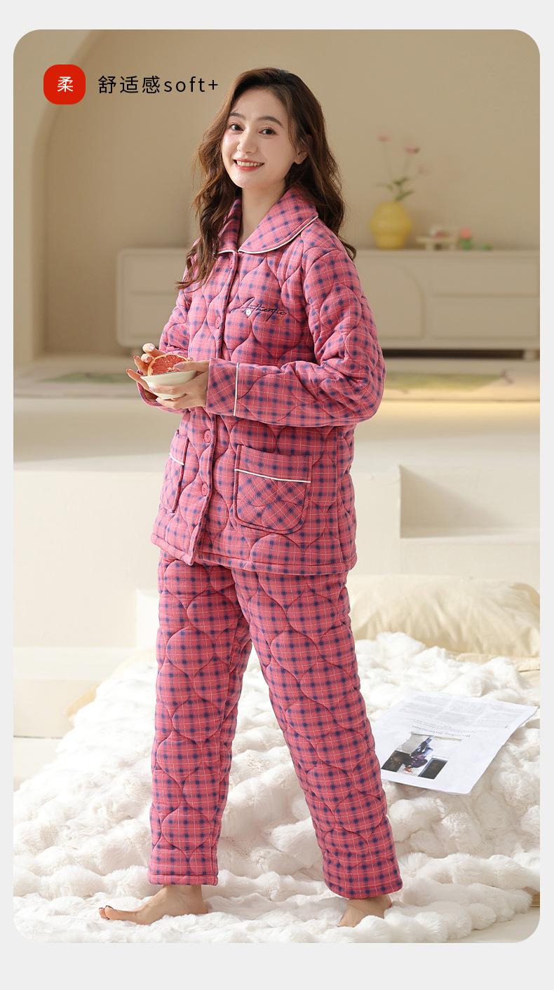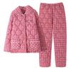 23 Invierno pijamas de madre de mediana edad y anciana para mujer algodón engrosado acolchado de tres capas otoño e invierno acolchado cálido traje de algodón