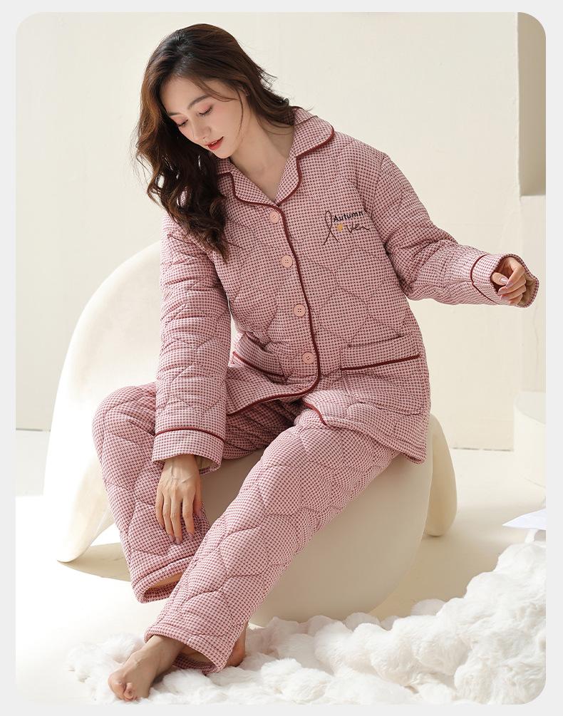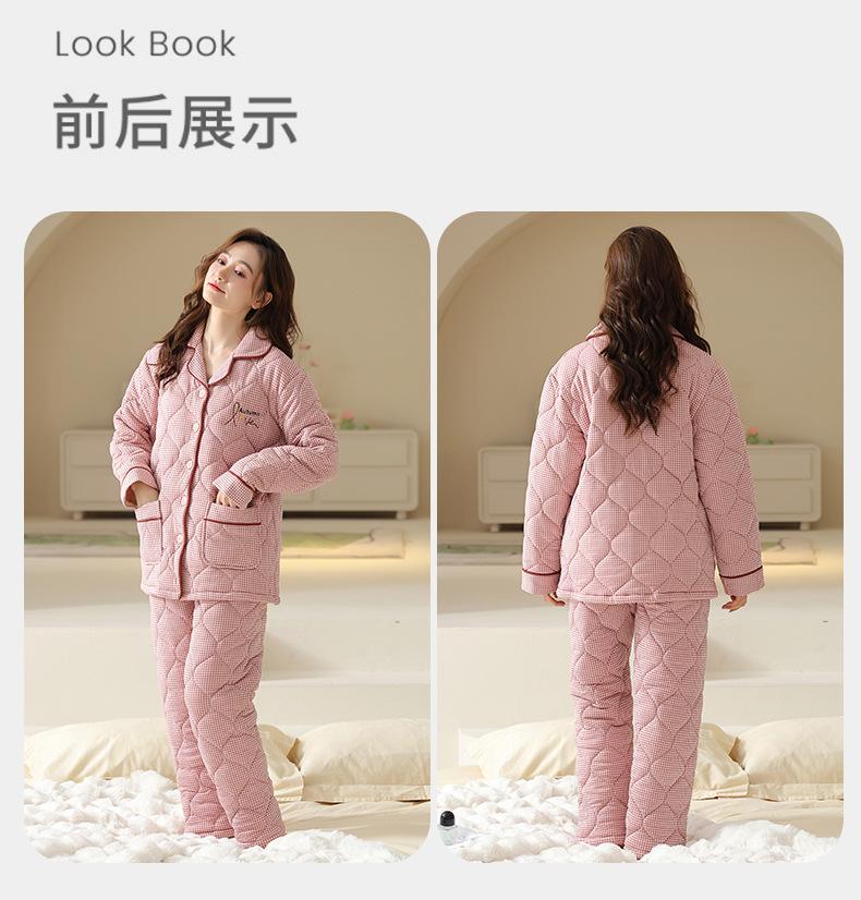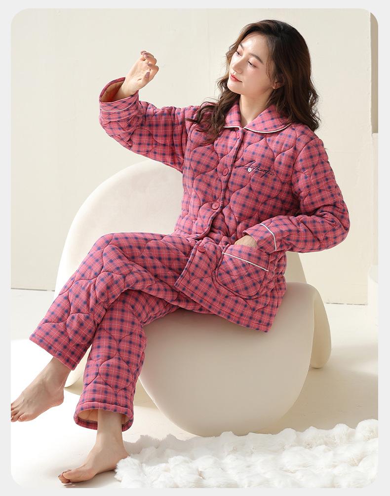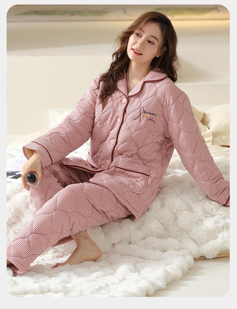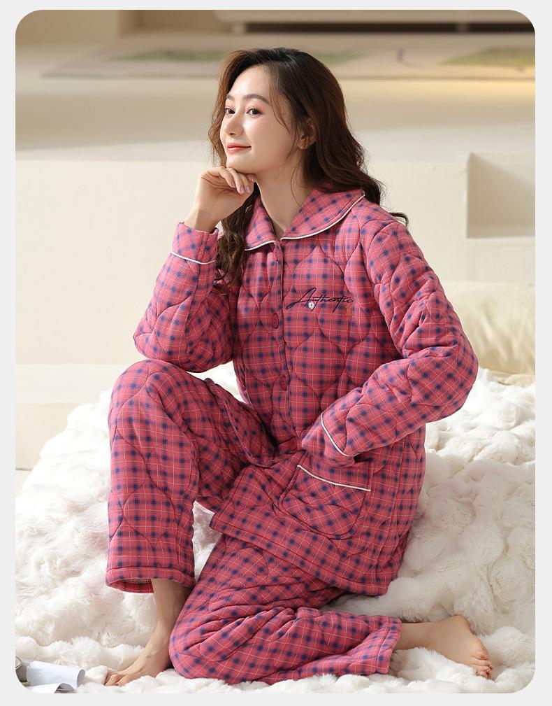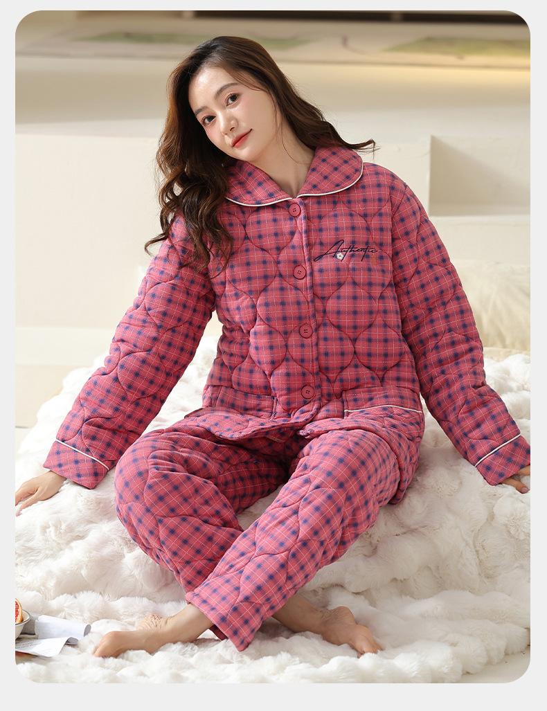 23 Invierno pijamas de madre de mediana edad y anciana para mujer algodón engrosado acolchado de tres capas otoño e invierno acolchado cálido traje de algodón
