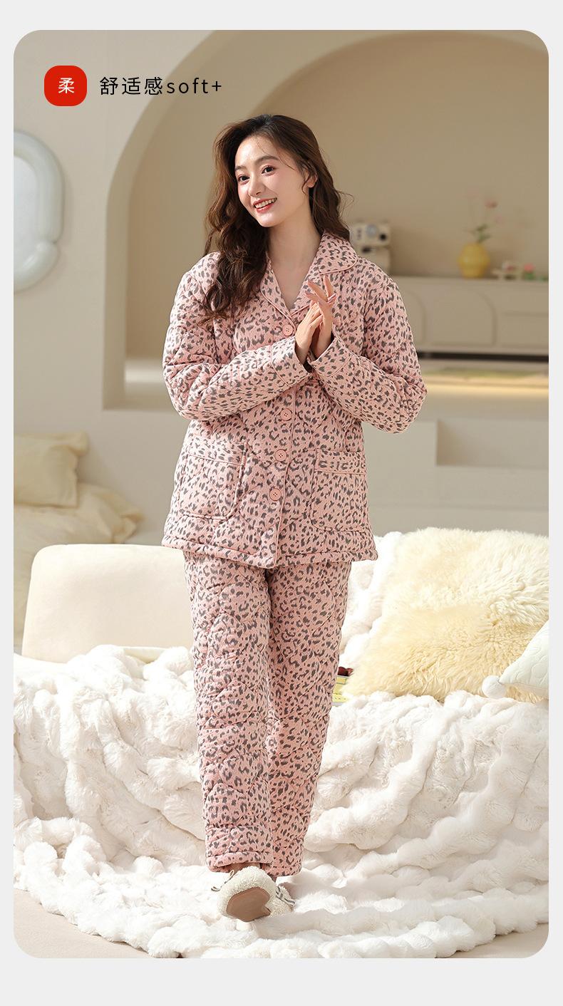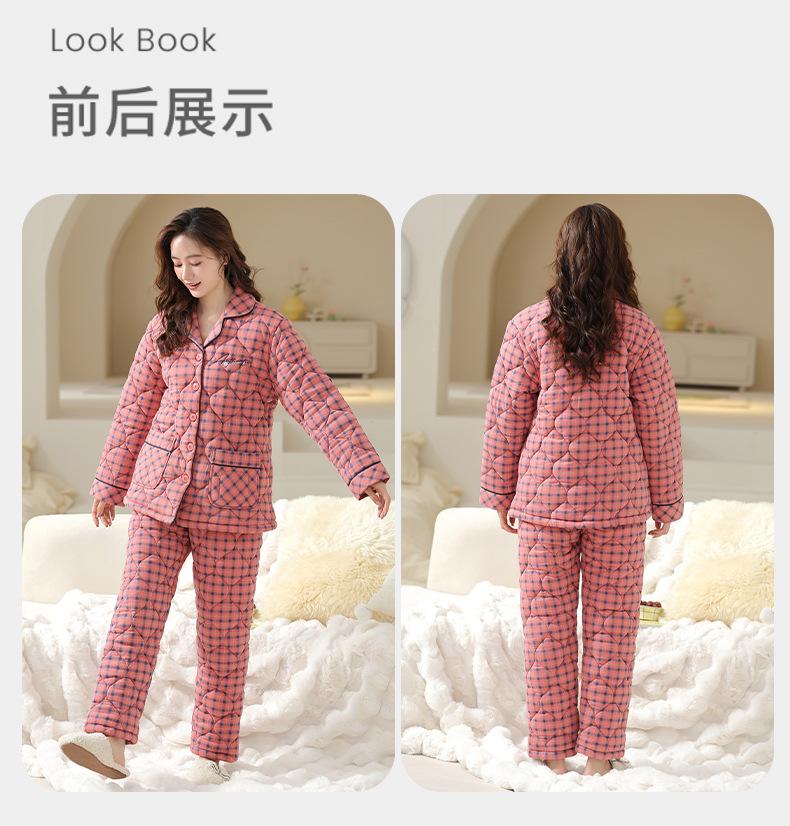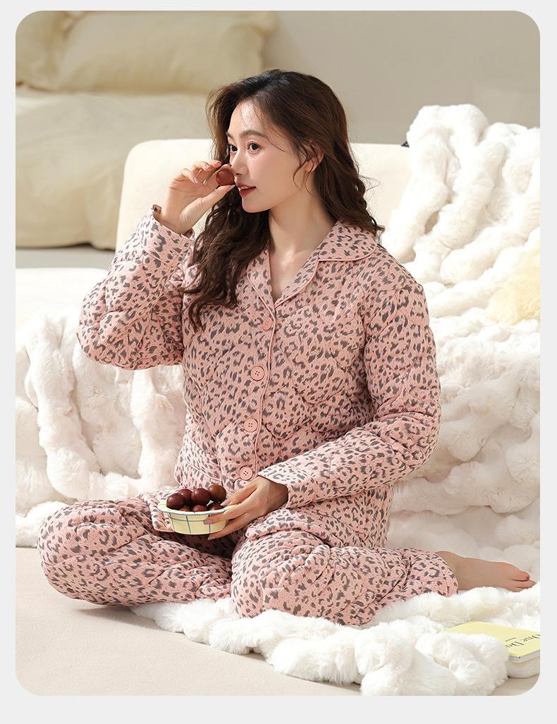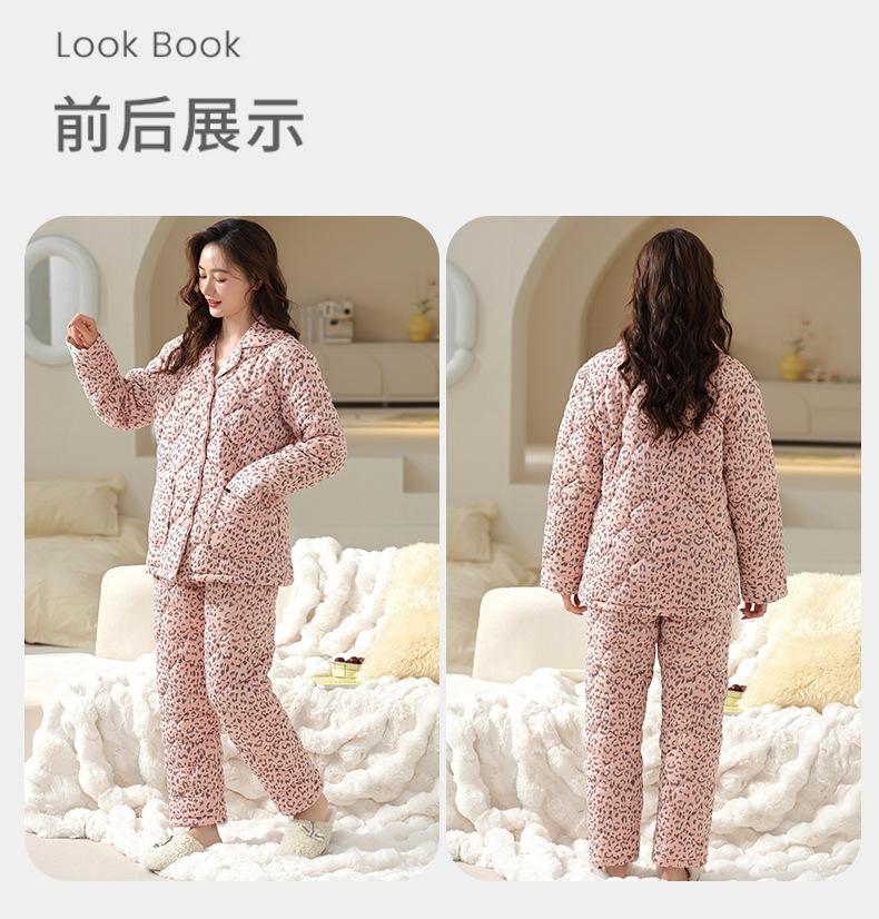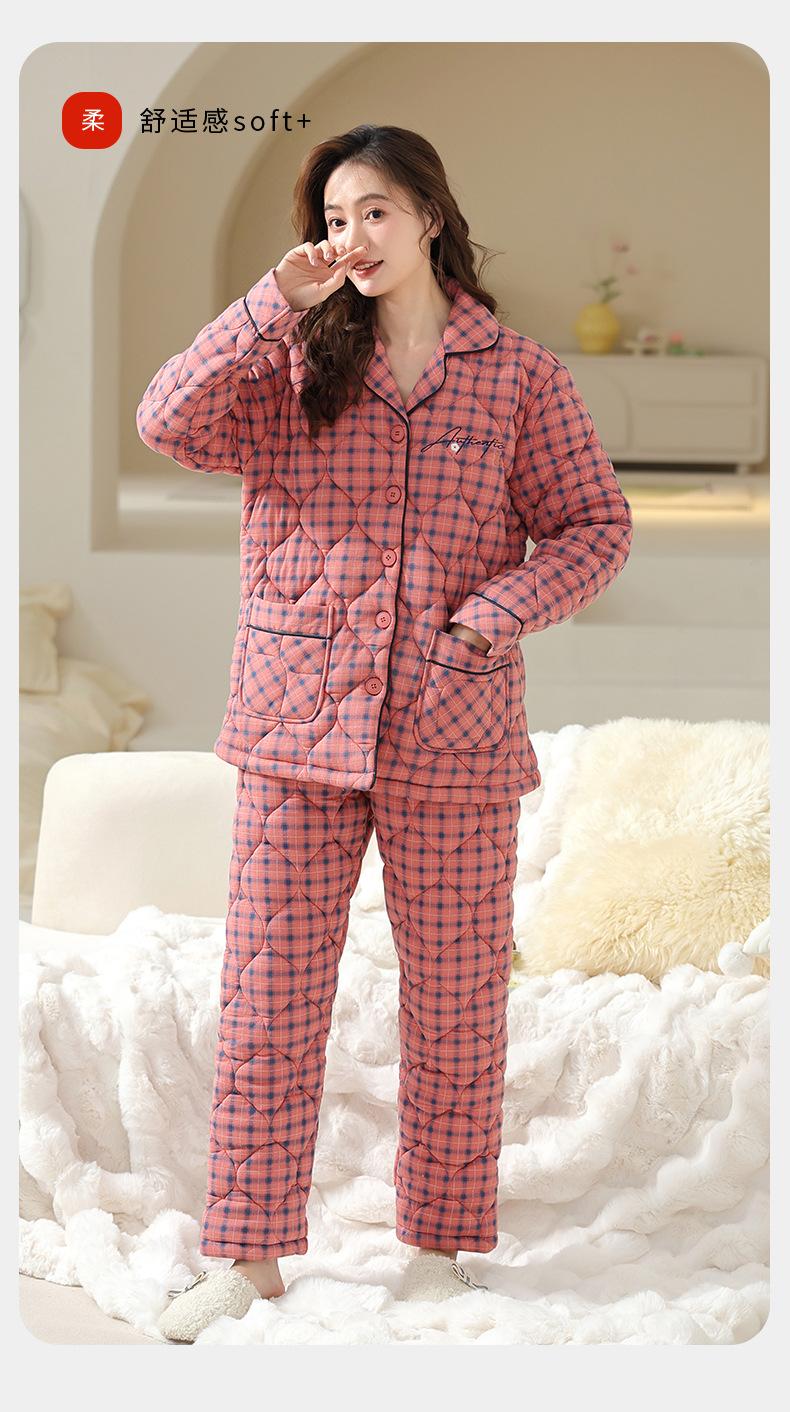 23 Invierno pijamas de madre de mediana edad y anciana para mujer algodón engrosado acolchado de tres capas otoño e invierno acolchado cálido traje de algodón