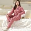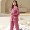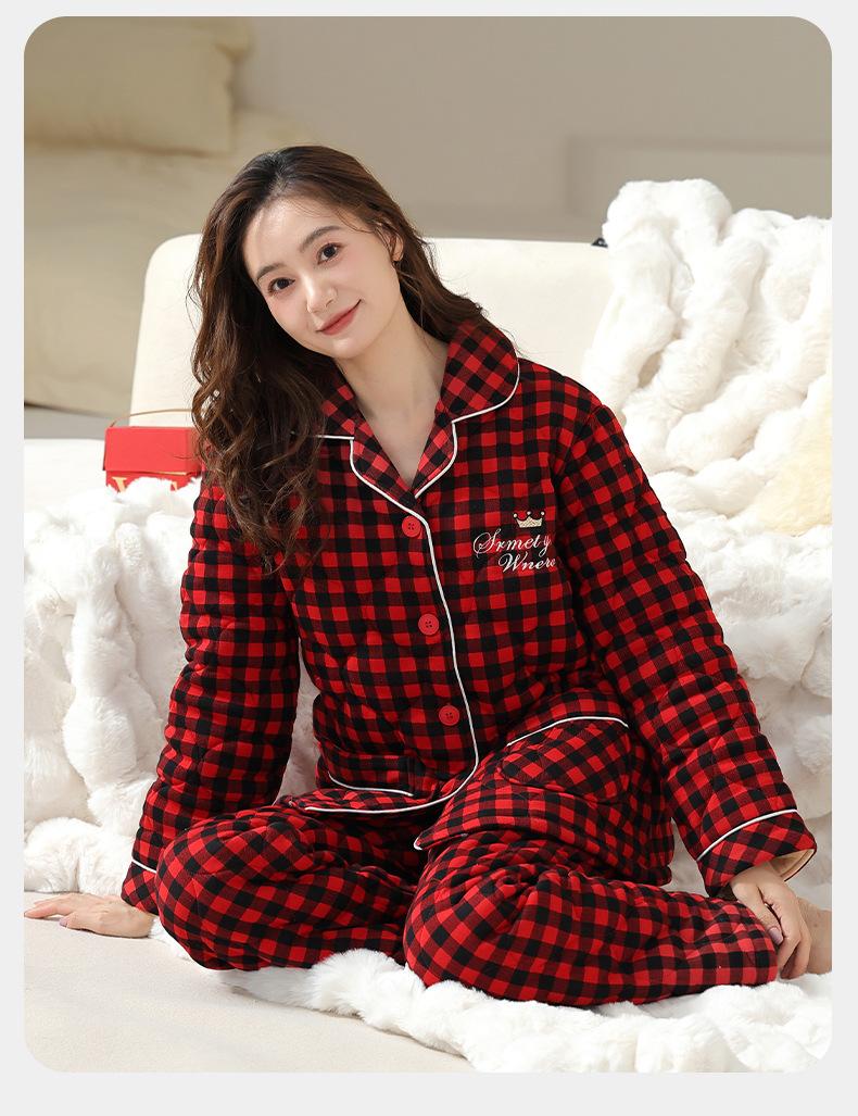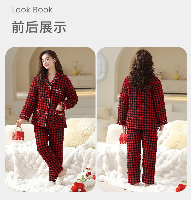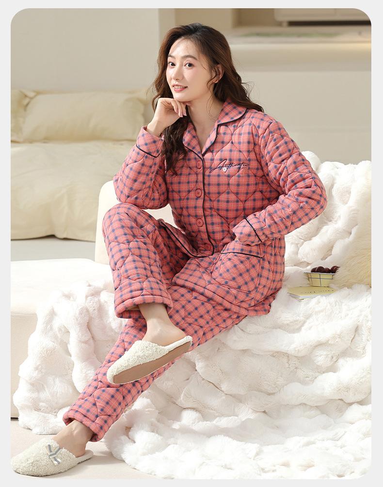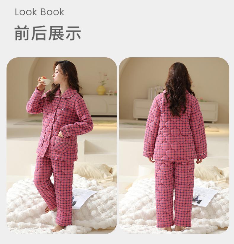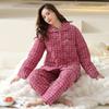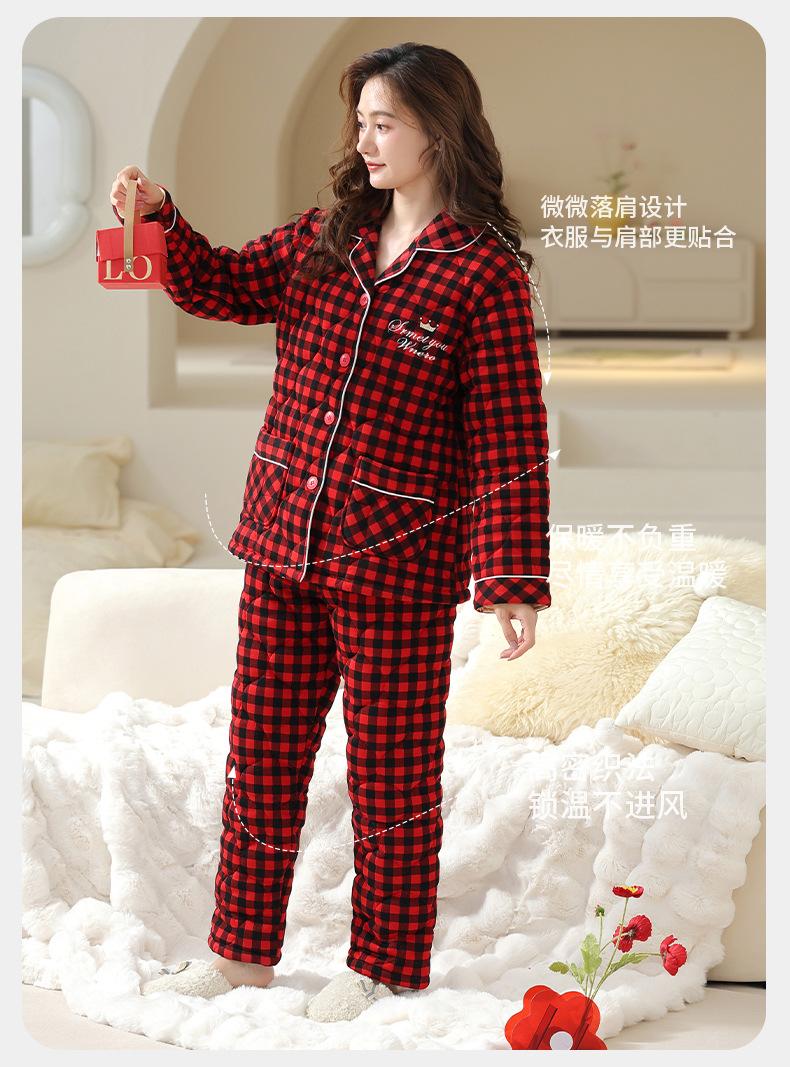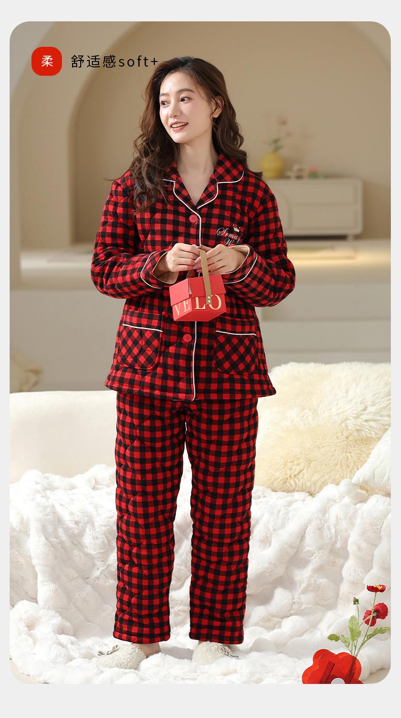 23 Invierno pijamas de madre de mediana edad y anciana para mujer algodón engrosado acolchado de tres capas otoño e invierno acolchado cálido traje de algodón