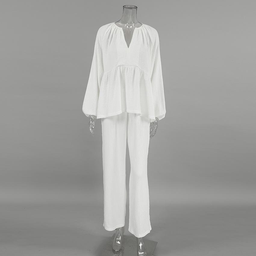 Pijama de dos piezas de manga larga para invierno, Europa y Estados Unidos, nuevo, de algodón, transpirable, cómodo y holgado, Amazon 2024, venta al por mayor