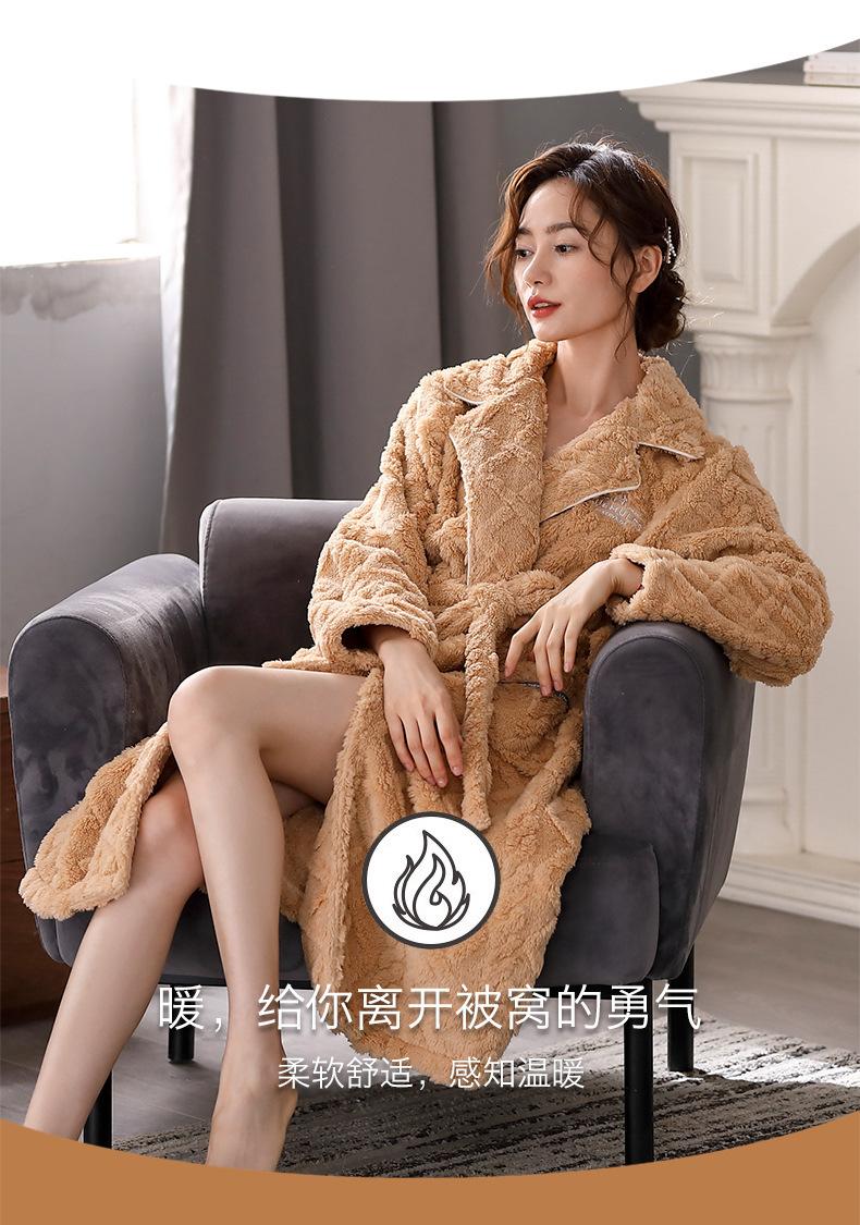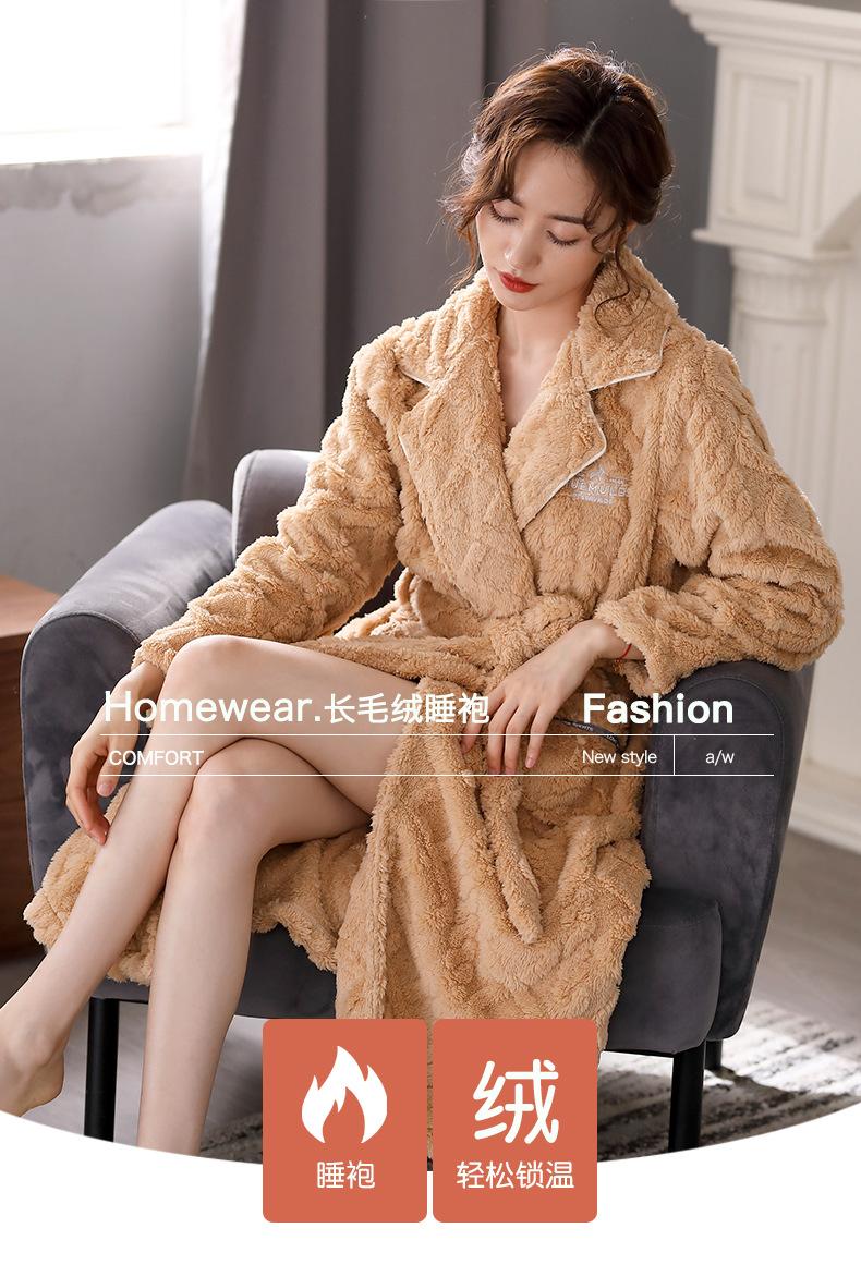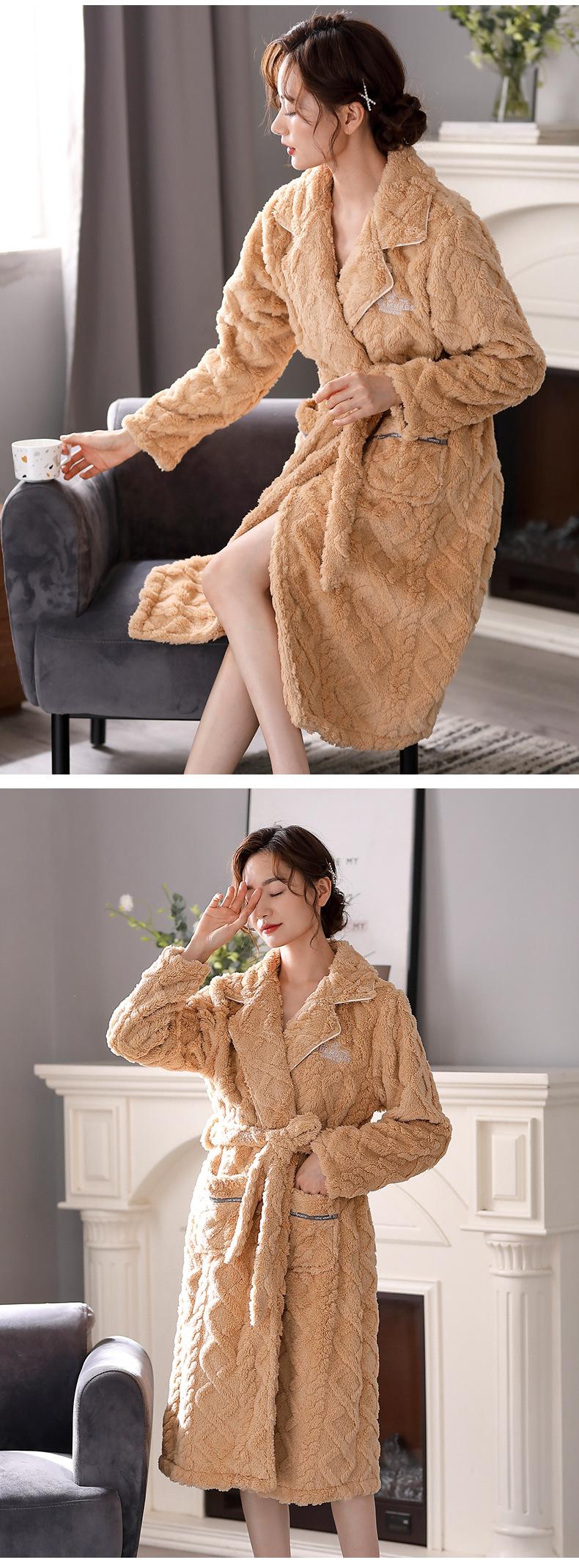 Camisón para Mujer Invierno Pijama de Forro Polar Coral Espesado con Forro Polar Cálido Bata Otoño e Invierno Franela Talla Grande Bata de Mañana